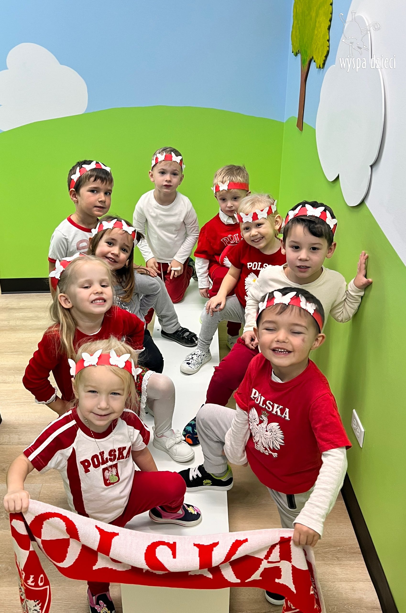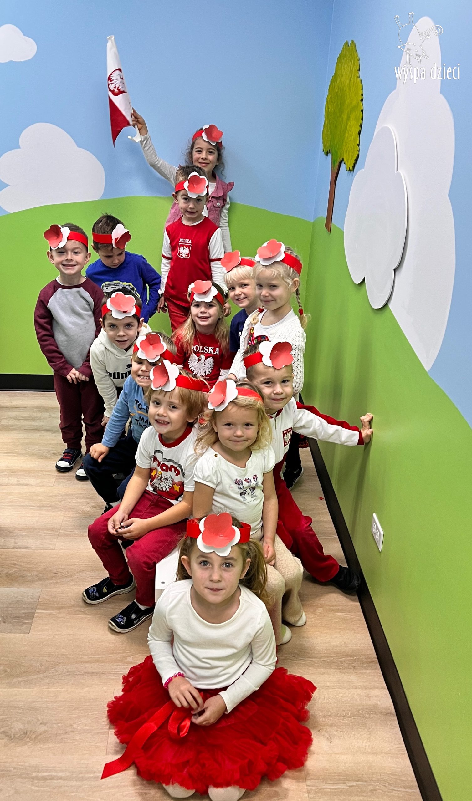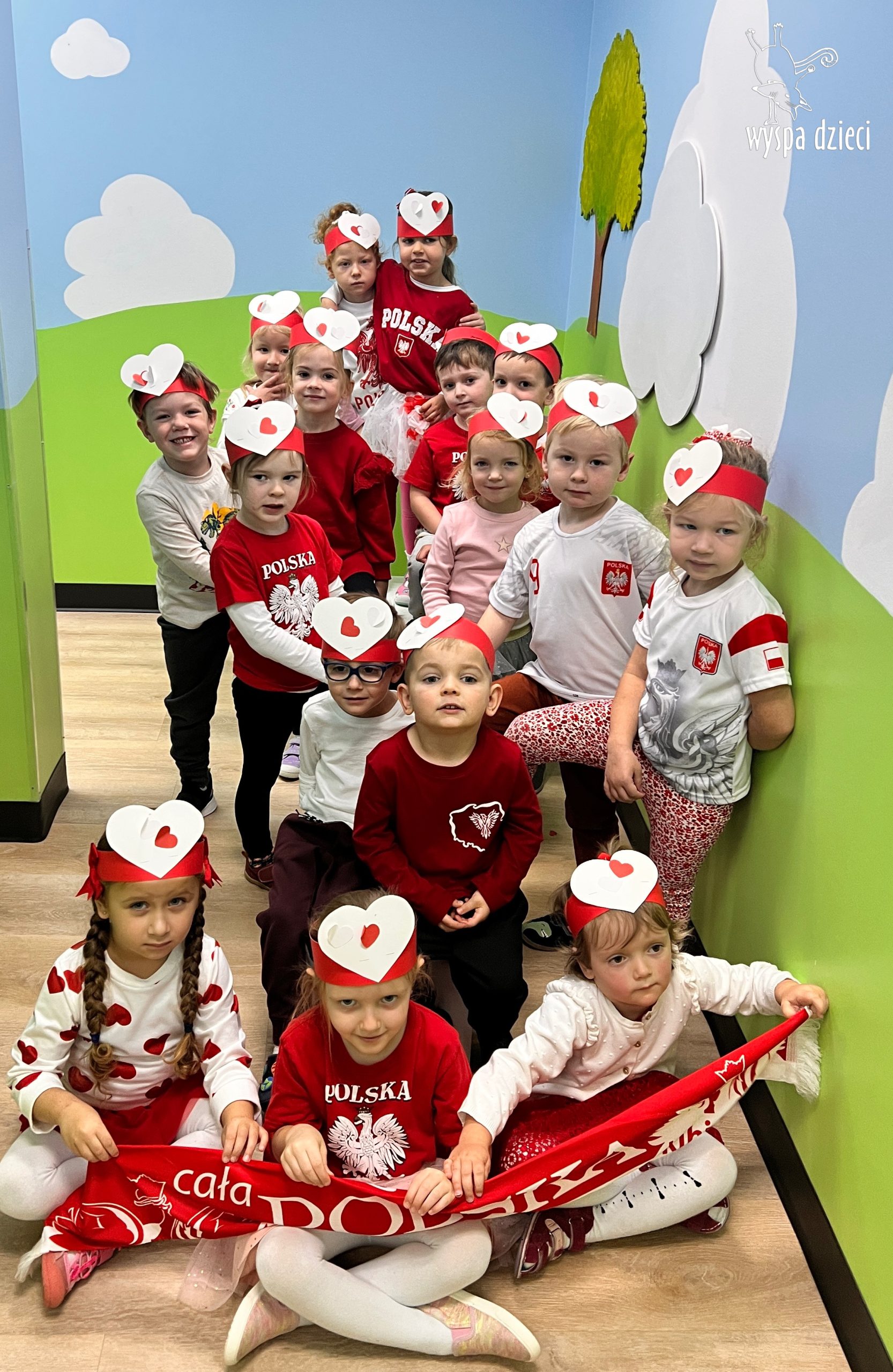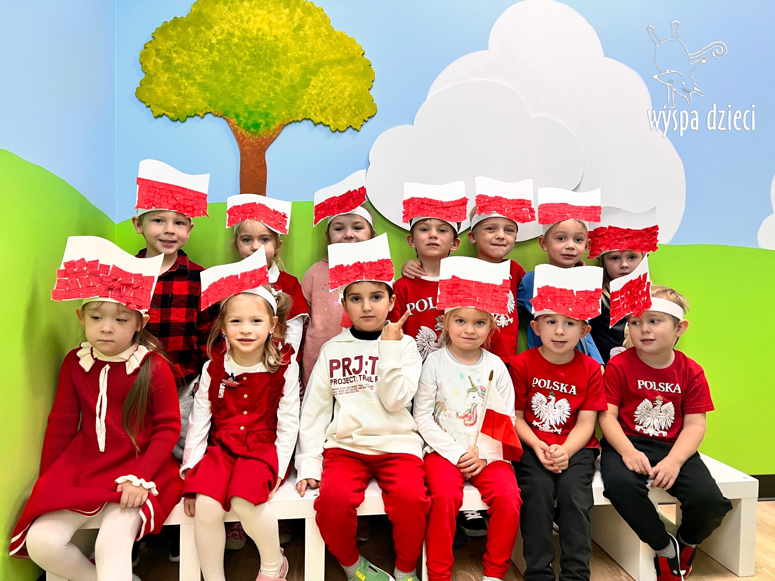 Przedszkolaki ubrały się w kolory biały i czerwony, wykonały opaski i flagi.