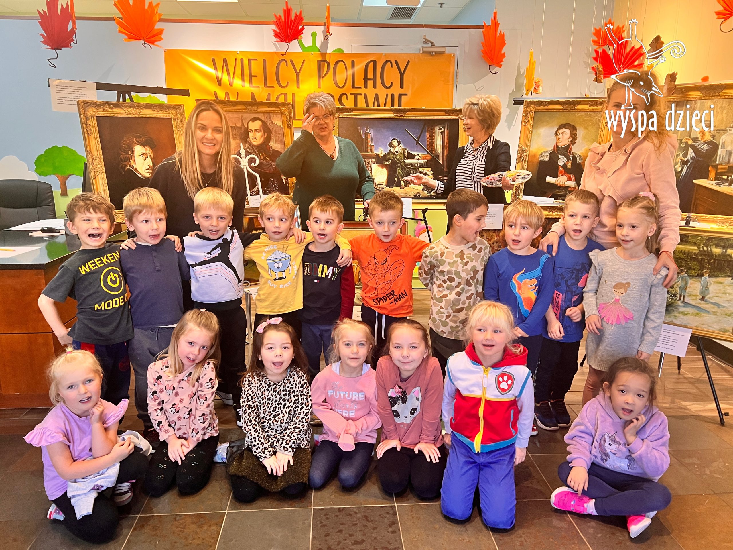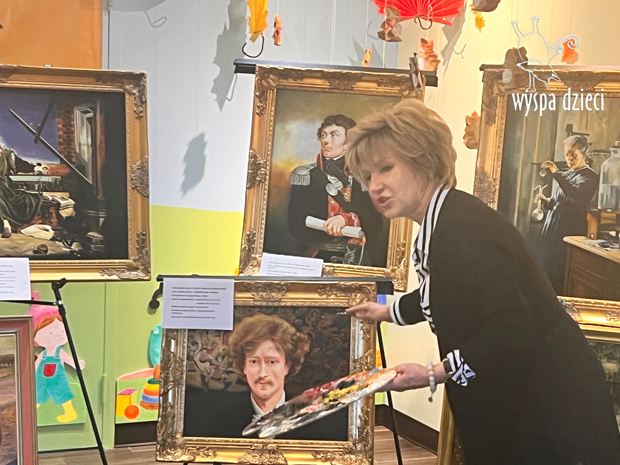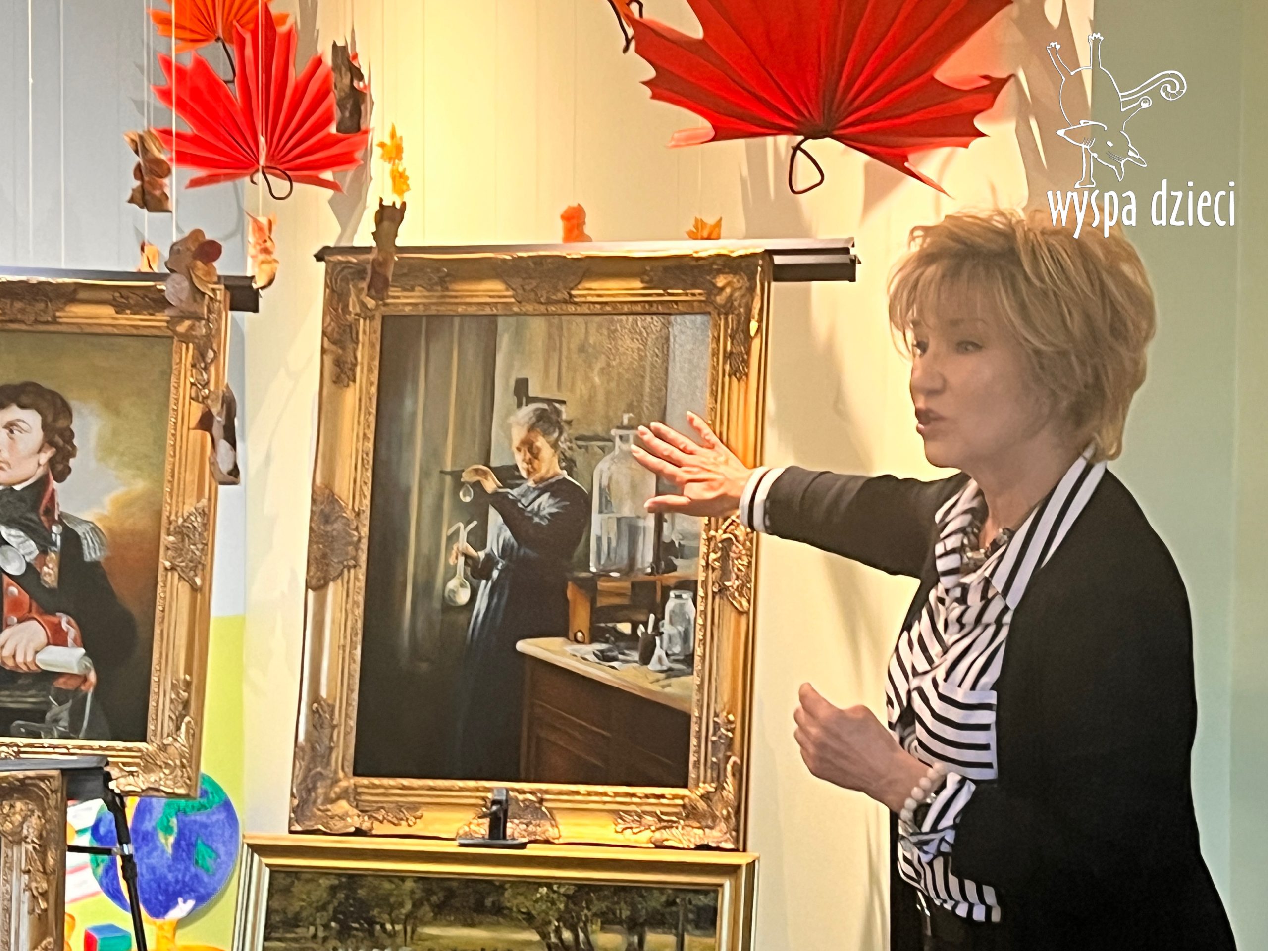Dzieci zachwyciły się tymi dziełami sztuki, próbowały nawet same stworzyć podobne obrazy. Jeszcze raz dziękujemy pani Bożenie za odwiedziny i przybliżenie nam postaci znanych Polaków .