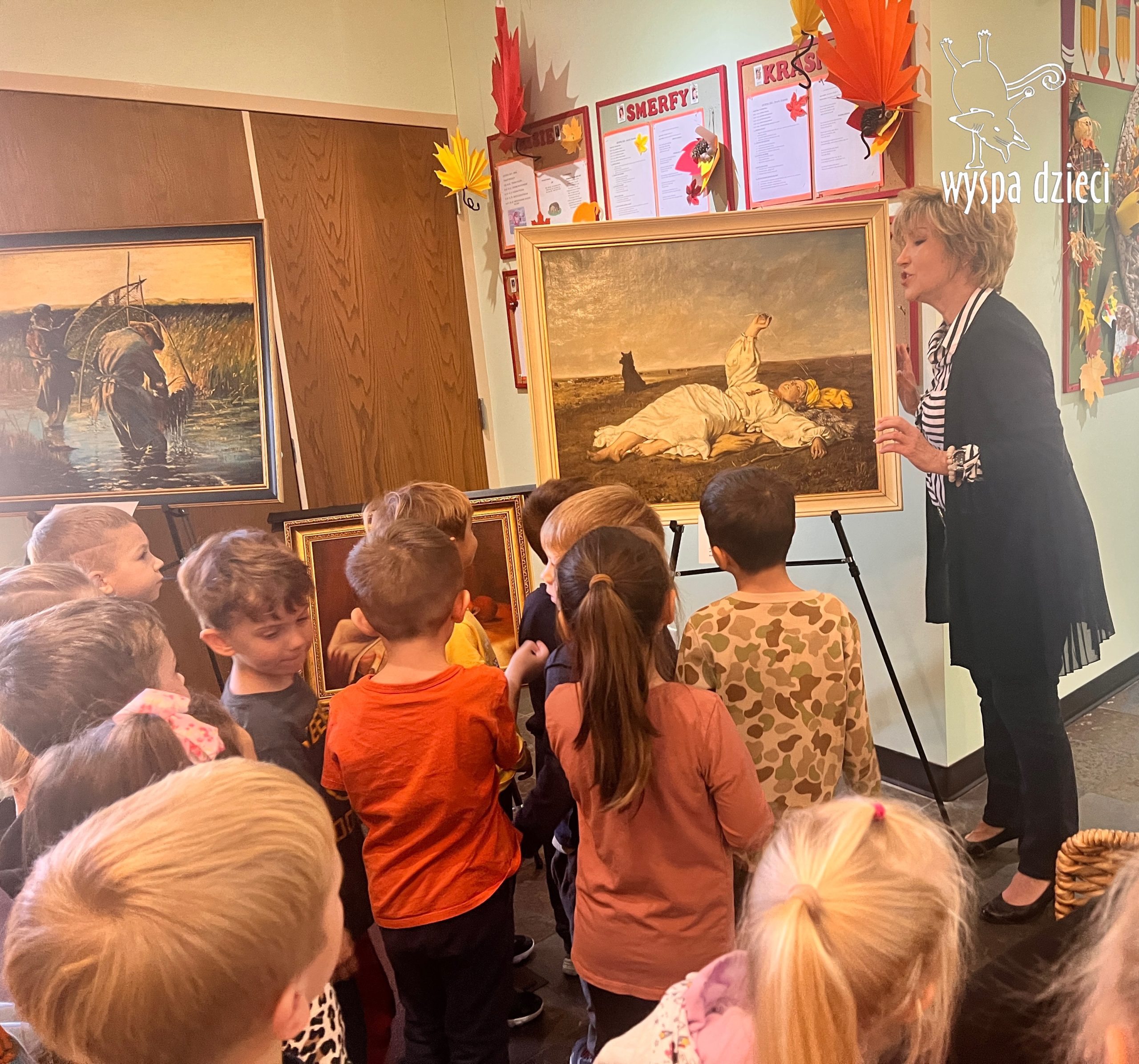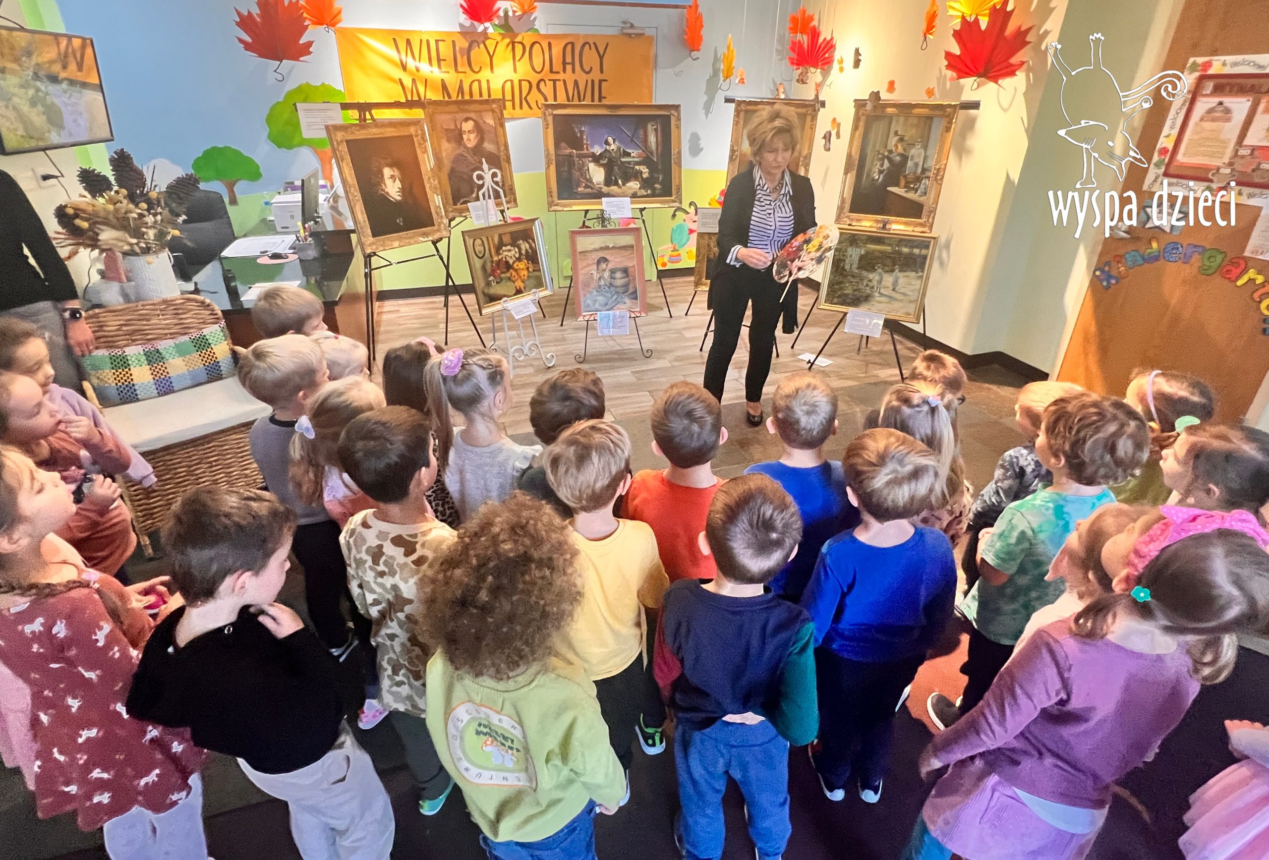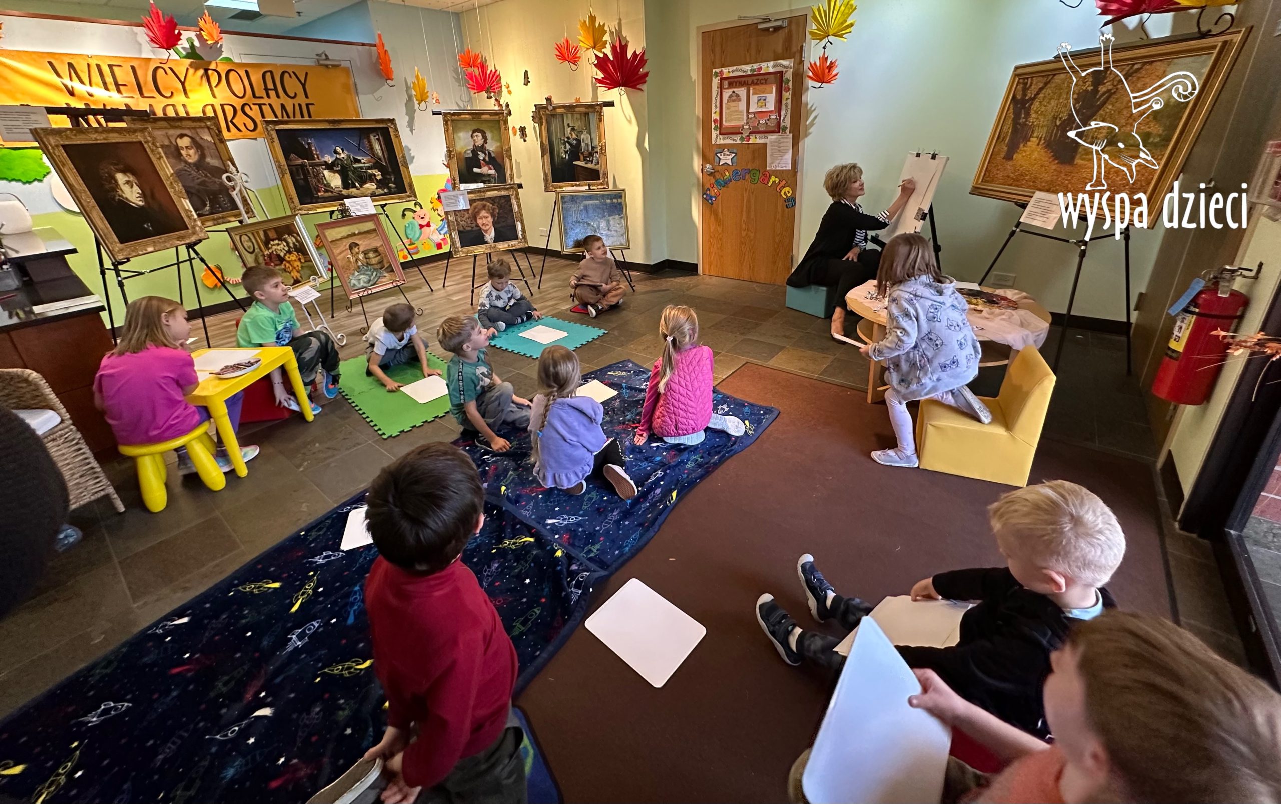 Dzieci zachwyciły się tymi dziełami sztuki, próbowały nawet same stworzyć podobne obrazy. Jeszcze raz dziękujemy pani Bożenie za odwiedziny i przybliżenie nam postaci znanych Polaków .