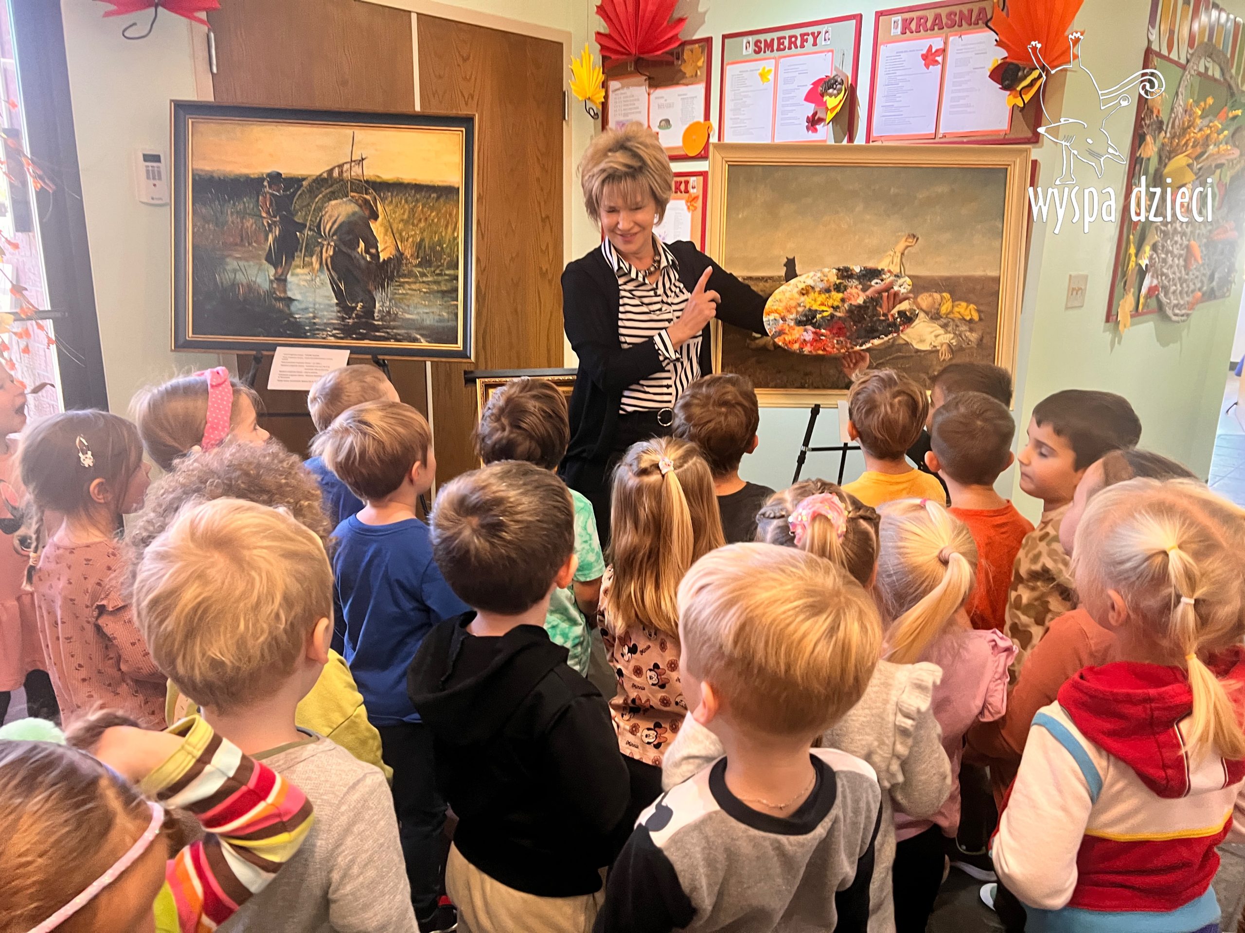 Z okazji Dnia Niepodległości odwiedziła nas pani Bożena Żak.Zaprezentowała dzieciom obrazy swego autorstwa przedstawiające wielkich Polaków .