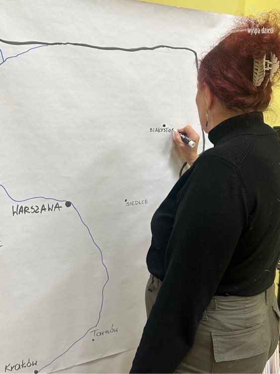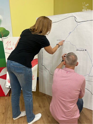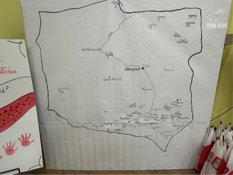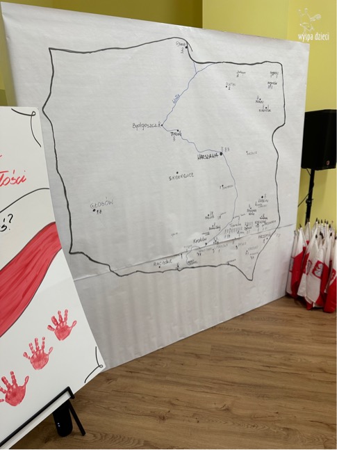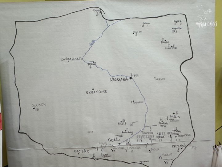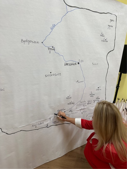 W tym roku na dużej mapie zaznaczyliśmy miasta z których pochodzą nauczyciele oraz rodzice przedszkolaków. Okazało się że najwięcej jest nas z południowej części Polski.