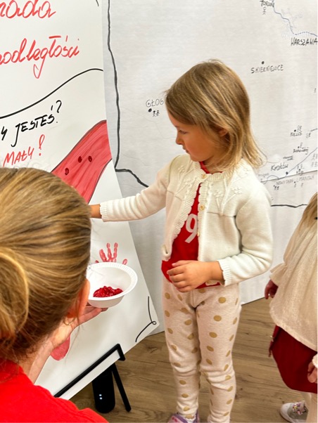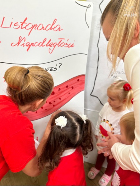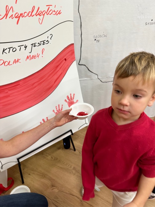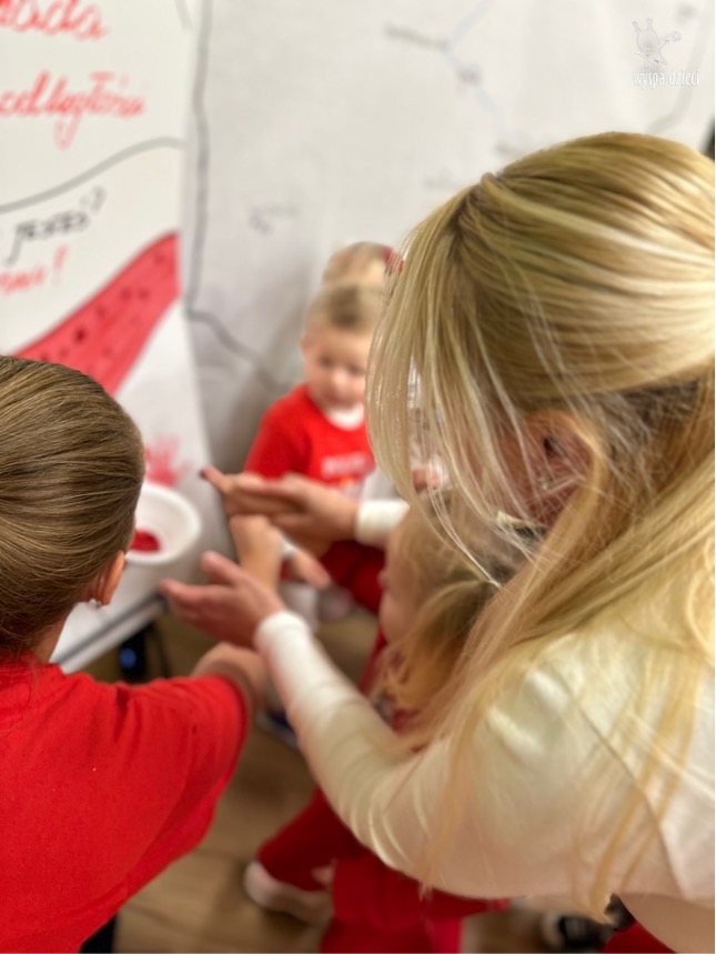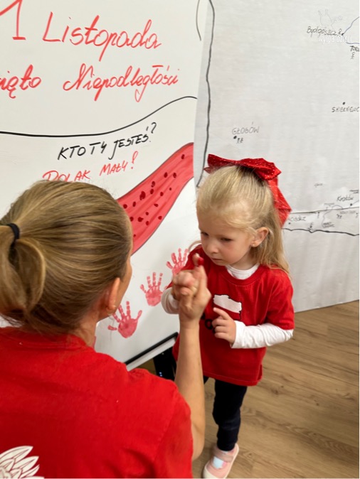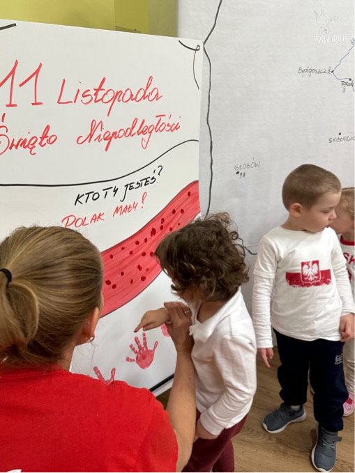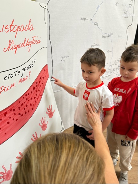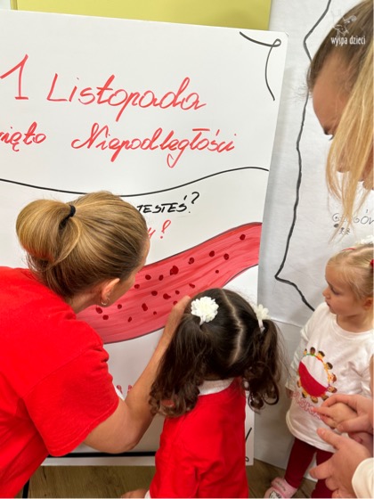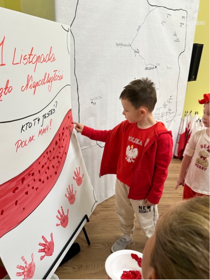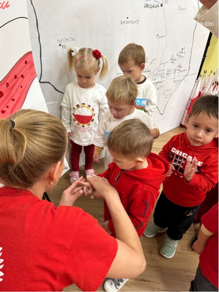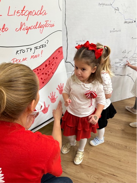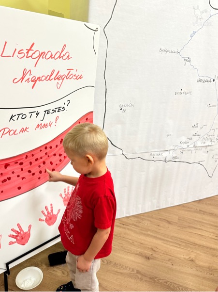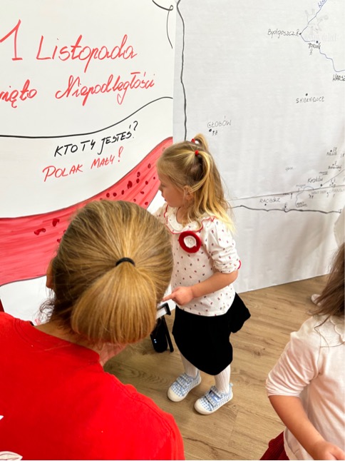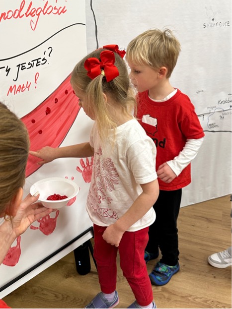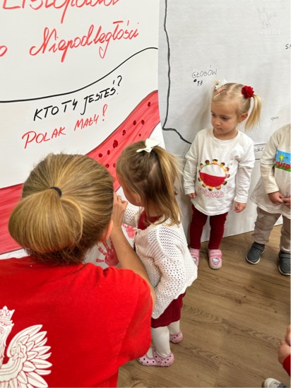 Wszyscy wspólnie zaśpiewaliśmy piękną piosenkę „Jaki piękny kraj”, która mówi o symbolach polskich oraz dumnie na koniec odśpiewaliśmy Mazurek Dąbrowskiego.