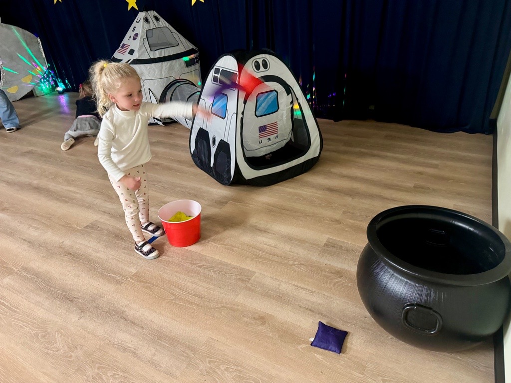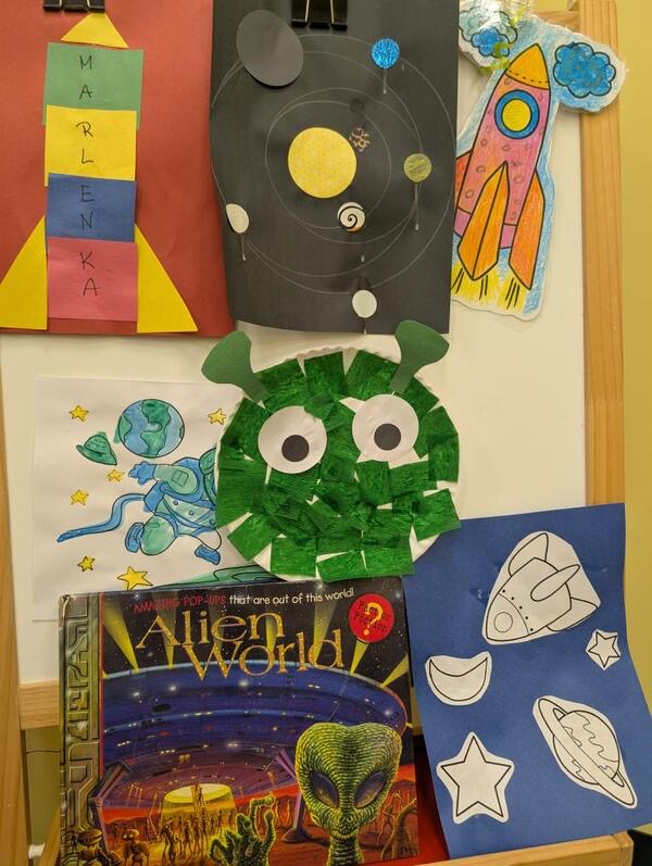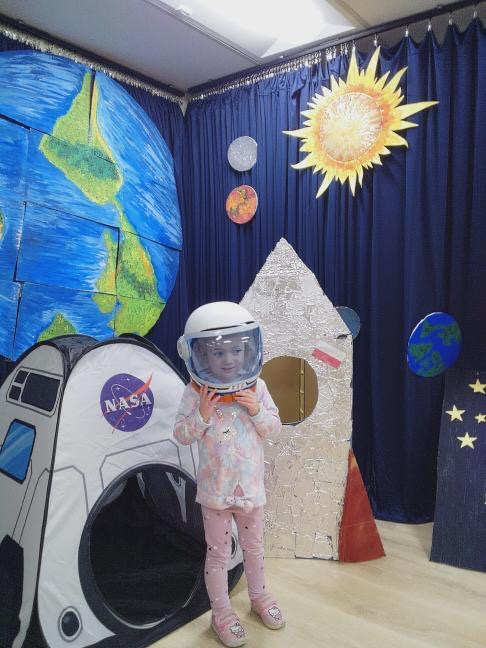 Było bardzo ciekawie oraz pracowicie : wyprawa w Kosmos, ciekawostki o Planetach, skąd bierze sie dzień i noc, budowanie rakiety, slalom rakiety między Meteorytami, pierwsze kroki na Księżyc, czarna dziura, tworzenie ukłądu słonecznego, wizyta w stacji kosmicznej, przejażdżka UFO, przejażdżka rakietą, strój kosmonauta, nasza planeta Ziemia.