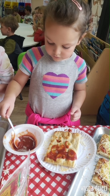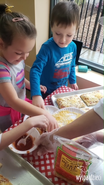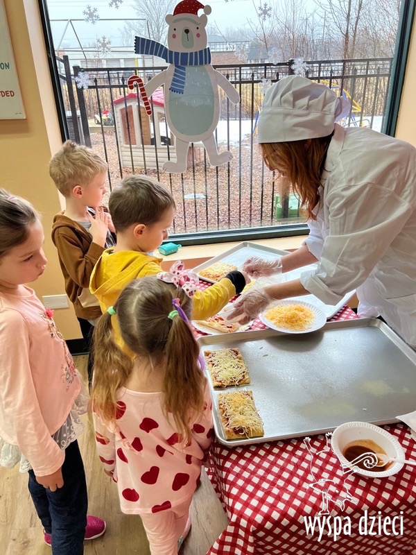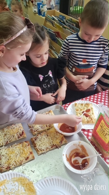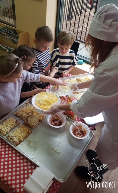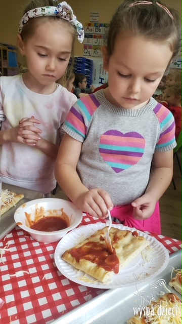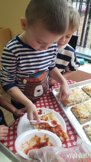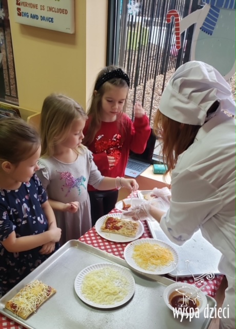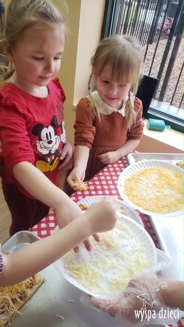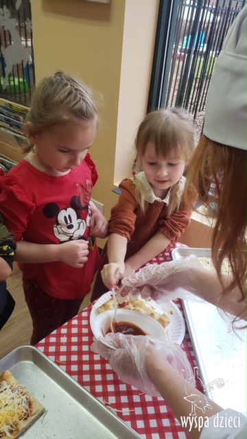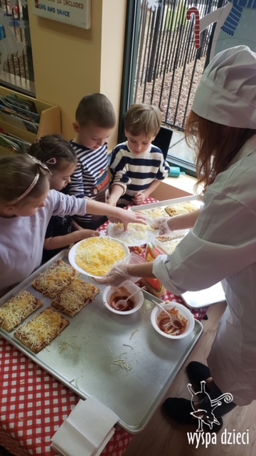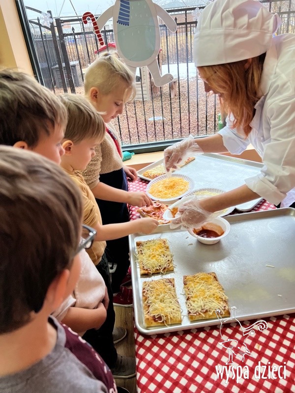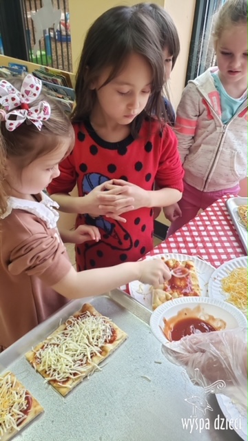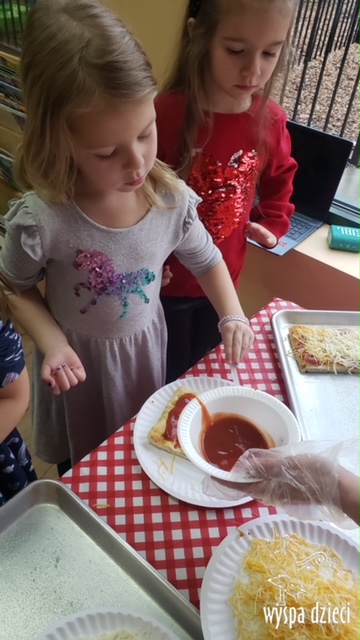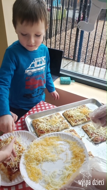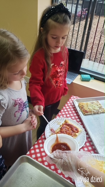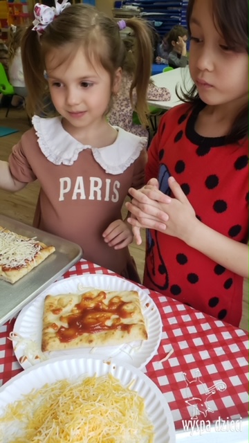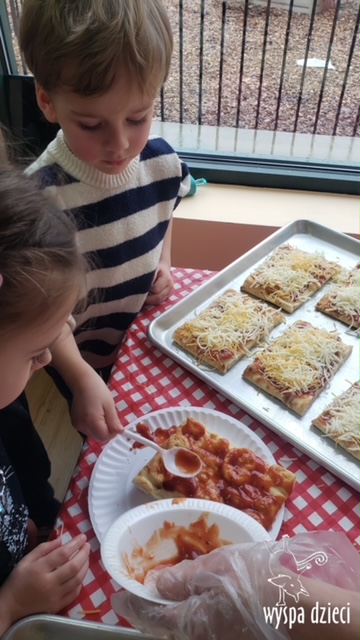 Odkrywcy i Podróżnicy świętowali National Pizza Day. Klasa pierwszej z grup zamieniła się w przytulną pizzerię o wdzięcznej nazwie “Amore Mio”, a jej wnętrze wypełniły dźwięki włoskiej muzyki. Po krótkiej dyskusji dotyczącej ulubionych dodatków, wszyscy zgodnie przystąpili do działania. Z niewielką pomocą Szefa Kasi oraz wychowawczyn kazdy uczeń bral udział w przygotowaniu serowej pizzy.