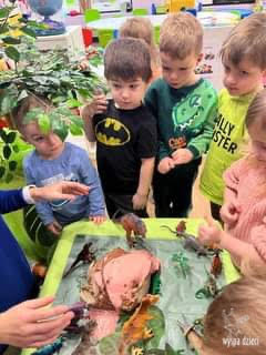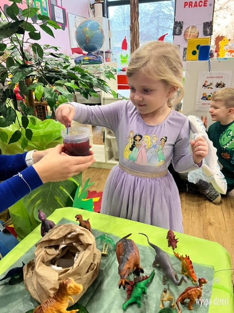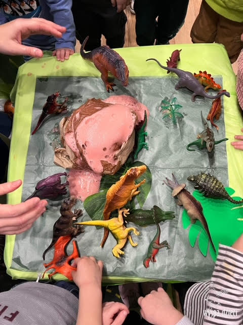 Przedszkolaki wzieły udział także w bardzo ciekawym doświadczeniu – wybuchu olbrzymiego wulkanu. który spowodował wyginięcie dinozaurów! Zapraszamy do galerii zdjęć: