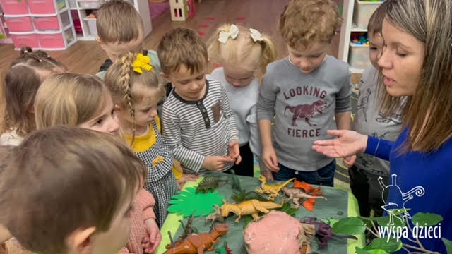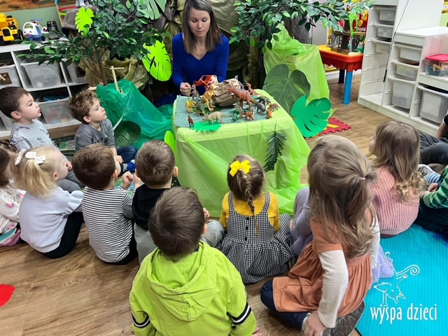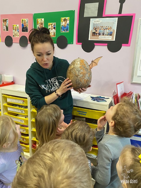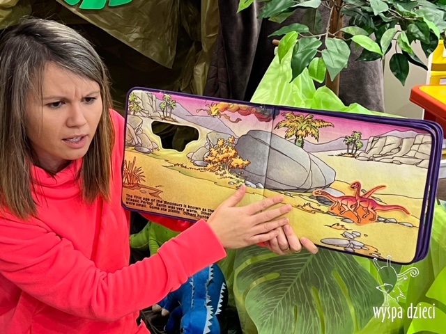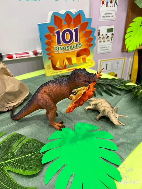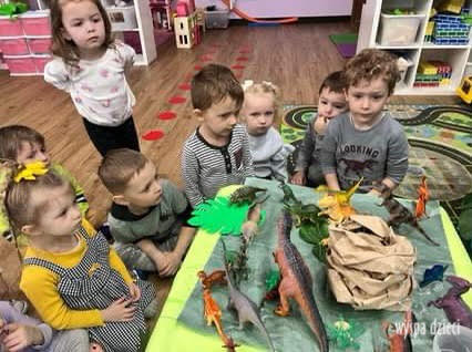 Krasnale odbyły podróż w czasie – przeniosły się do krainy dinozaurów, gdzie czekało ich wiele przygód. Maluchy dowiedziały się jakie były przysmaki t-rexa, w czym pomagała diplodokowi długa szyja oraz który dinozaur posiadał skrzydła. Krasnalki przez cały tydzień opiekowały się gigantycznym jajkiem z którego wykluł się malutki diplodok.