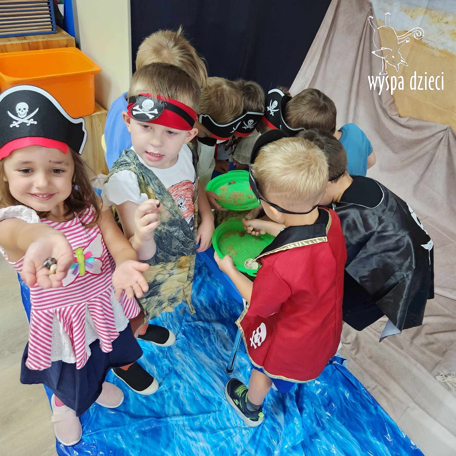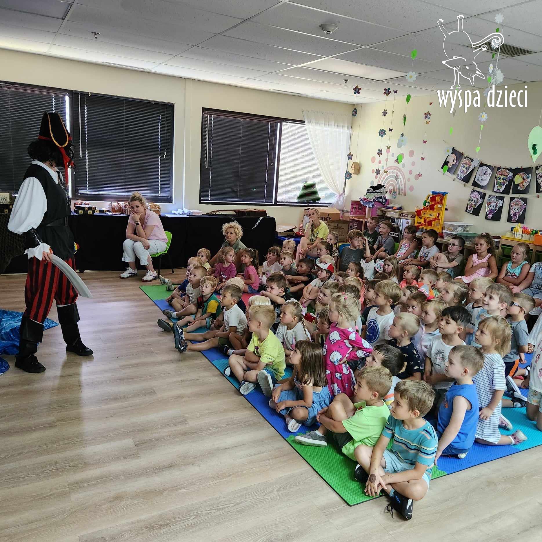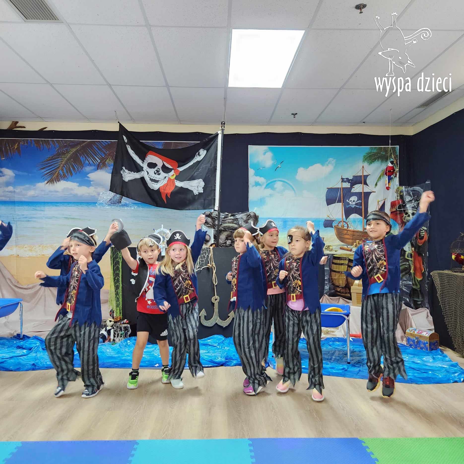 W ostatnim czasie w naszym przedszkolu Wyspa dzieci w Hanover Park, grupa Bystrzaki wraz ze swoim Kapitanem, zabrala przedszkolakow w swiat przygod. Wszyscy przebrani byli za piratow i z niecierpliwoscia czekali na fantastyczna przygode w poszukiwaniu prawdziwego skarbu. Byly rozne gry, zabawy, wspolnie zatanczylismy taniec piracki, a na twarzach wszystkich dzieci zagoscil promienny usmiech.