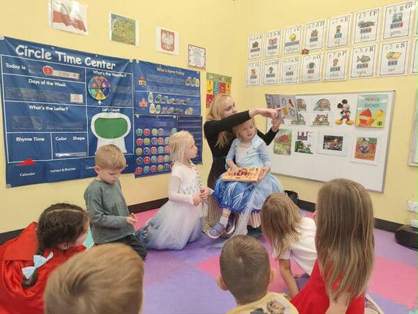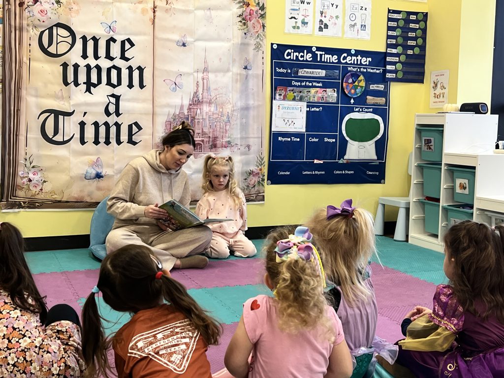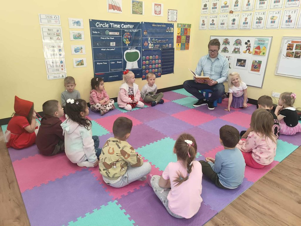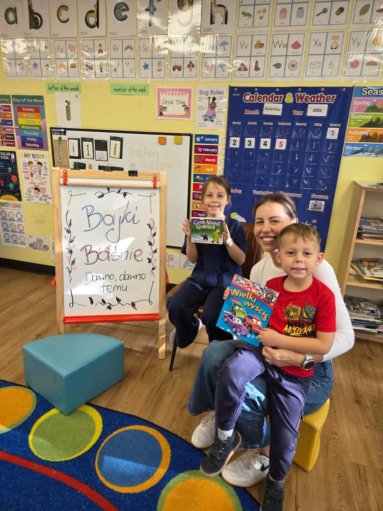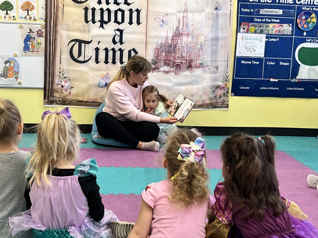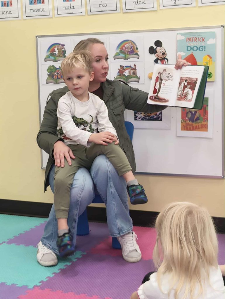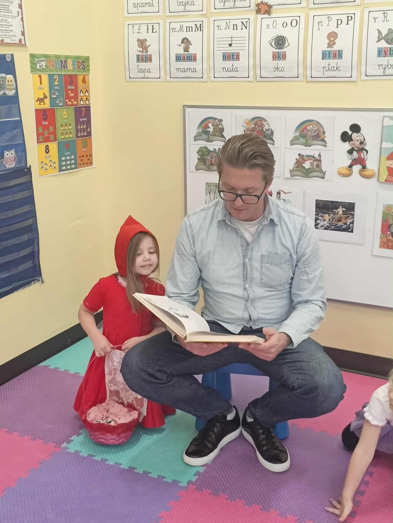 Tematem tego tygodnia w Wyspie Dzieci River Grove były BAJKI, BAŚNIE, BAJECZKI. Oprócz wielu atrakcji przygowanych przez nauczycieli dużą atrakcją było czytanuie bajek przez dorosłych. Chętni rodzice przyszli w tym tygodniu do grup swoich dzieci na zaproszenie nauczycieli i czytali przedszkolakom . Czytane bajki były przyniesione przez nich z domu lub wybrane przez nauczycieli. Atmosfera podczas czytania była bardzo rodzinna. Dzieci z niecierpliwością czekały na rodzica i ogromnie przeżywały wizytę w przedszkolu mamy, taty, babci a nawet rodzeństwa. Wszystkie dzieci z wielkim zaciekawieniem słuchaly bajek, a także oglądaly kolorowe ilustracje pokazywane przez rodziców.