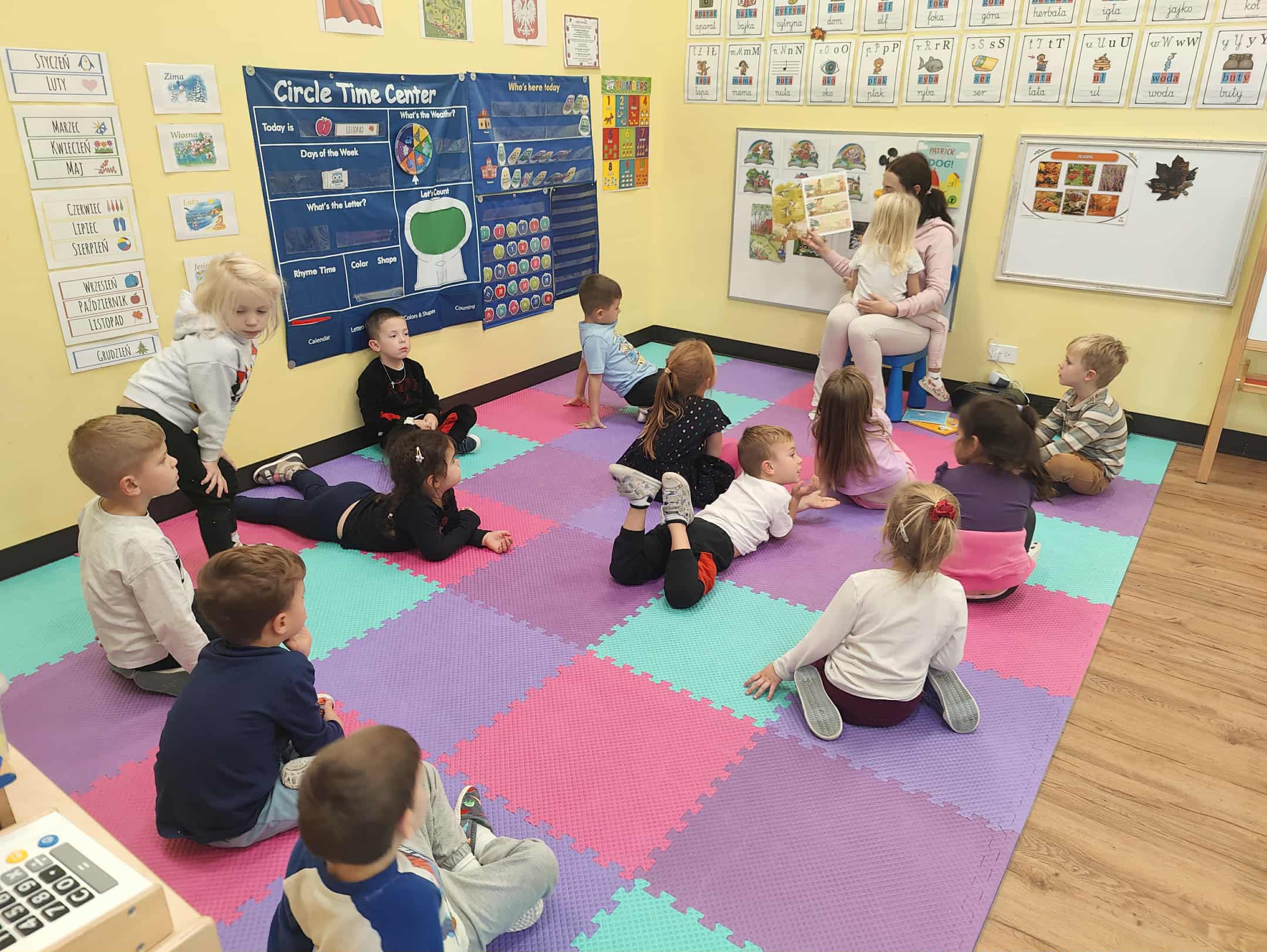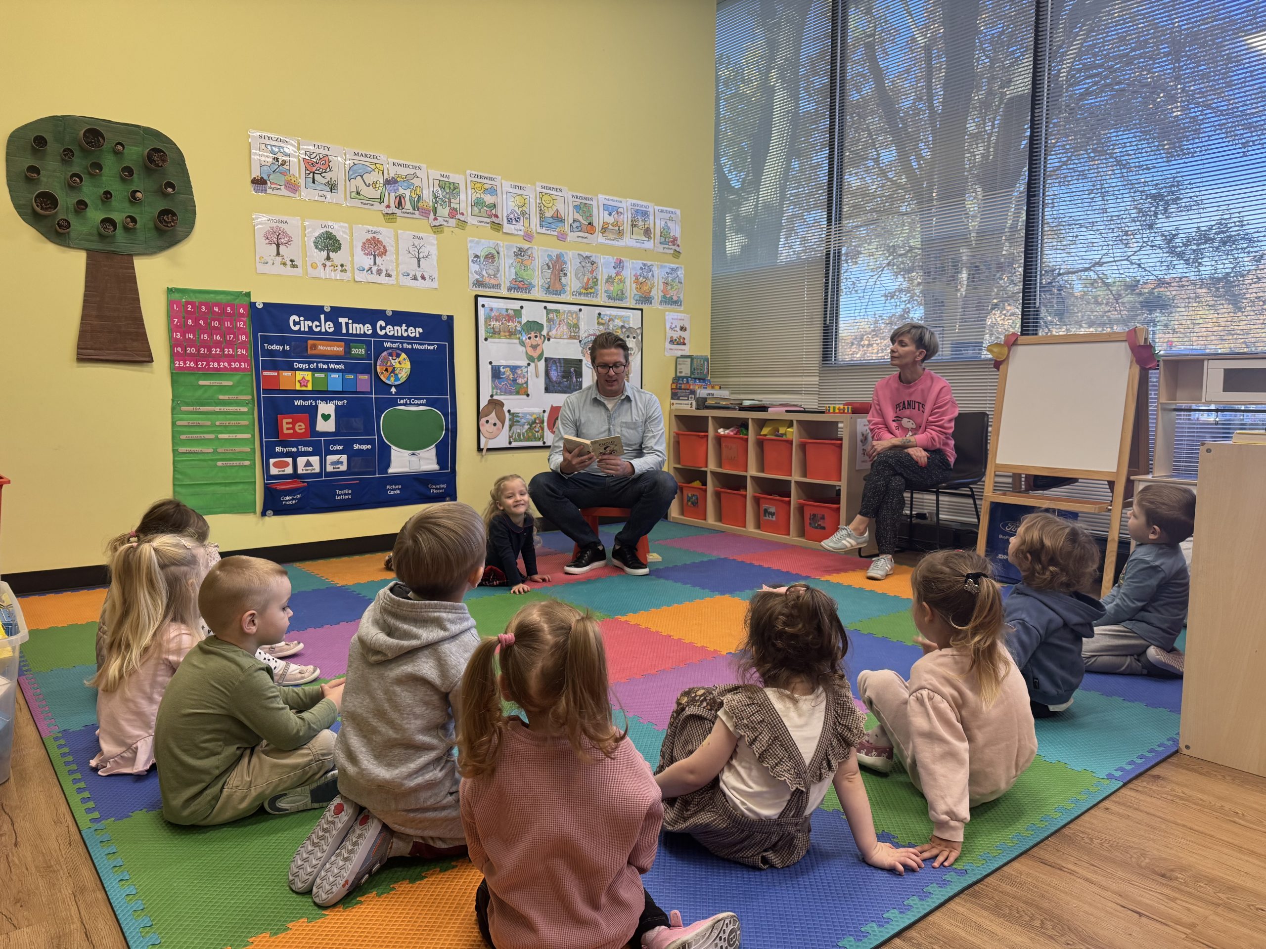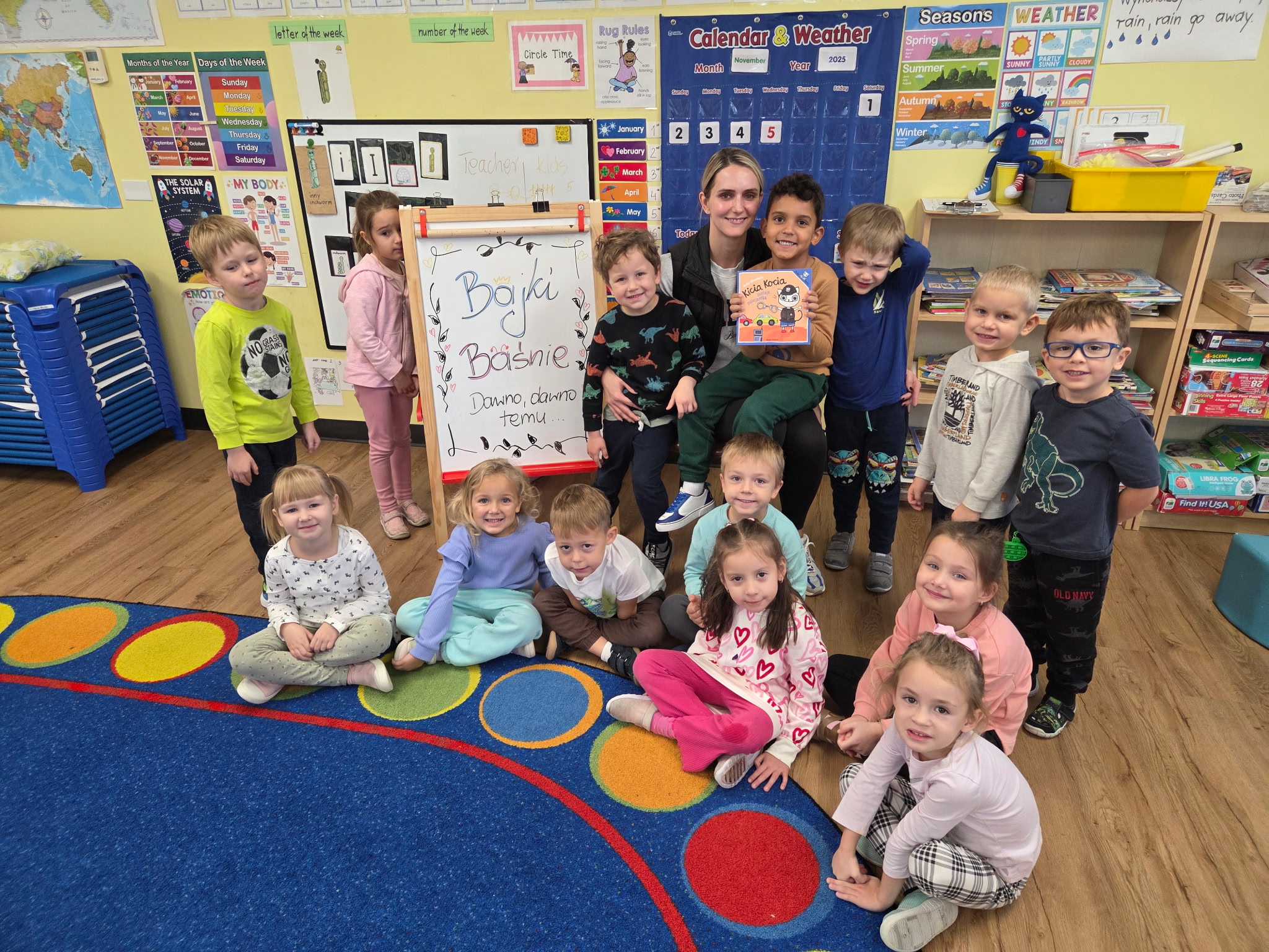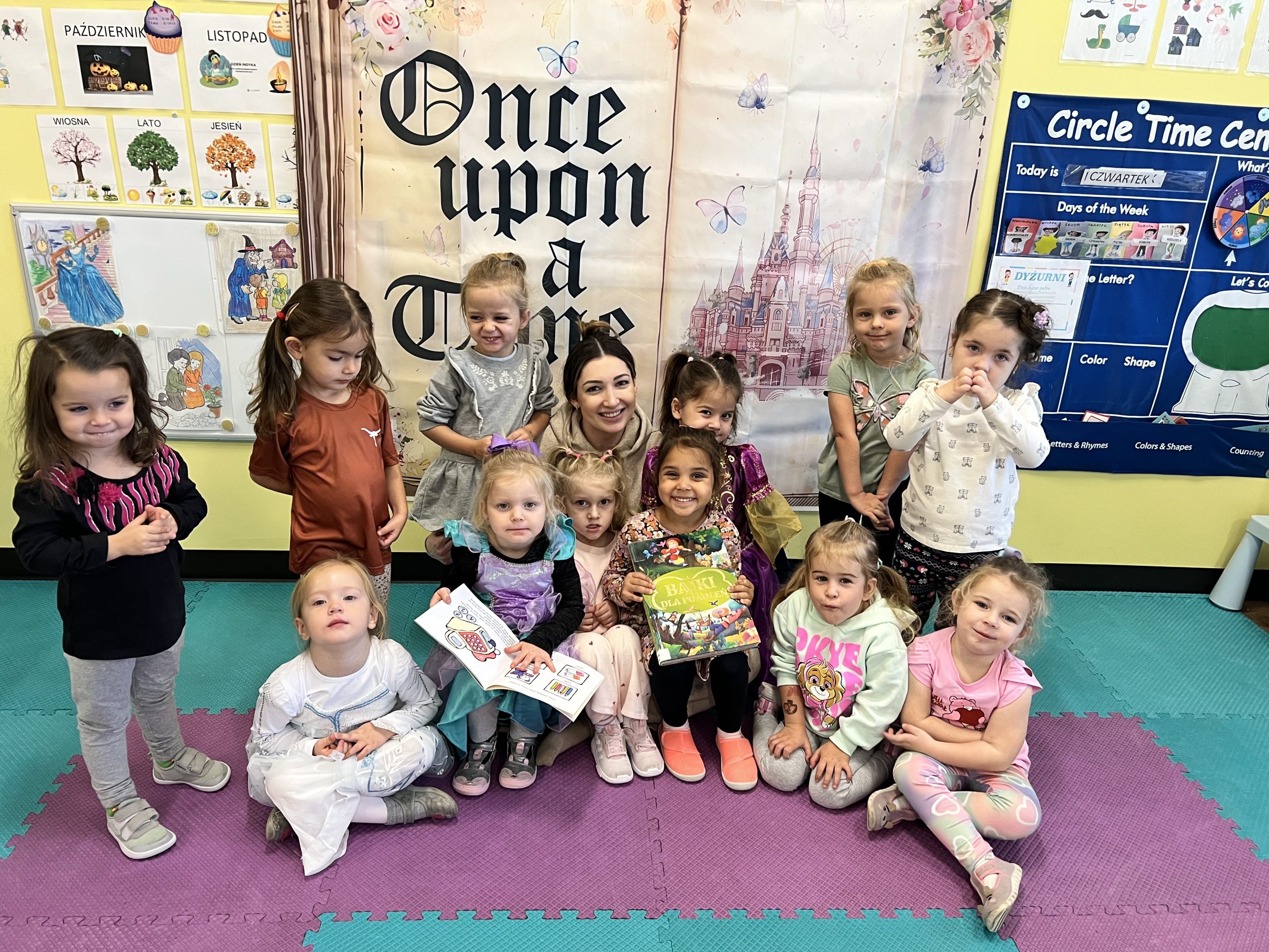 Tematem tego tygodnia w Wyspie Dzieci River Grove były BAJKI, BAŚNIE, BAJECZKI. Oprócz wielu atrakcji przygowanych przez nauczycieli dużą atrakcją było czytanuie bajek przez dorosłych. Chętni rodzice przyszli w tym tygodniu do grup swoich dzieci na zaproszenie nauczycieli i czytali przedszkolakom . Czytane bajki były przyniesione przez nich z domu lub wybrane przez nauczycieli. Atmosfera podczas czytania była bardzo rodzinna. Dzieci z niecierpliwością czekały na rodzica i ogromnie przeżywały wizytę w przedszkolu mamy, taty, babci a nawet rodzeństwa. Wszystkie dzieci z wielkim zaciekawieniem słuchaly bajek, a także oglądaly kolorowe ilustracje pokazywane przez rodziców.