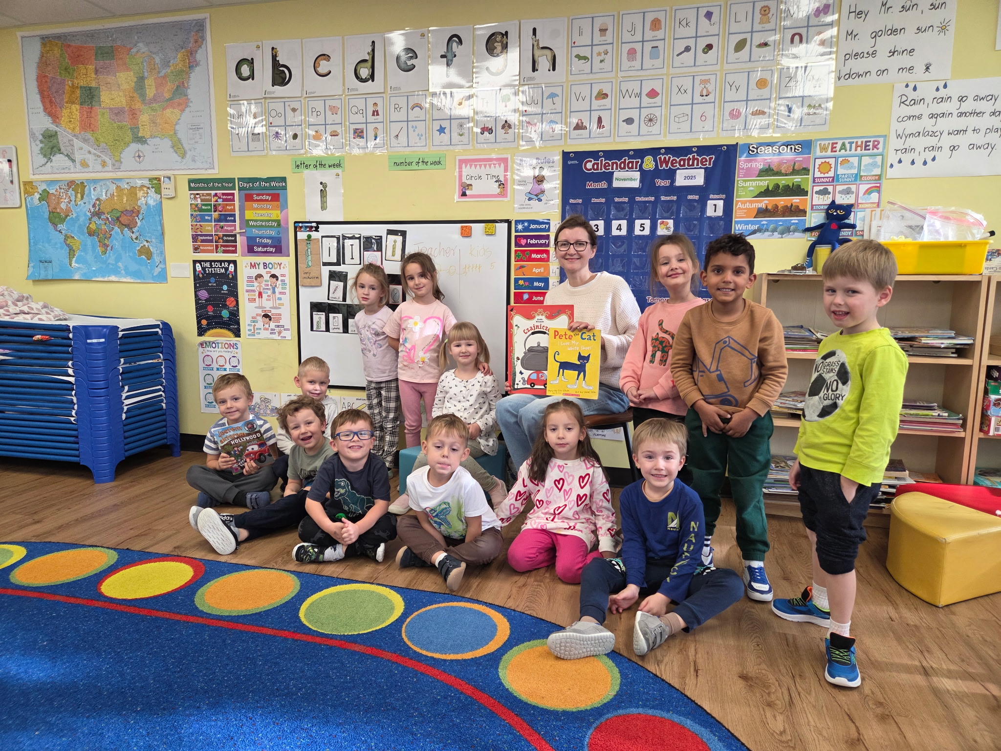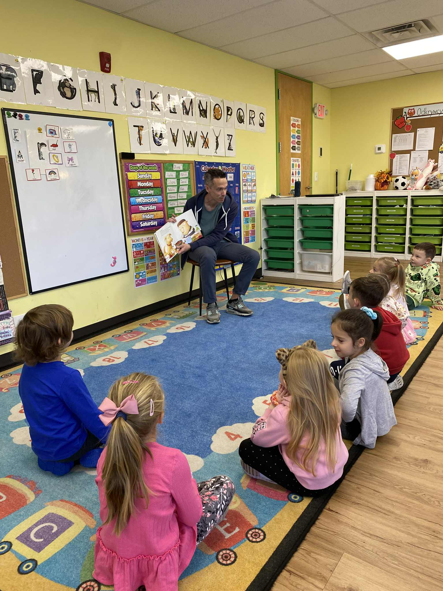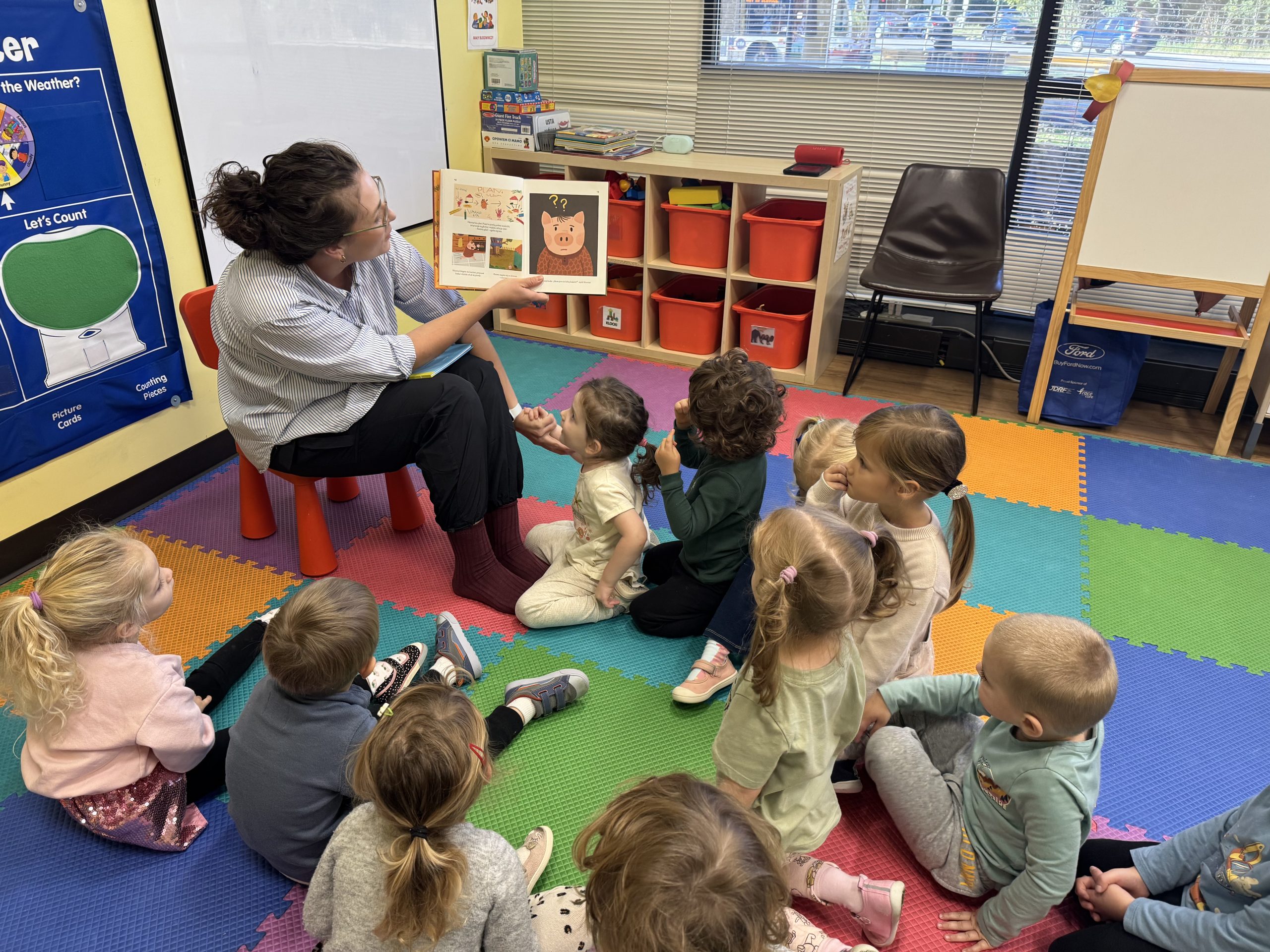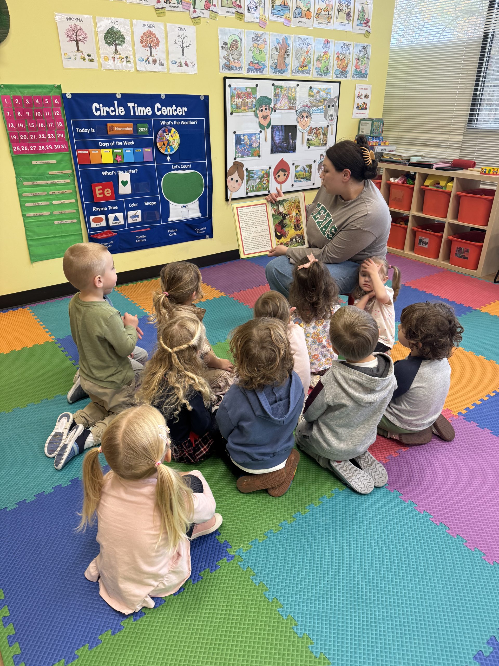 Tematem tego tygodnia w Wyspie Dzieci River Grove były BAJKI, BAŚNIE, BAJECZKI. Oprócz wielu atrakcji przygowanych przez nauczycieli dużą atrakcją było czytanuie bajek przez dorosłych. Chętni rodzice przyszli w tym tygodniu do grup swoich dzieci na zaproszenie nauczycieli i czytali przedszkolakom . Czytane bajki były przyniesione przez nich z domu lub wybrane przez nauczycieli. Atmosfera podczas czytania była bardzo rodzinna. Dzieci z niecierpliwością czekały na rodzica i ogromnie przeżywały wizytę w przedszkolu mamy, taty, babci a nawet rodzeństwa. Wszystkie dzieci z wielkim zaciekawieniem słuchaly bajek, a także oglądaly kolorowe ilustracje pokazywane przez rodziców.