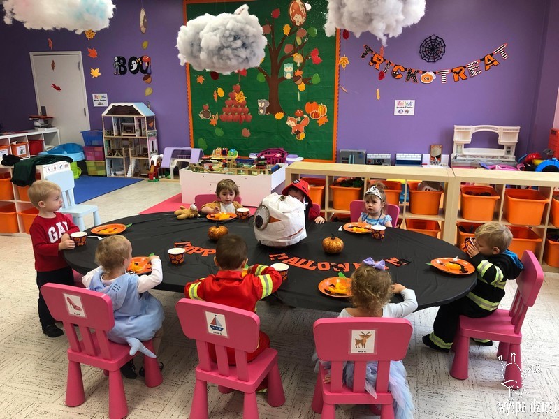 „Trick or Treat- give me something sweet to eat”- w rytm amerykańskiej piosenki dzieci z naszego przedszkola bawiły się wokół wielkiego dmuchanego kota. Każda zabawa poprzedzona była oczywiście paradą strojów halooween’owych. Były gry, zabawy, konkursy i tańce, a także tajemnicze opowieści.