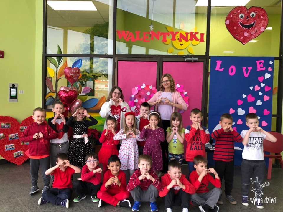 Na dzisiejszy dzień czekali nasi milusińscy z niecierpliwością. Wszyscy przyszli do naszej Wyspy Dzieci w River Grove ubrani w kolorach czerwonych lub różowych z usmiechami na twarzy. Czekała na przedszkolakow ogromna niespodzianka!!!! Przyszedł do nas prawdziwy DJ, który poprowadził dla każdej grupy Bal Walentynkowy ! Można powiedzieć nawet ze była to DYSKOTEKA!!!! Dziekujemy pięknie Panu – Taras Bezhnar ( tatus naszego przedszkolaka z grupy Bystrzaki) za poświęcenie swojego czasu i przygotowanie tak fajnej zabawy. Następnie w klasach dzieci przekazały swoim kolegom i koleżankom upominki Walentyntynkowe, które przygotowali w domu.