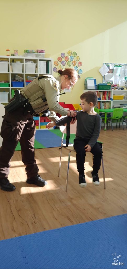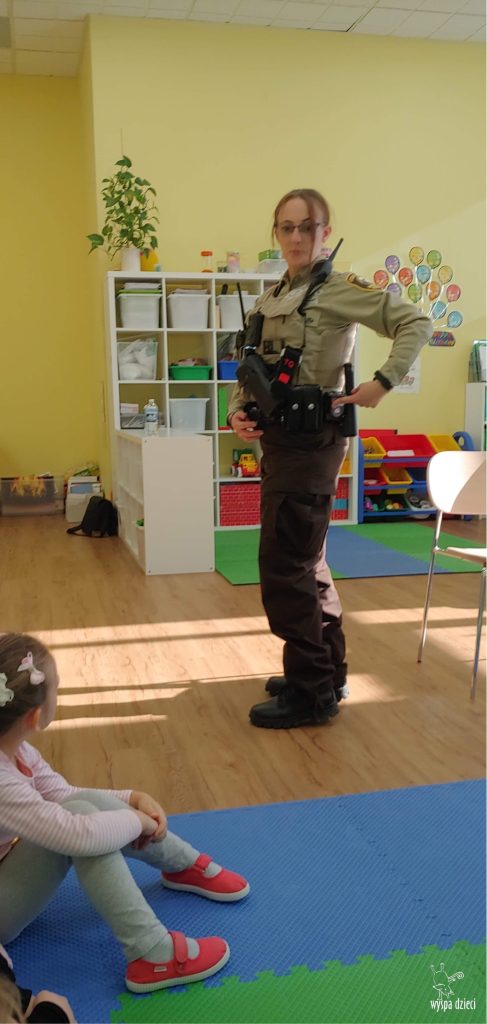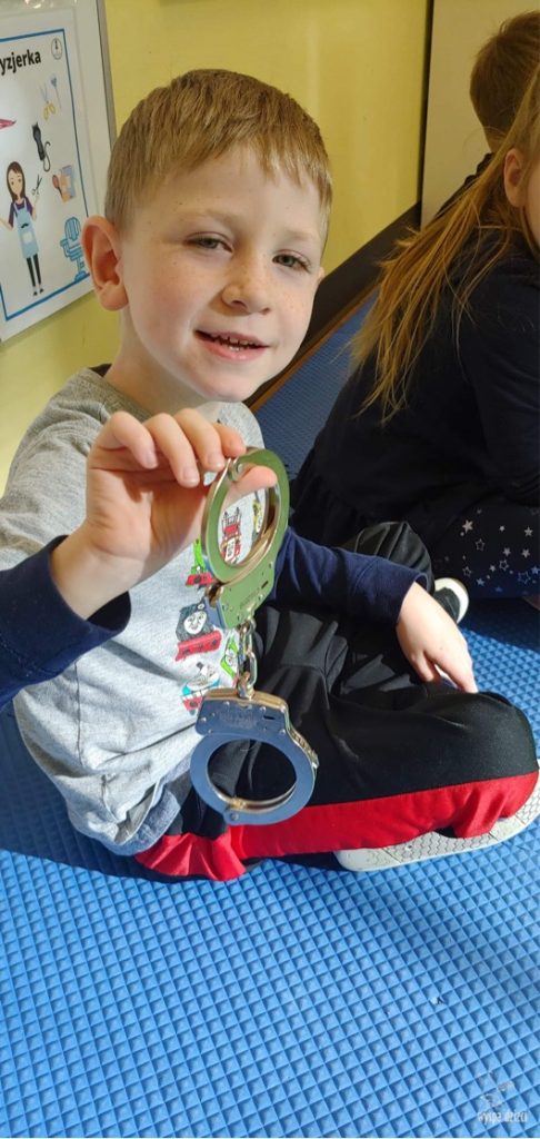 Dziękujemy Pani Gondek za przybycie i przybliżenie tak odpowiedzialnego zawodu, jakim jest zawód policjanta. Dzięki takim spotkaniom na pewno żaden z maluchów nie będzie obawiał się spotkania z funkcjonariuszem. Policjant będzie kojarzył się przedszkolakom, jako osoba, której nie należy się bać i do której zawsze i w każdej sytuacji można zwrócić się o pomoc.