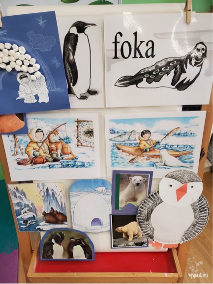 Ciekawa wyprawa Podròżnikòw z Schiller Park:) W Krainie Wiecznego Lodu, gdzie kròluje zima i Eskimosi, polarna zwierzyna;bialy miś i foki,morsy i pingwiny. Wszyscy lubią zimno, mają dziarskie miny Igloo Eskimosòw to “dom nad domami, lodowe kawałki są jego ścianami”.