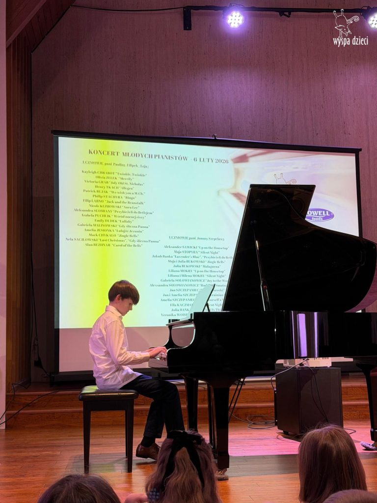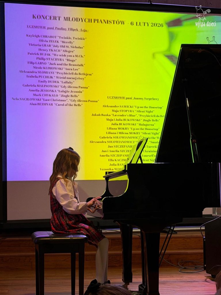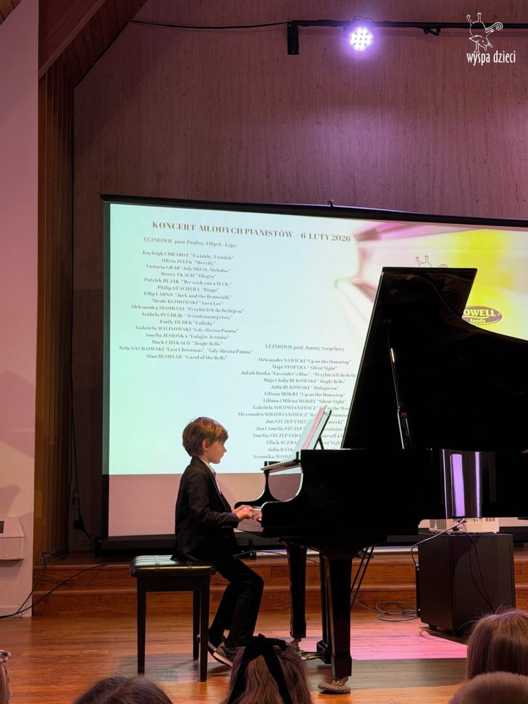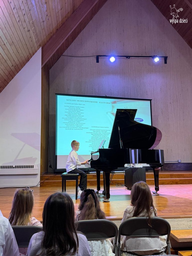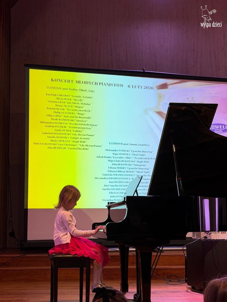 7 lutego 2026 roku odbył się Koncert Noworoczny najmłodszych pianistów z Wyspy Dzieci River Grove – uczniów pani Pauliny Filipek – Leja oraz uczniów pani Joanny Szepelawy. Po raz pierwszy na naszym koncercie usłyszeliśmy również młodych pianistów Wyspy Dzieci Algonquin.