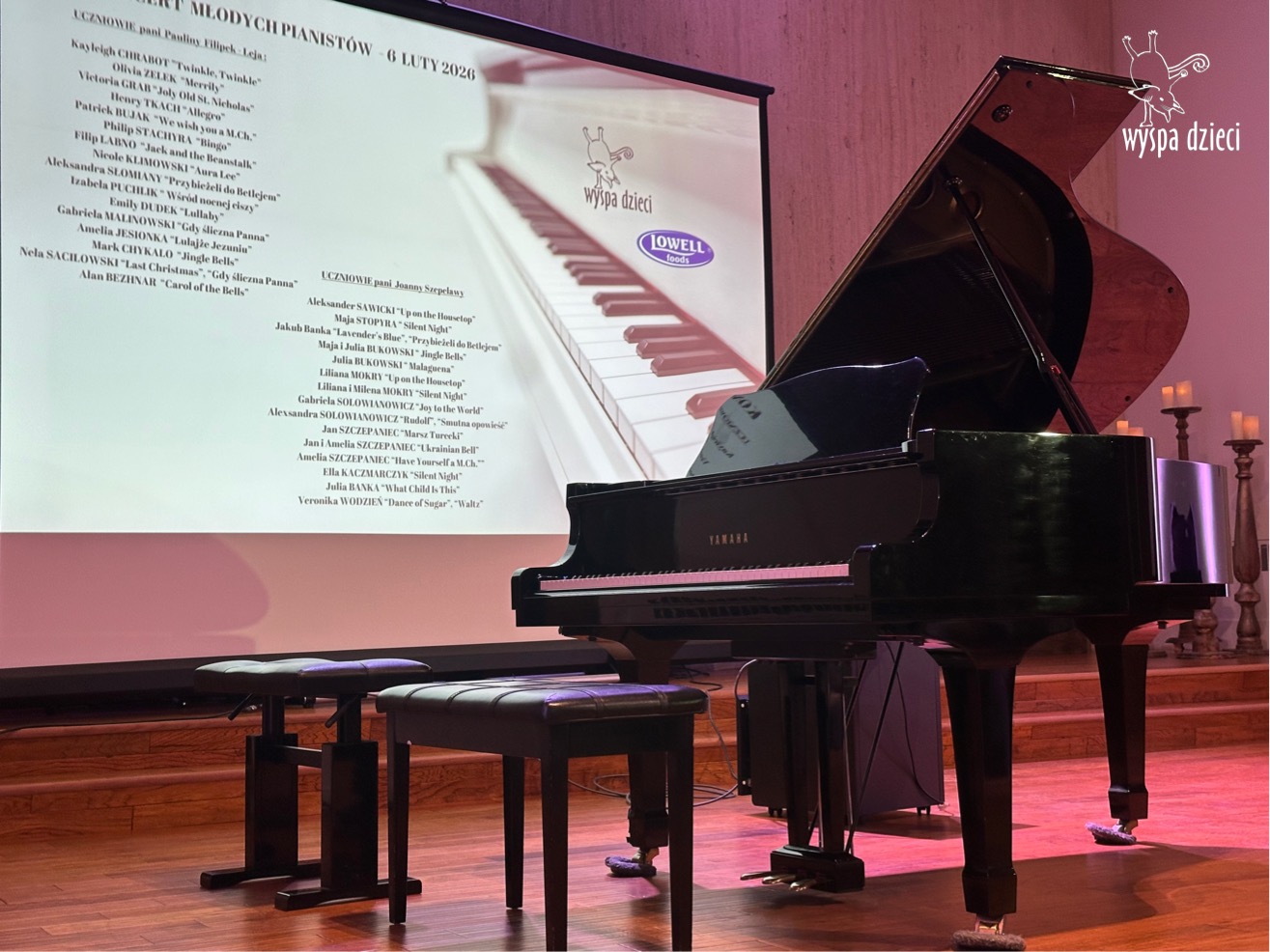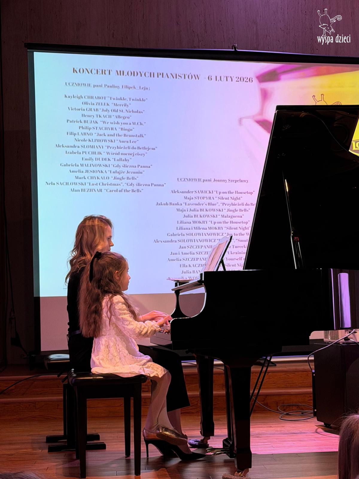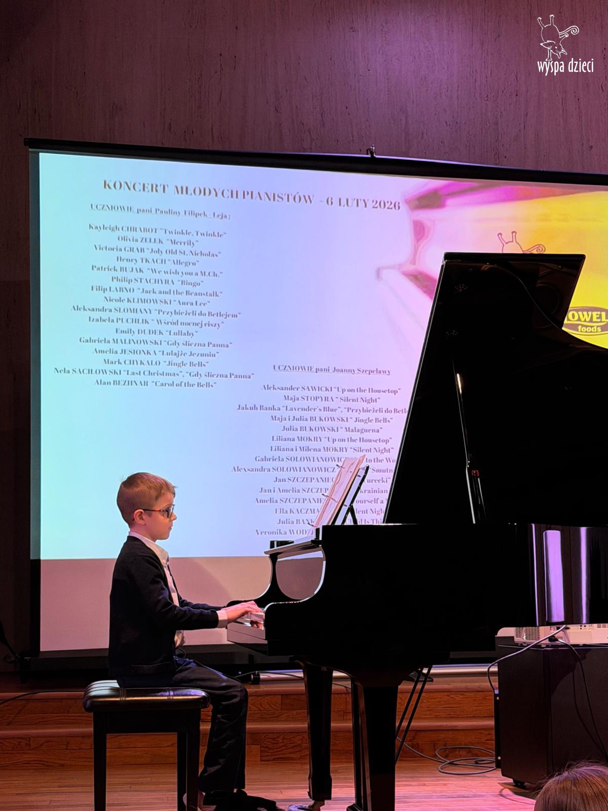 7 lutego 2026 roku odbył się Koncert Noworoczny najmłodszych pianistów z Wyspy Dzieci River Grove – uczniów pani Pauliny Filipek – Leja oraz uczniów pani Joanny Szepelawy. Po raz pierwszy na naszym koncercie usłyszeliśmy również młodych pianistów Wyspy Dzieci Algonquin.