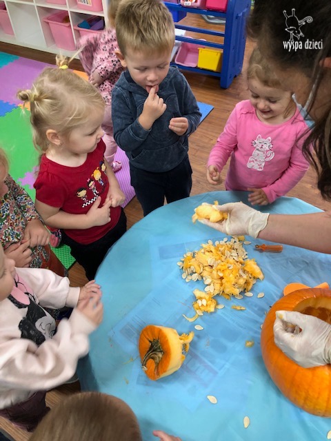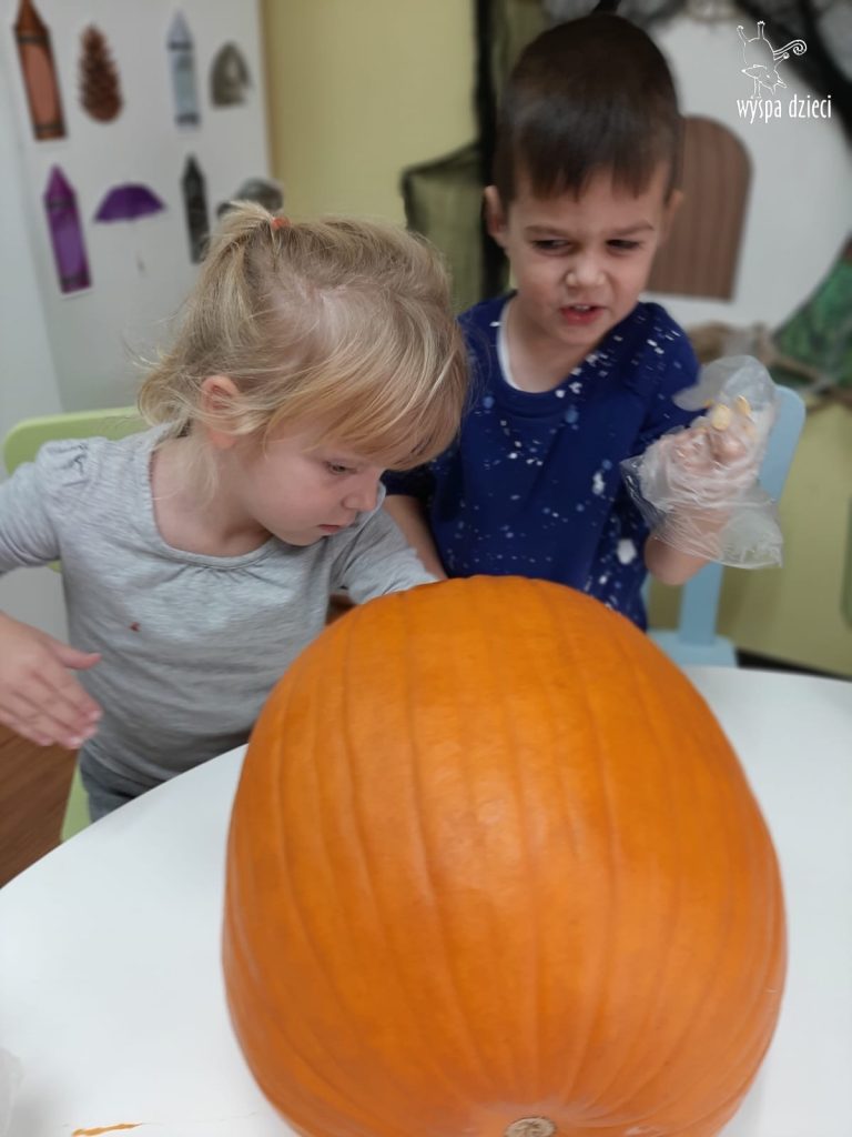 Dynie małe, dynie duże,??dynie w dole, dynie w górze.??Dynie z lewej, dynie z prawej,??dynie kręcą się w zabawie. ??