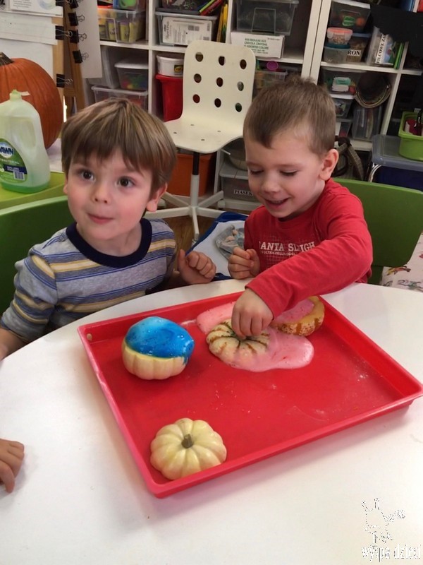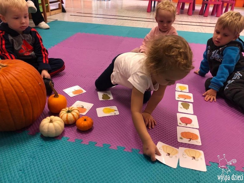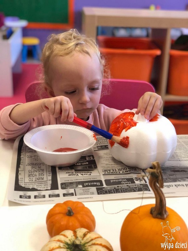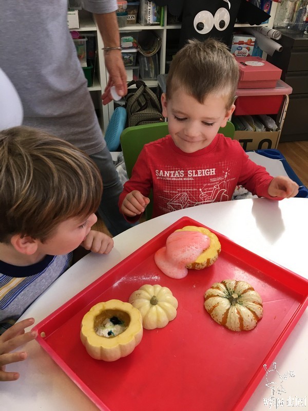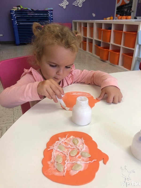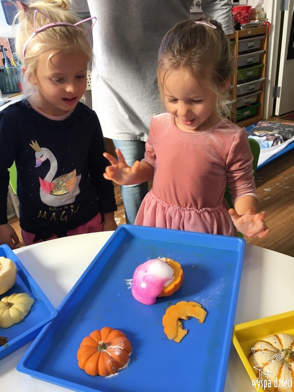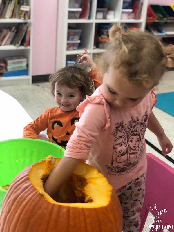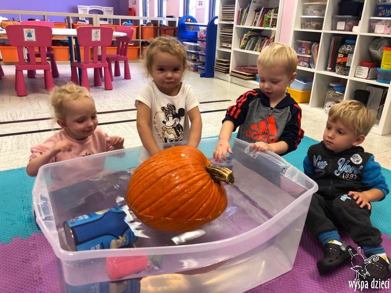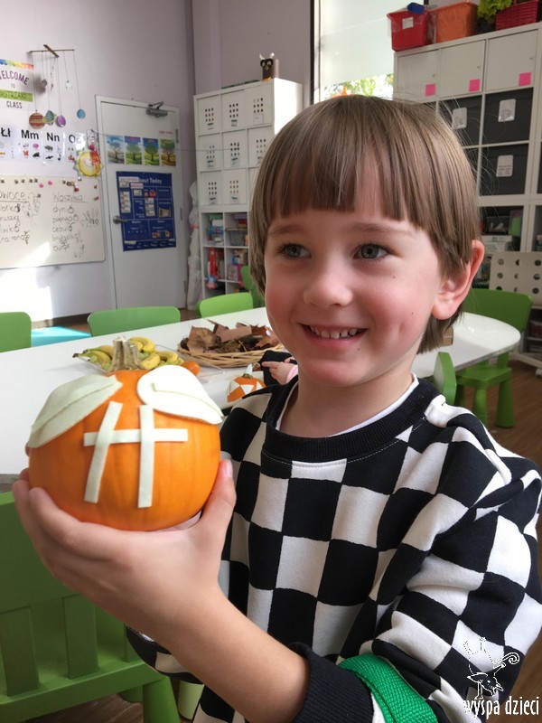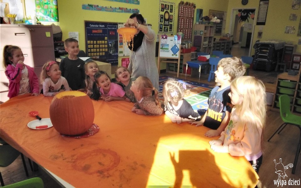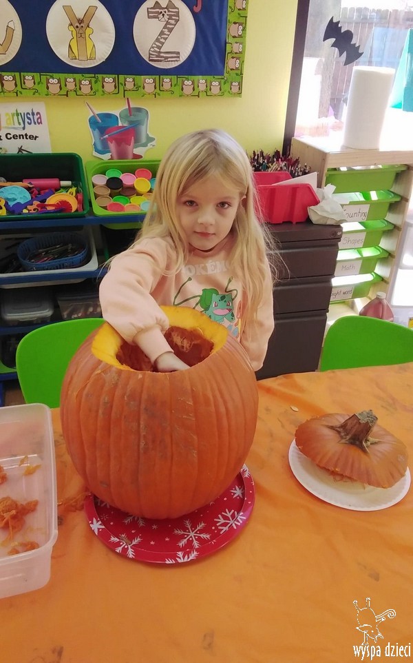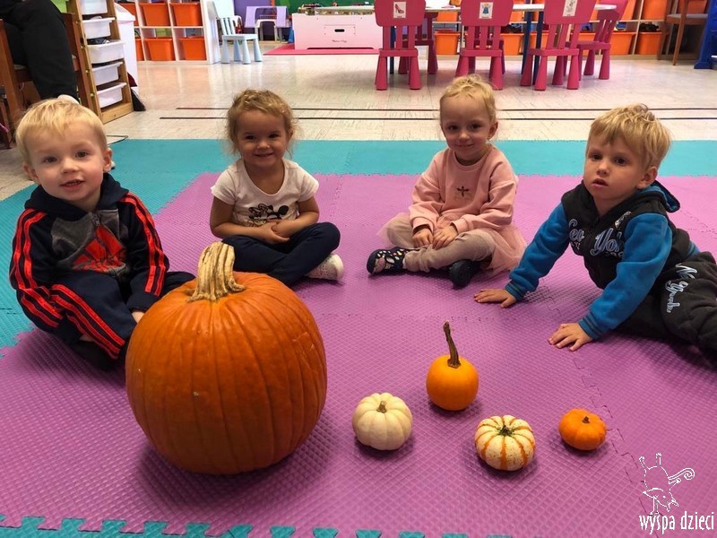W zeszłym tygodniu nasze przedszkolaki polisensorycznie zapoznały się z dynią. Mówiliśmy o jej wielkościach, kształtach i kolorach. Dzieci ćwiczyły sprawność manualną przy wydrążaniu i liczeniu pestek dyni. Robiliśmy również eksperymety dyniowe oraz różne projekty plastyczne.