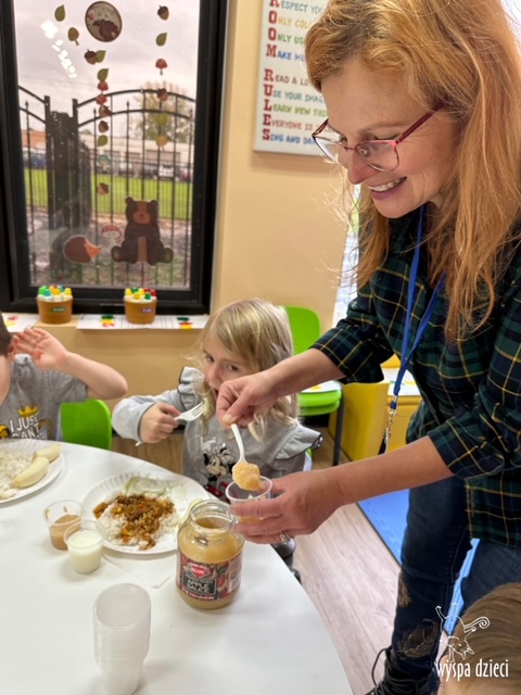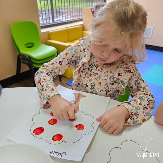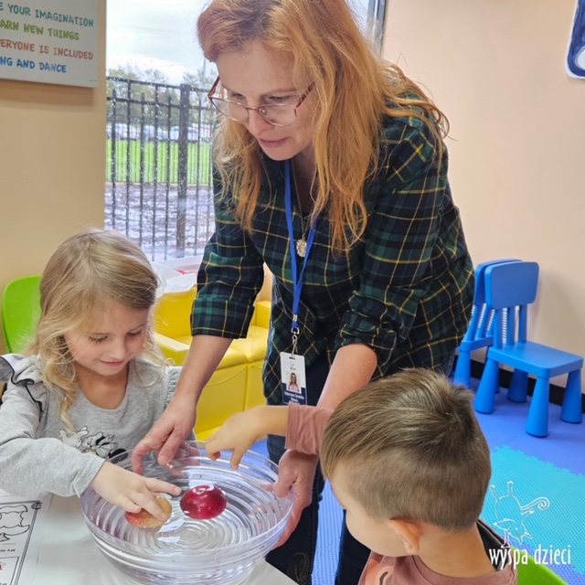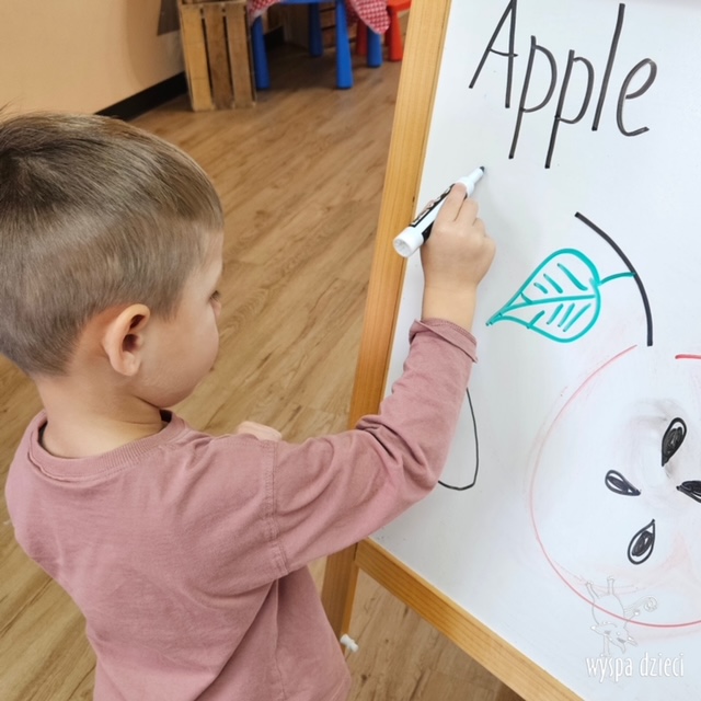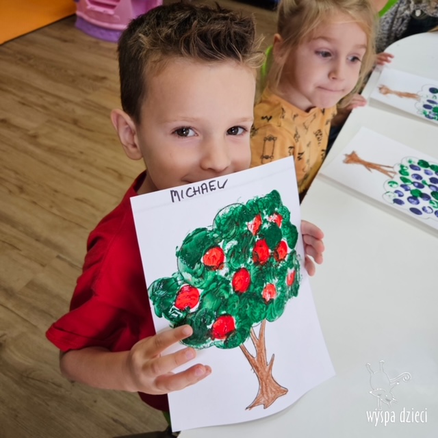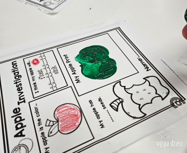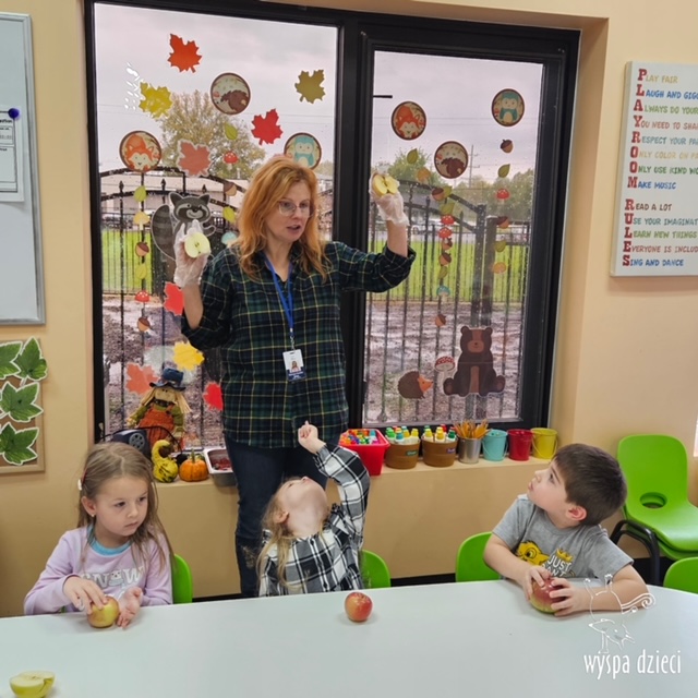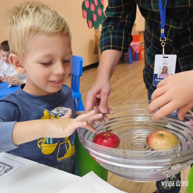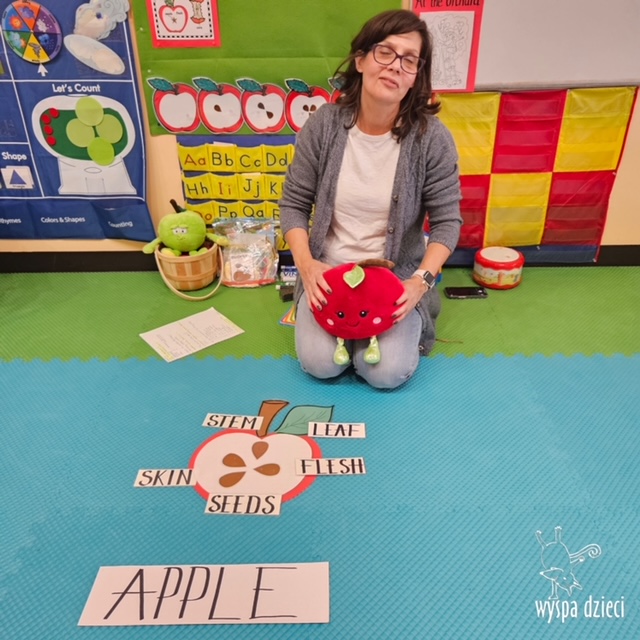 Odkrywcy uroczystoście celebrowali święto swojego ulubionego owocu. Były gry, piosenki, rymowanki i wspólne czytanie historii prosto z sadu. Uczniów głosowali na ulubiony gatunek jablka, przeprowadzali naukowe eksperymenty i poszukiwali zaginionych jabłuszek (scavenger hunt). Dużo satysfakcji sprawiły Odkrywcom plastyczne i sensoryczne projekty ( marble art, apple stamping) Bardzo podobała im się owocowa joga, ale największą frajdę sprawiła oczywiście degustacja jabłkowych pyszności – świeżego soku, sosu z cynamonem i pysznej szarlotki. Zresztą, zobaczcie sami.