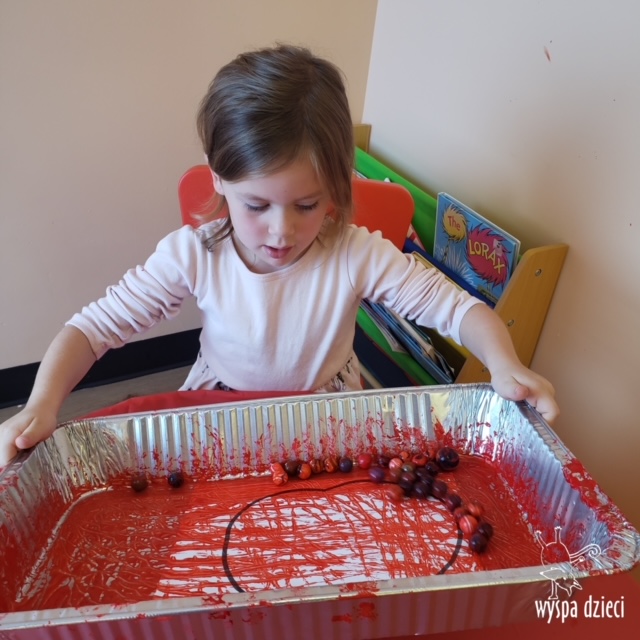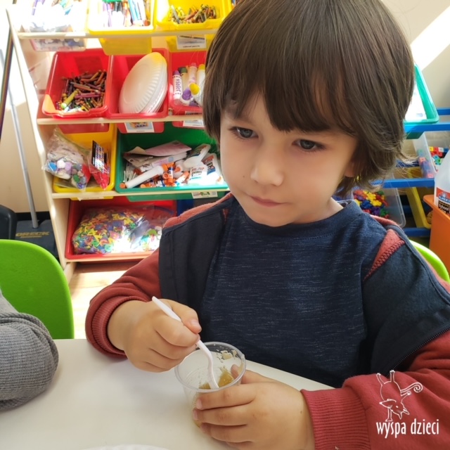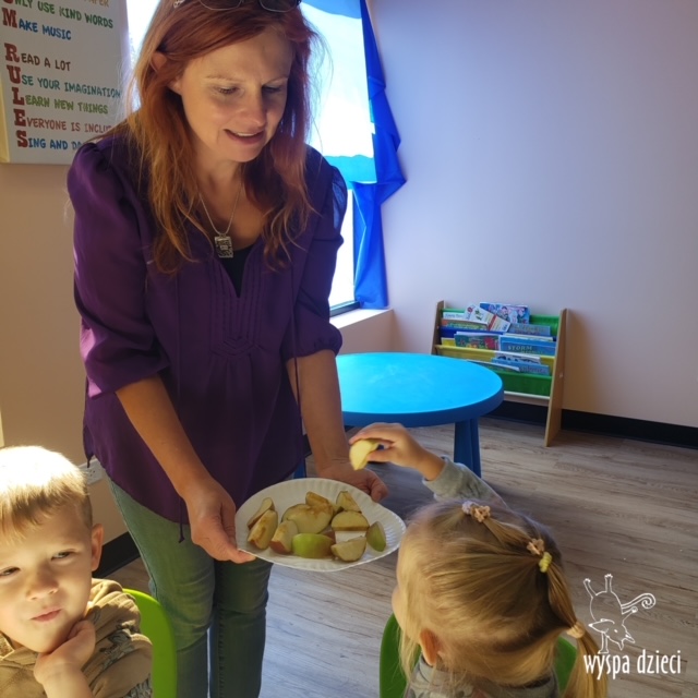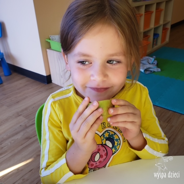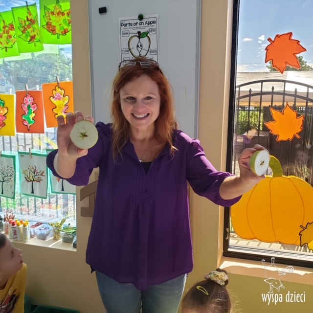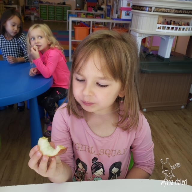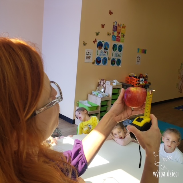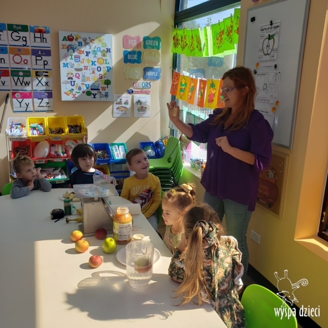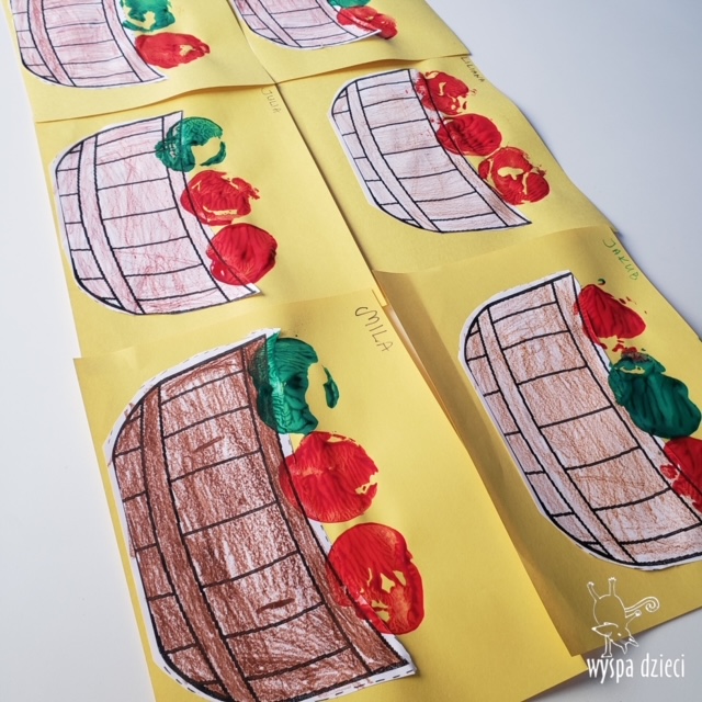 W ramach tzw. Apple investigation odbyło się liczenie jabłek i pestek, ważenie, mierzenie, turlanie, wąchanie i degustowanie jabłek. Nie zabrakło też musu z dodatkiem cynamonu, jogi w sadzie, a wybór książek o ulubionych owocach okazał się imponujący. Do ulubionych zajęć należały: projekty artystyczne, min. sensoryczne malowanie za pomocą kulek (marble art), odciskanie jablkowych połówek, karmienie Bardzo Głodnej Gąsienicy z popularnej książki Erica Carle’a, malowanie jabłoni, rymowanki oraz rozmaite gry edukacyjne.