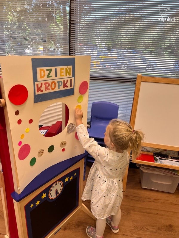 Tego dnia dzieci dostrzegały kropki tam, gdzie wcześniej nikt na nie nie zwracał uwagi. Okazało się, że kropki towarzyszą nam w codziennym życiu. Zobaczcie na nasze zdjęcia 🙂