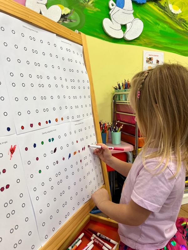 Dzień Kropki to międzynarodowe święto kreatywności, odwagi i wiary we własne możliwości, obchodzone 15 września. W naszej Wyspie dzieci River Grove celebrujemy ten dzień poznając genezę tego święta. Tego dnia również dostrzegaliśmy kropki tam, gdzie wcześniej nikt na nie nie zwracał uwagi. Okazało się, że kropki towarzyszą nam w naszym codziennym życiu. Dzieci wymyślały co może powstać z kropki, tworzyły ciekawe prace plastyczne. Wspólnie liczyliśmy, segregowaliśmy kolorowe kropki i bawiliśmy się z kropkami przy muzyce. W tym dniu było bardzo KROPKOWO!!!