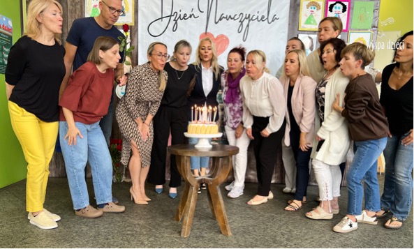Tradycyjnie jak co roku w Dzień Nauczyciela wszyscy pracownicy Wyspy Dzieci w River Grove zapalają świeczkę na torcie, a potem wspólnie razem je zdmuchujemy. Jest to wyraz naszej jedności i oby było tak jak najdłużej:) Oczywiście w tym dniu pamiętamy o naszych nauczycielach, których już nami nie ma, a byli częścią Wyspy przez wiele lat. Oni zawsze będą również w naszych sercach i pamięci.