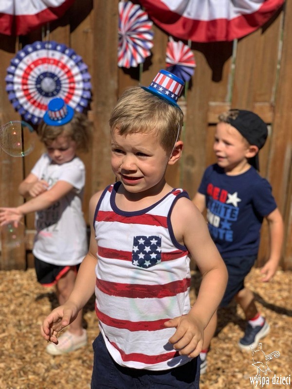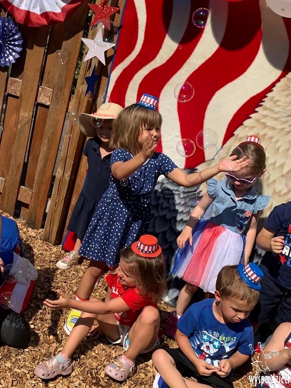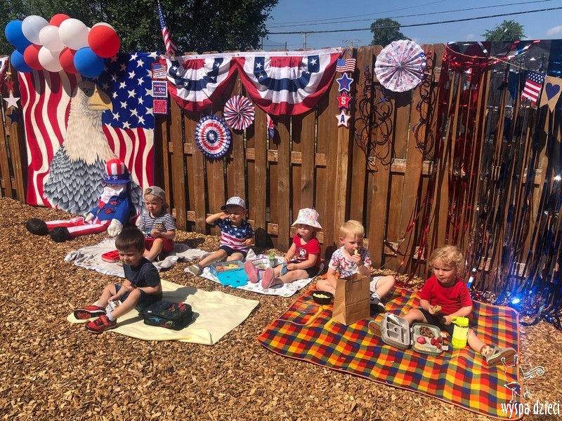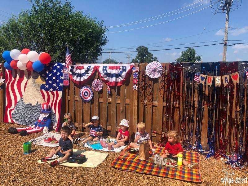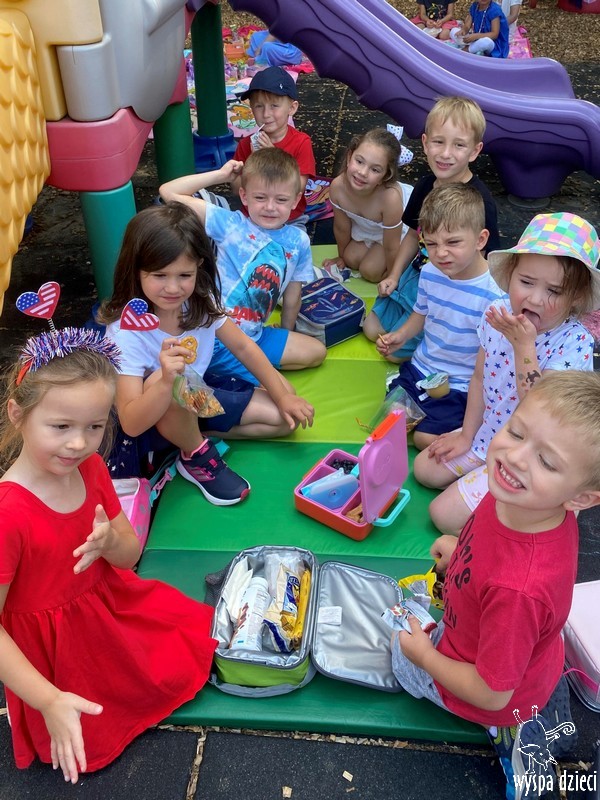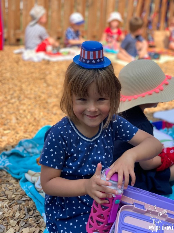 Dzień Niepodległości w Stanach Zjednoczonych to jedno z najważniejszych świąt w roku. Dlatego postanowiliśmy je również w naszym przedszkolu specjalnie celebrować. Z tej okazji zorganizowaliśmy piknik na świeżym powietrzu. Przedszkolaki ubrane były w kolory flagi amerykańskiej. Nie zabrakło różnych atrakcji, pysznego jedzonka i wesołej zabawy.