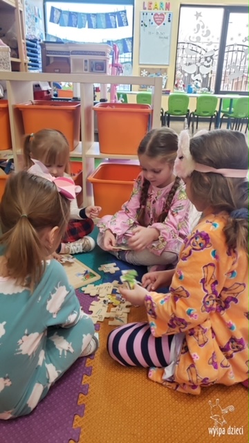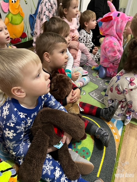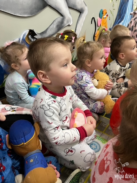 Nadeszły mroźne dni … a cóż lepszego moze być w mroźny, zimowy dzień, niż cieplutka piżamka? W piątek dzieci mogły założyć swoje ulubione piżamki, a także przynieść swoje przytulanki. Były bajki, chrupki i dużooo zabawy! Lubimy takie dni;)