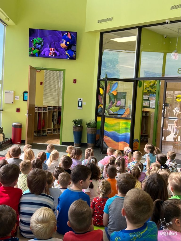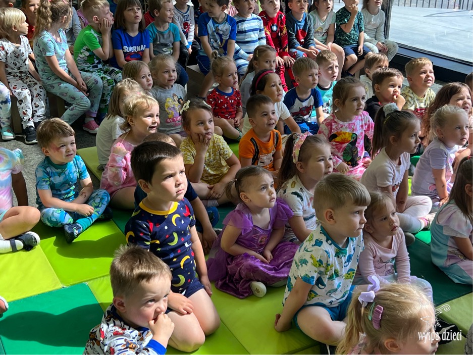 Dzisiaj, czyli w czwartek 9 czerwca w Wyspie Dzieci River Grove … DZIEN PIZAMOWY!!!!! Wszystkie dzieci mogly przyjsc do przedszkola w swoich ulubionych pizamkach. Byl tez dzisiaj wyjatkowy dzien, bo moblismy wszyscy wspolnie ogladnac bajke???. Zobaczcie na te usmiechniete buziaki !!!