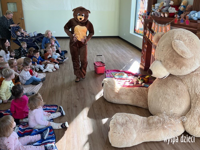 Dzień Pluszowego Misia na Wyspie Dzieci w Algonquin był dniem pełnym uśmiechu i wspaniałej zabawy. Dzieci razem z misiem wybrały się na piknik na którym maluszki zajadały pyszne misiowe smakołyki, piły misiowy soczek , a póżniej wszyscy razem bawili się w znaną wszystkim zabawę “Stary Niedźwiedź mocno śpi”;) Później był czas przytulania się do mięciutkiego przyjaciela wszystkich dzieci, bo kto z nas nie kocha pluszowego misia? On przyjacielem wszystkich dzieci jest!