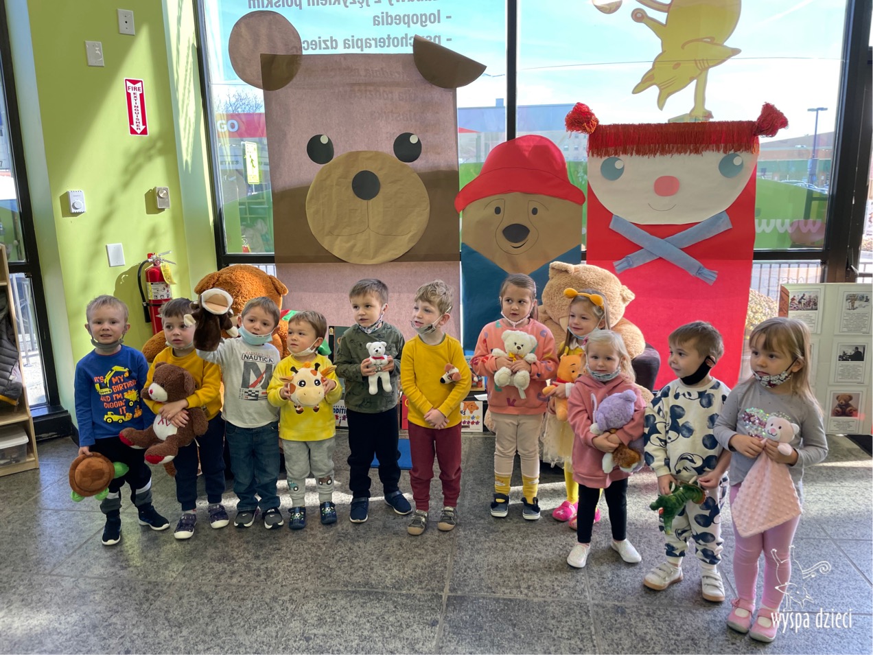 W Wyspie Dzieci – River Grove, w tym roku obchodzimy go troszkę szybciej. Ponieważ w następnym tygodniu będziemy świętować Thanksgiving, dlatego postanowiliśmy ze Pluszowy Miś odwiedzi naszych przedszkolakow 19 listopada. Jak co roku Święto Pluszowego Misia jest obchodzone bardzo szczególnie. W tym dniu wszystkie przedszkolaki mogly przyprowadzic do naszej Wyspy swoje pluszowe Misiaczki. Kazda mlodsza grupa została zaproszona do wspólnej zabawy w misiowej krainie, ktora powstala w glownym korytarzu naszego przedszkola. Dzieci poznaly historię święta, wysluchaly bajki o pluszowym niedzwiadku, bawiły się przy piosenkach, a także uczestniczyły w roznych zabawach .