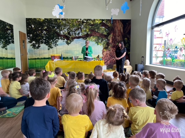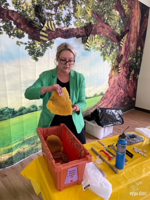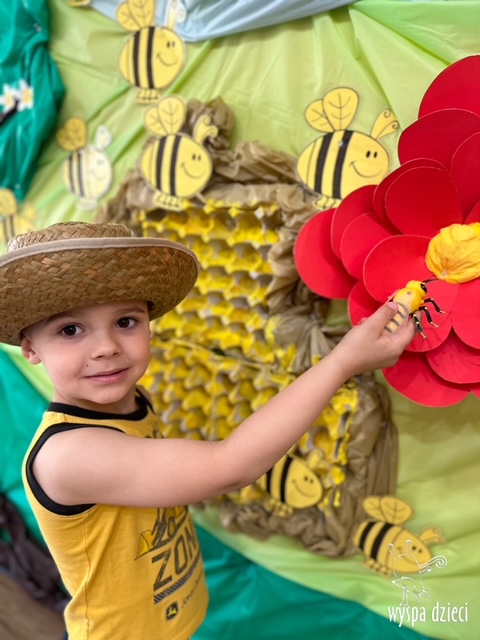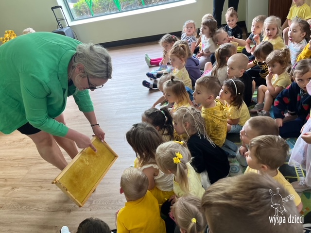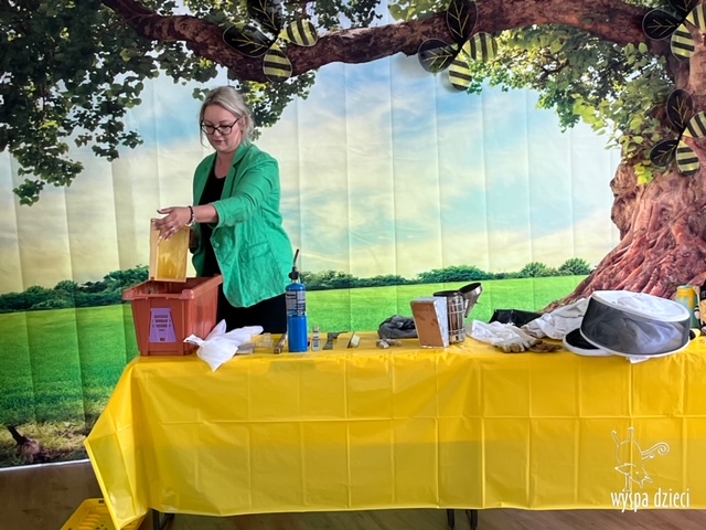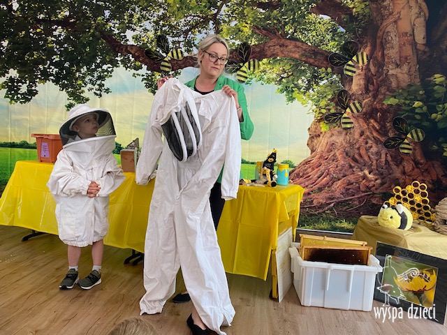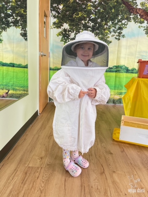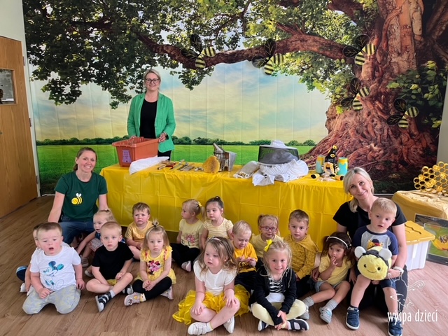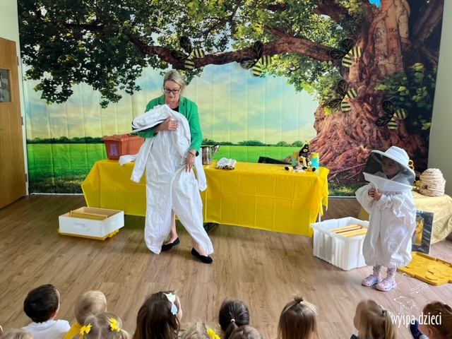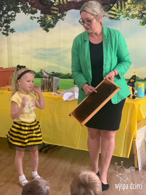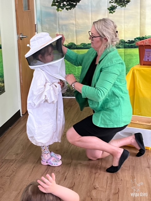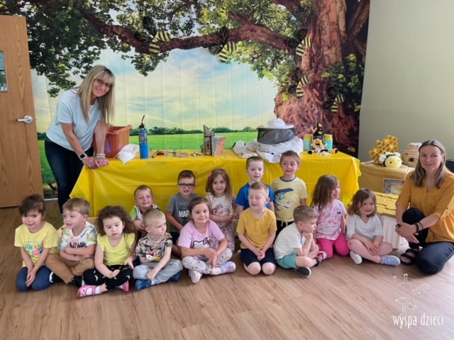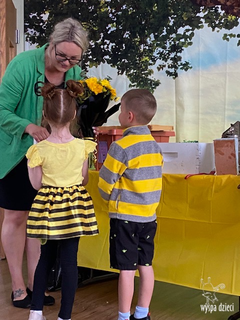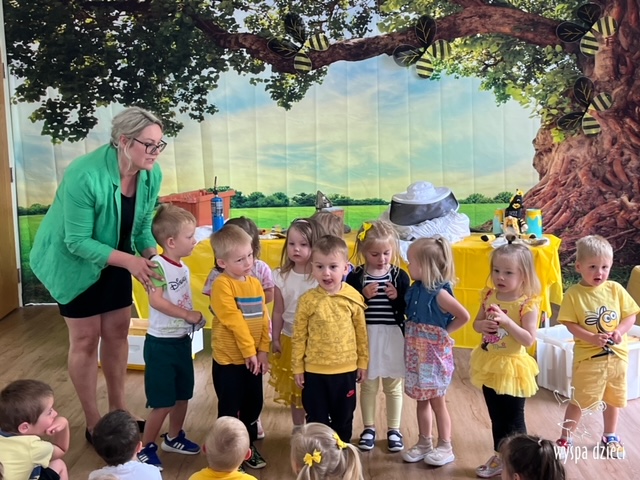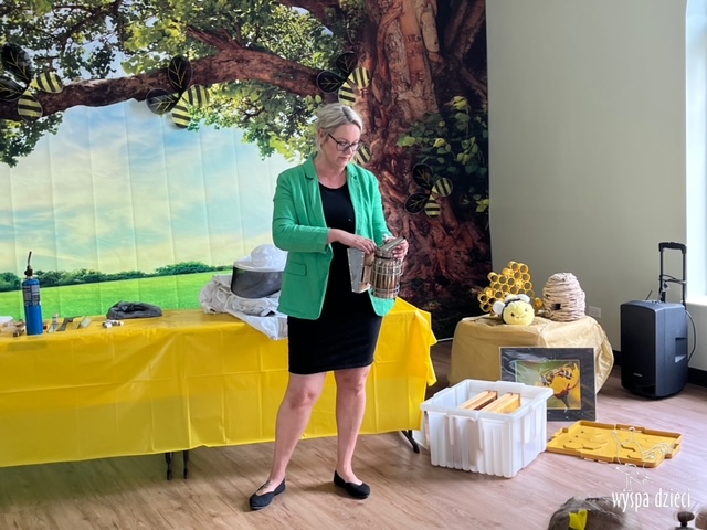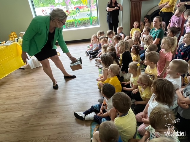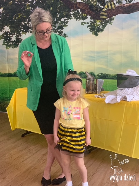 20 maja obchodzony jest Międzynarodowy Dzień Pszczoły. Przedszkolaki na Wyspie Dzieci w Algonquin celebrowały to święto w bardzo ciekawy sposób. W ten dzień nasi milusińscy byli ubrani w kolorach pszczółki – na żółto i czarno. Dzieci przyjęły także bardzo ciekawego gościa – miłośniczkę pszczelarstwa – Panią Joannę Krzepkowski. Pani Asia na co dzień zajmuje się sprzedażą domów, a w każdej wolnej chwili dogląda pszczółek w swoich ulach. Pani Asia opowiedziała nam jak zaczęła się jej ciekawa pasja, a także przedstawiła dzieciom jak wygląda proces powstawania miodu. Dzieci dowiedziały się między innymi jak ważna jest królowa w ulu, a także ile miodu może wytworzyć jedna pszczółka podczas swojego życia. Pani Asia pokazała dzieciom jak wygląda strój w którym można bezpiecznie opiekować się ulem. Dziękujemy Pani Asi za wspaniałą lekcję dla naszych przedszkolaków.