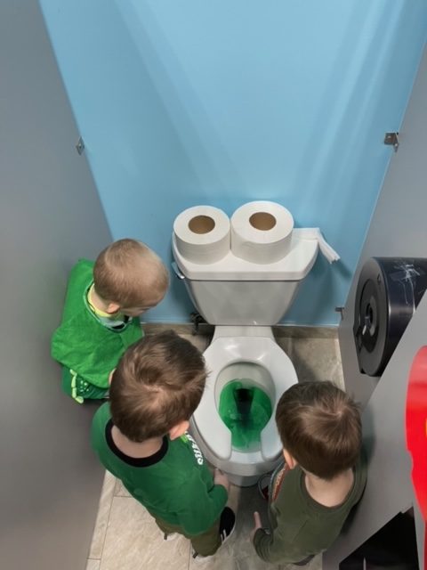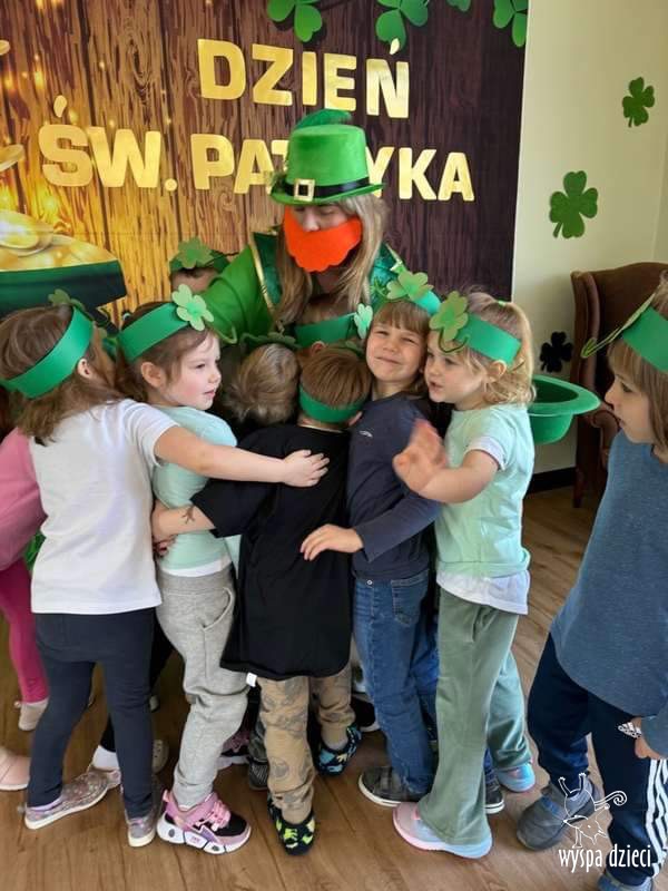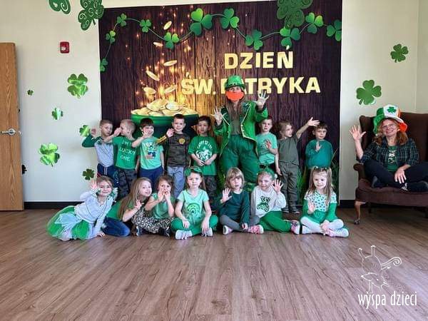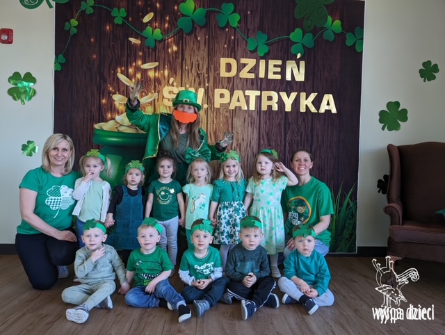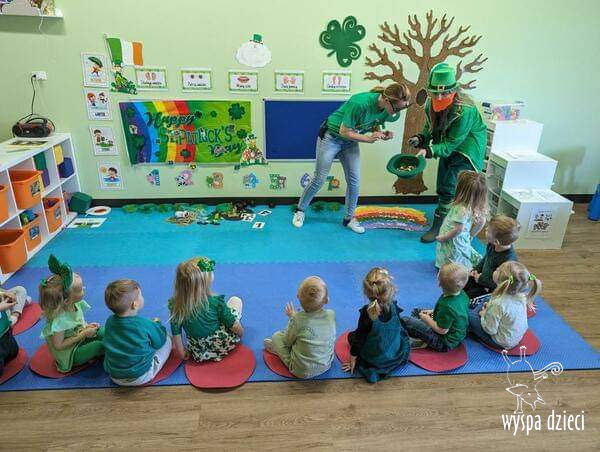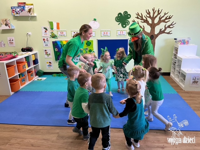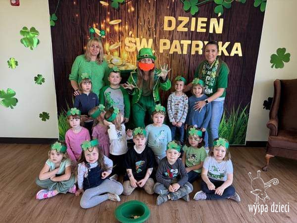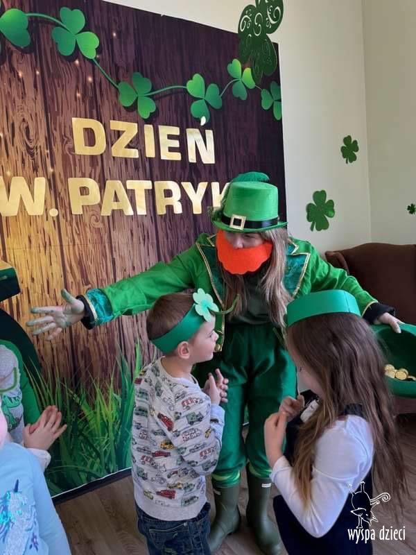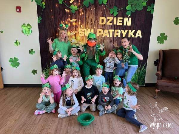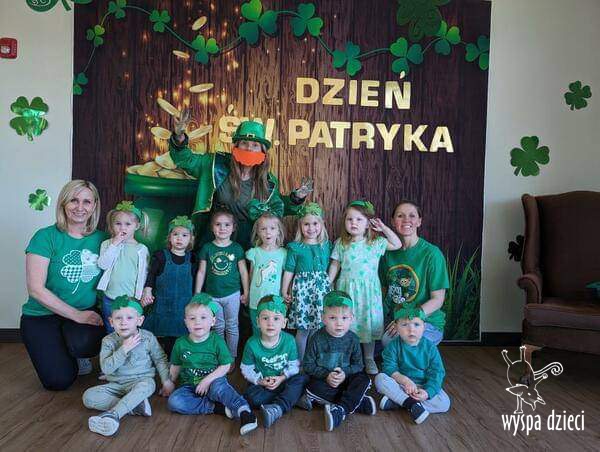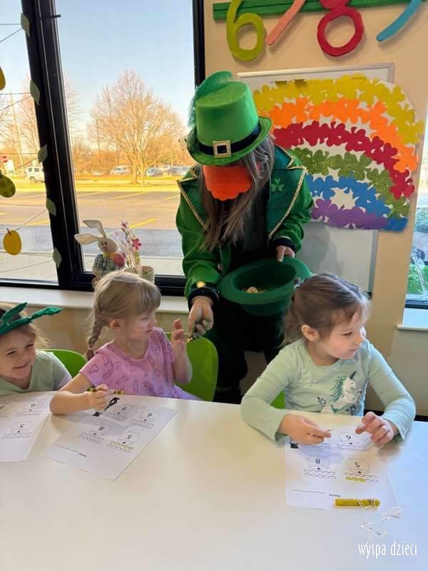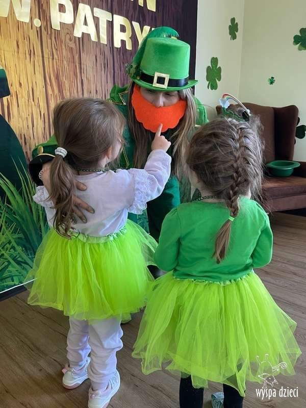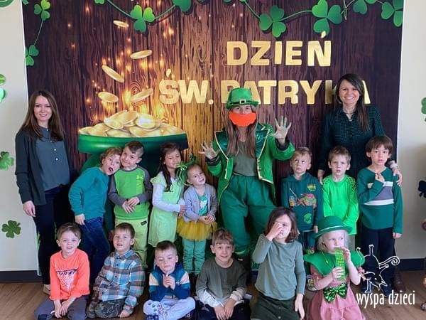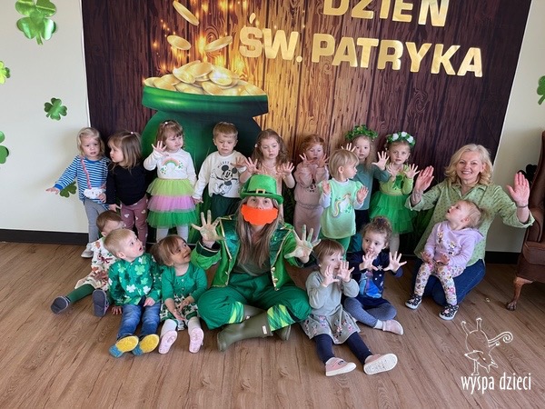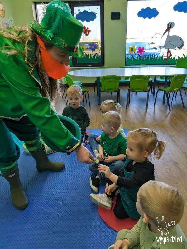 Na Wyspie Dzieci w Algonquin pojawił się niespodziewany gość- Leprechaun. Na początku oczywiście złośliwie narobił balaganu i wszędzie zostawił ślady swoich małych zielonych stópek. Było szukanie złotych monet, łapanie tęczy, śpiewanie piosenek i mnóstwo dobrej zabawy. Niestety, nie udało nam się złapać zielonego ludzika i skarb wciąż pozostaje ukryty na końcu tęczy…
