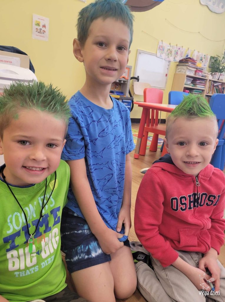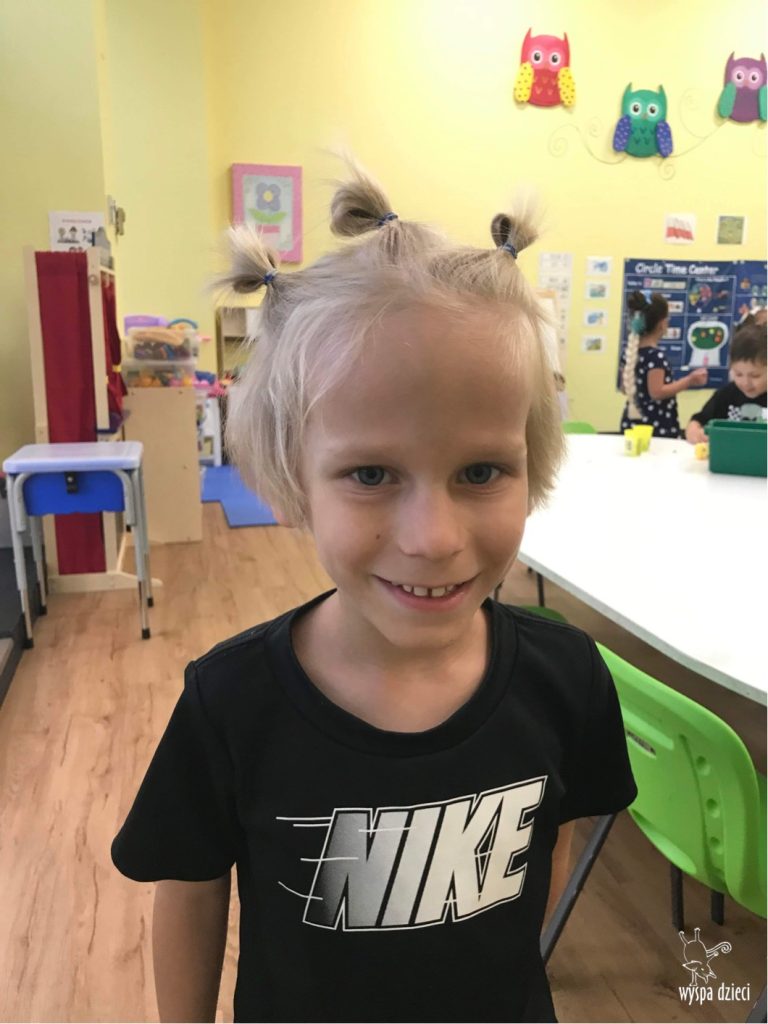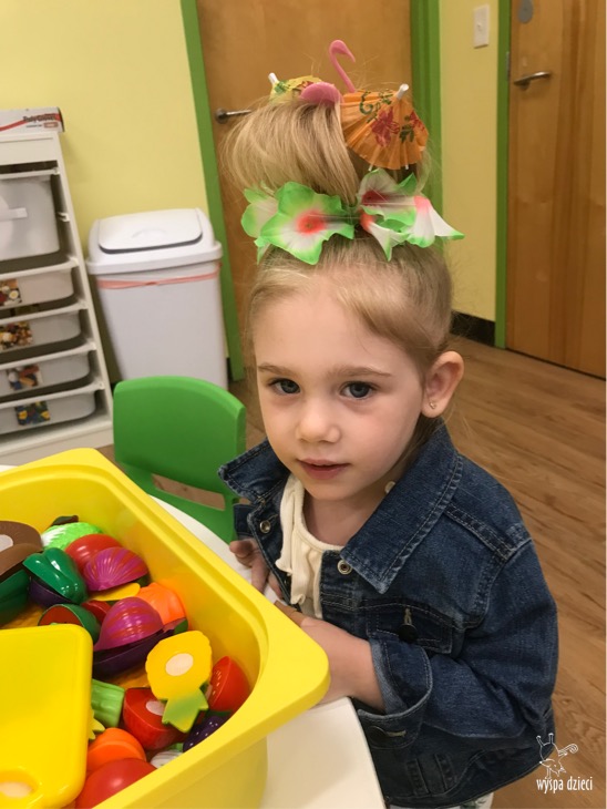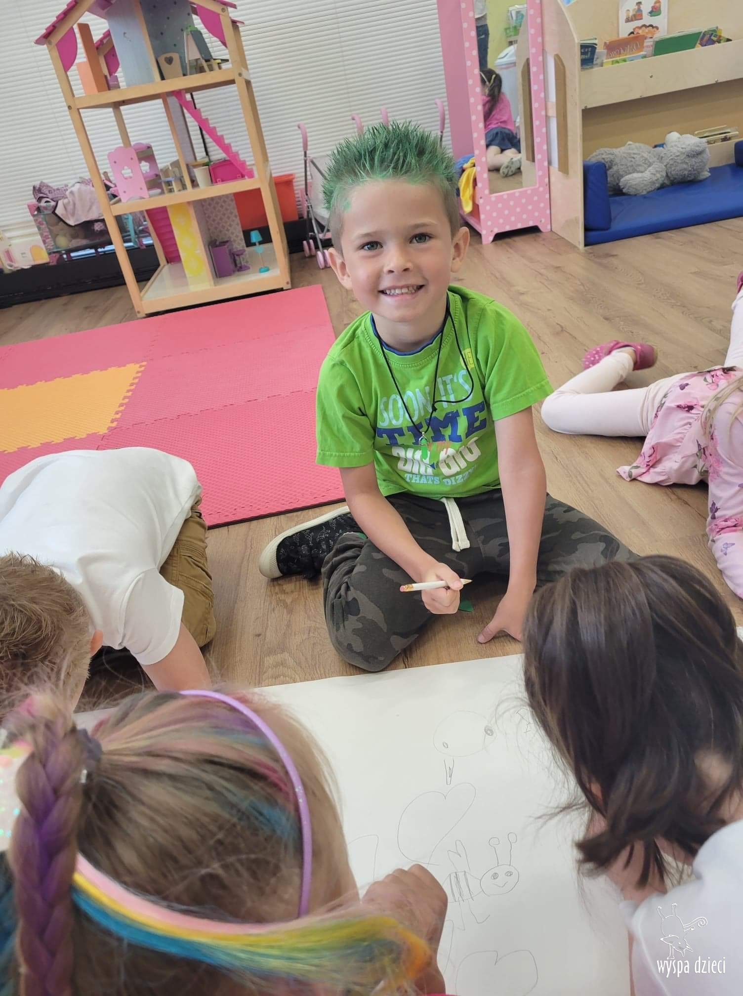 W poniedzialek 6 czerwca 2022 roku w Wyspie Dzieci River Grove obchodzilismy DZIEN  SZALONYCH FRYZUR . Kreatywność naszych przedszkolakow  zaskoczyła nas wszystkich. Na ich głowach królowały fantazyjne i niespotykane na co dzień uczesania. Były to różnego rodzaju peruki, irokezy kucyki, doczepiane włosy i warkocze. Eksperymentowanie z fryzurami bardzo się wszystkim podobało. Aż żal, że ten zwariowany dzień tak szybko dobiegł końca… Ale za to jutro czeka nas dzien na opak ???