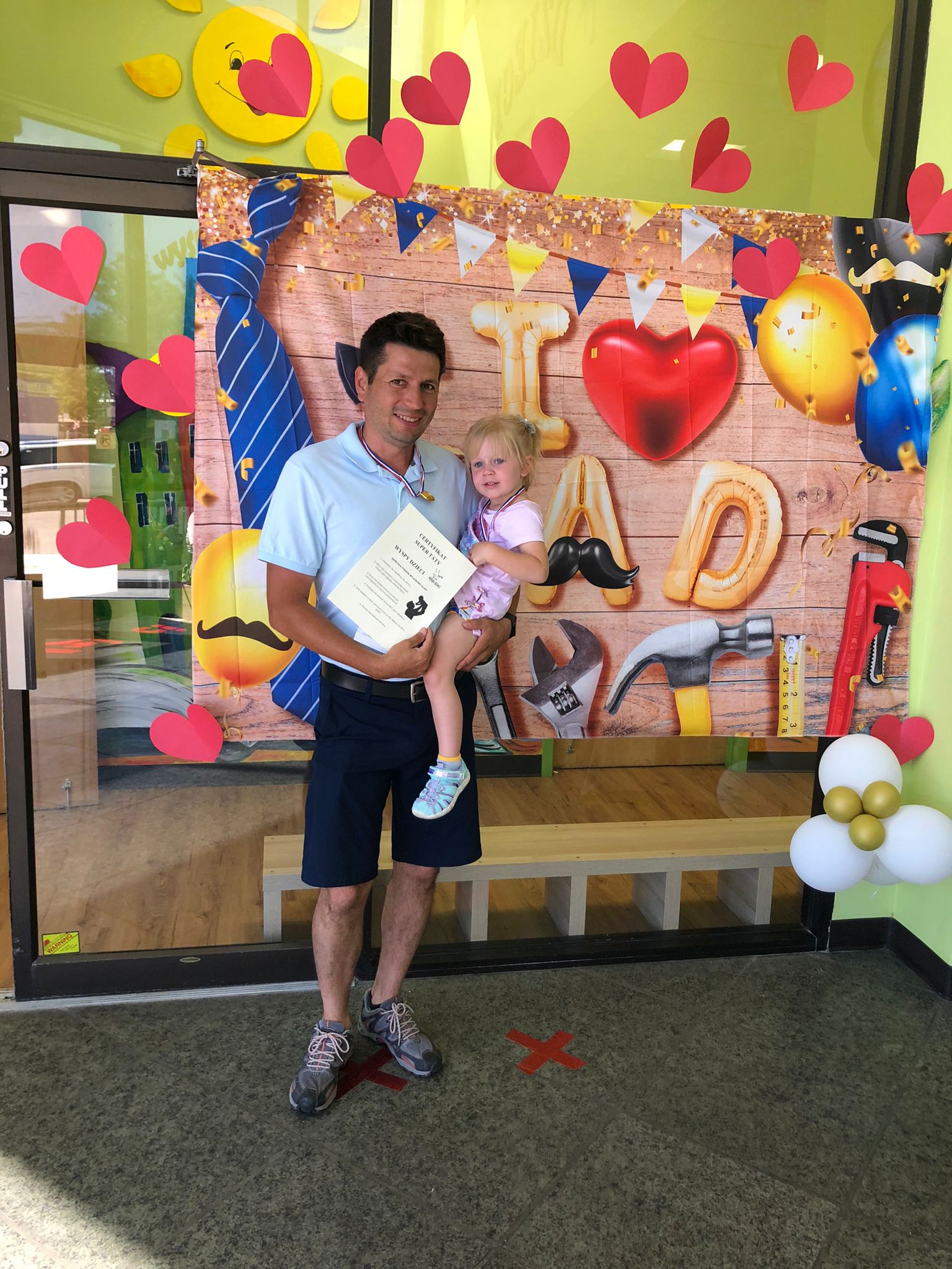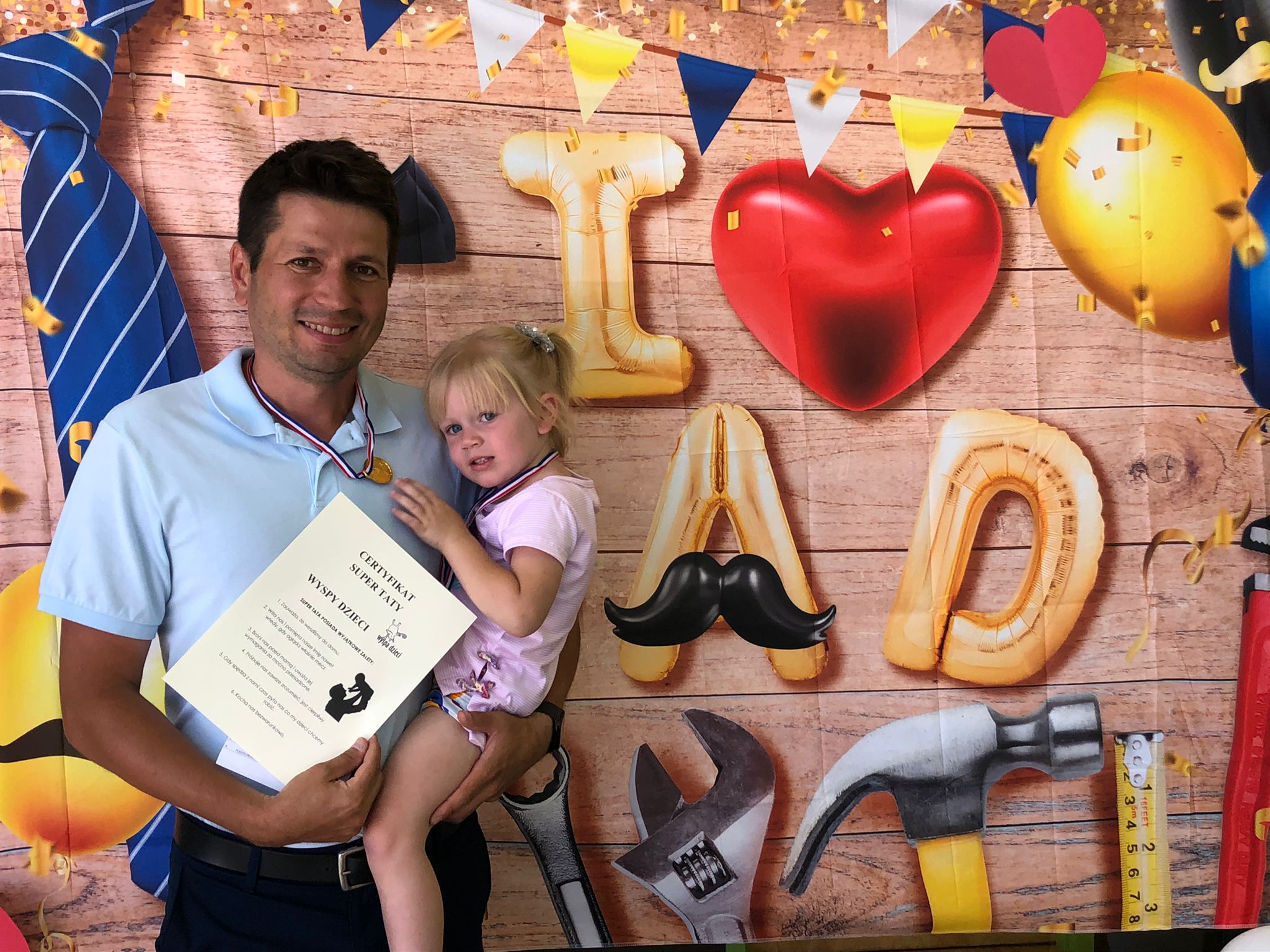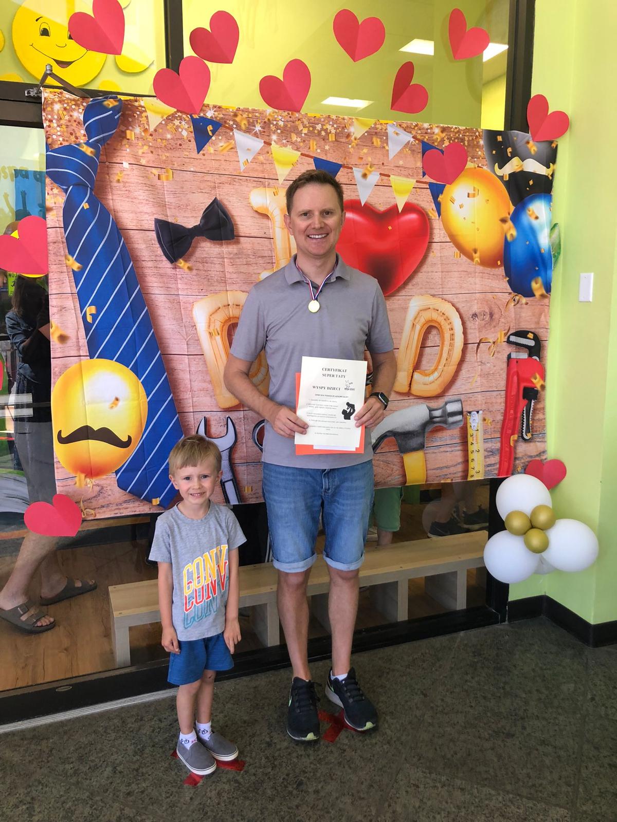23 czerwca 2022 roku w Wyspie Dzieci River Grove celebrowalismy Dzień Taty. Tatusiowie otrzymali wcześniej zaproszenie. Nie spodziewaliśmy się, ze tak licznie przybedą z czego się bardzo cieszymy. Nauczyciele przygotowali dla nich niespodzianki. Otrzymali zadania specjalne Super Taty które musieli zrealizować aby otrzymać na koniec dyplom i Medal Super Taty. A zadaniami specjalnymi były : biceps – podnoszenie dziecka, mocne uda – noszenie dziecka, piaskowa wyobraźnia – piaskownica, sprawna stopa – piłka nożna, dobre oko – rzucanie do celu, siła rak – przeciąganie liny, czy znasz kolory?, wycinanki z tata, krawat czy „mucha”?, „w ślad za tata” , bajkolandia, karmienie taty, owocowa niespodzianka, cytrynowy zawrót głowy, bob the builder, łami – główka, plastelinowo.