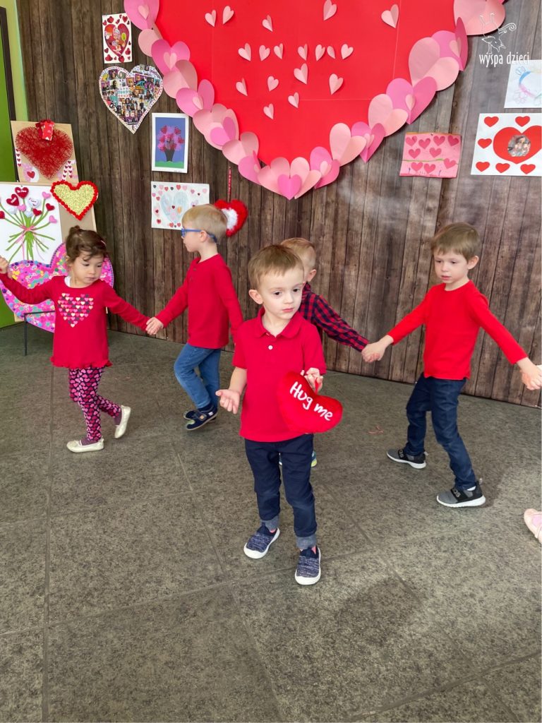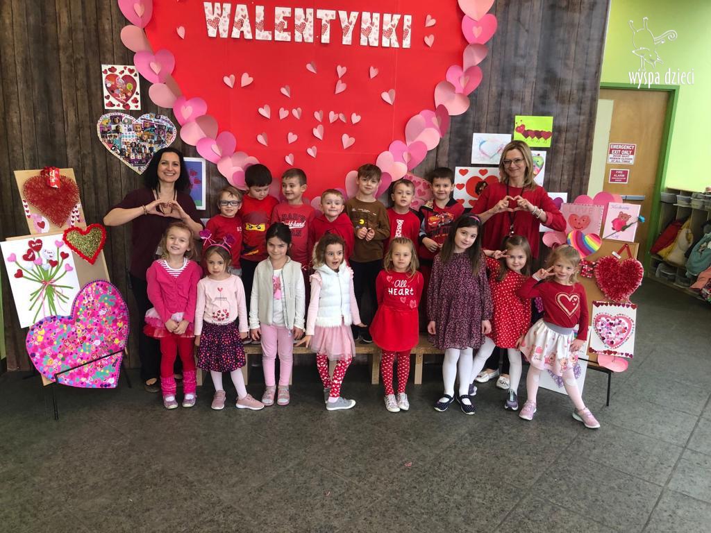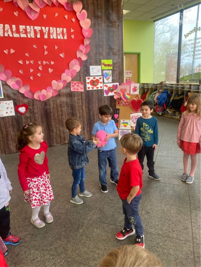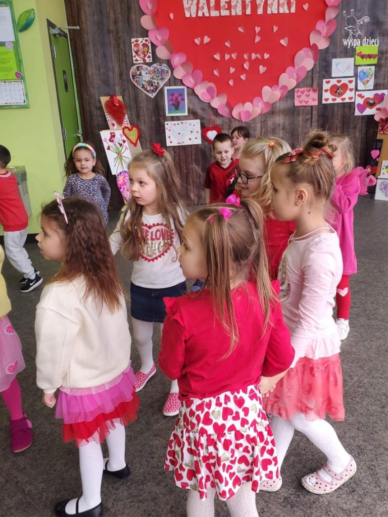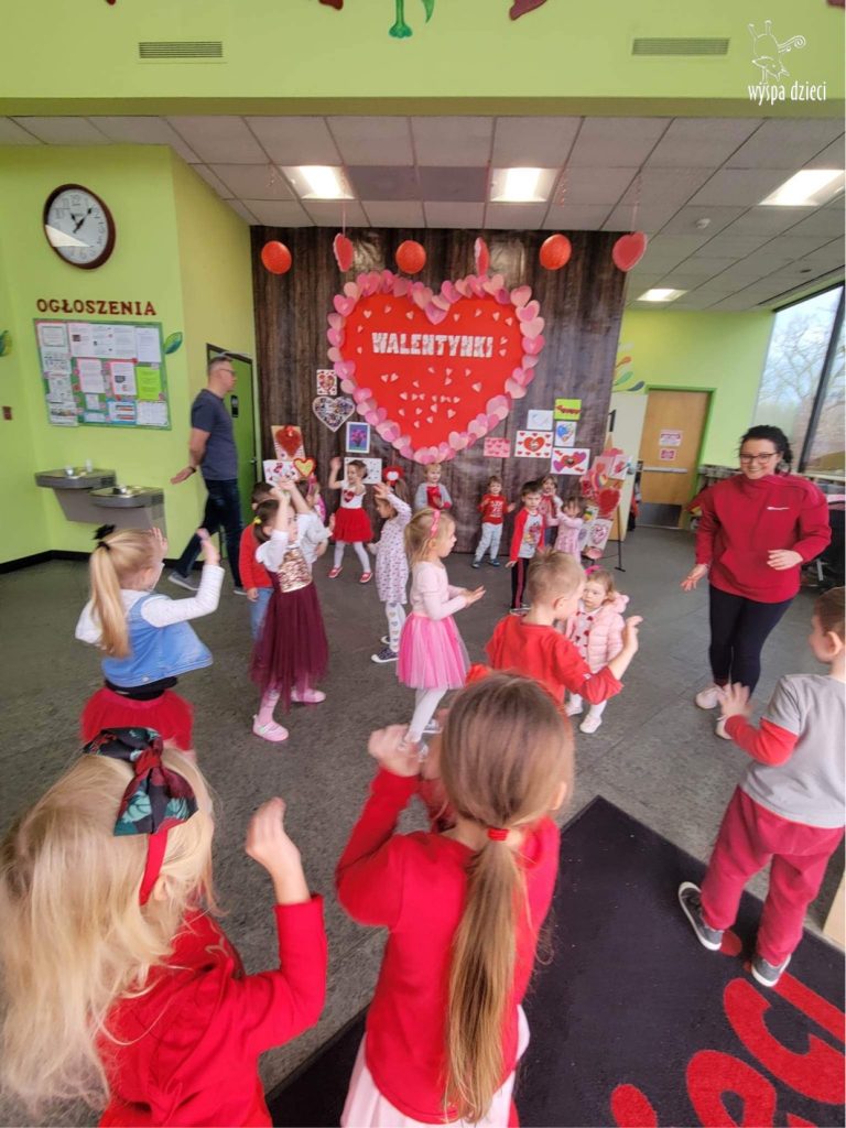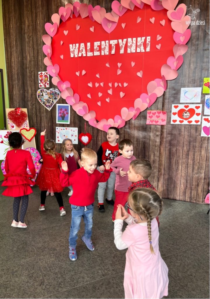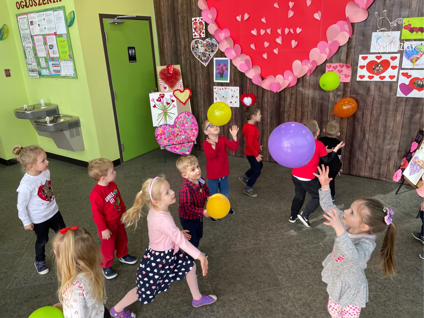 Na 14 lutego nasi milusińscy czekali z niecierpliwością. Jak co roku w ten dzień  wszyscy przyszli  ubrani w kolorach czerwonych lub różowych z usmiechami na twarzy.Każda  grupa bawiła  sie pod okiem swoich nauczycieli. Przedszkolaki zapoznały się z historią św. Walentego i rozwiązywały zagadki. Ponadto na uczestników zabawy czekało mnóstwo atrakcji m.in. tańce z balonem, zabawy muzyczno – ruchowe, konkursy, tor przeszkód . Wszyscy bawili się doskonale 🙂 Następnie w klasach dzieci przekazały swoim kolegom i koleżankom upominki Walentyntynkowe, które przygotowali w domu.