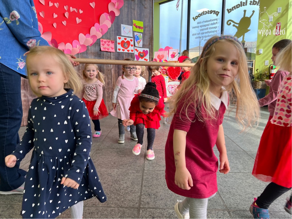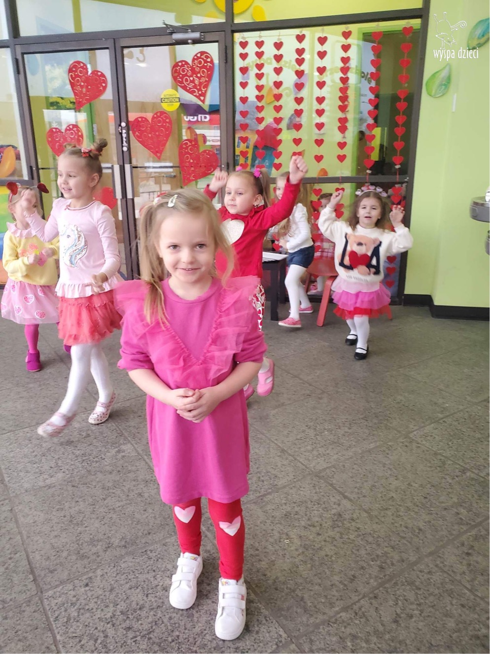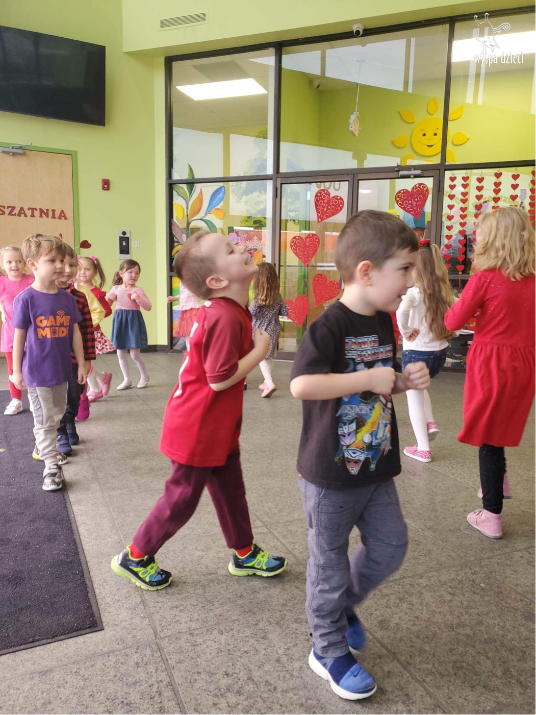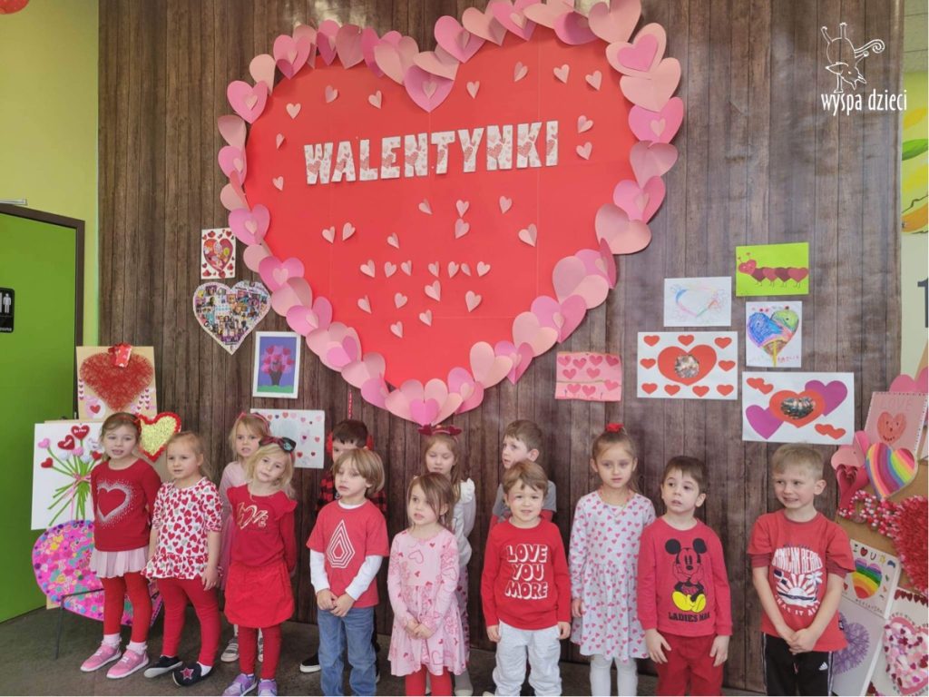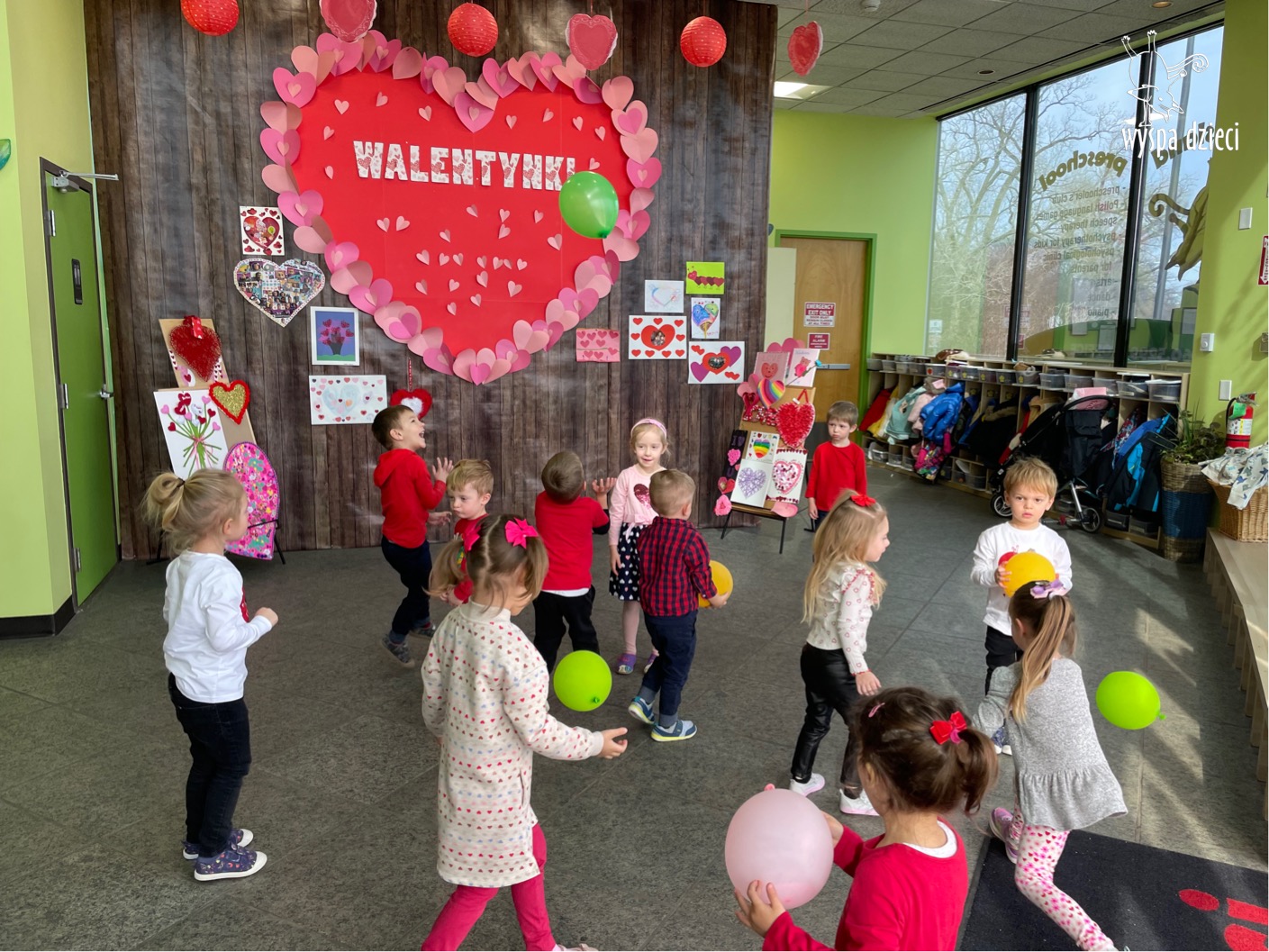 Na 14 lutego nasi milusińscy czekali z niecierpliwością. Jak co roku w ten dzień  wszyscy przyszli  ubrani w kolorach czerwonych lub różowych z usmiechami na twarzy.Każda  grupa bawiła  sie pod okiem swoich nauczycieli. Przedszkolaki zapoznały się z historią św. Walentego i rozwiązywały zagadki. Ponadto na uczestników zabawy czekało mnóstwo atrakcji m.in. tańce z balonem, zabawy muzyczno – ruchowe, konkursy, tor przeszkód . Wszyscy bawili się doskonale 🙂 Następnie w klasach dzieci przekazały swoim kolegom i koleżankom upominki Walentyntynkowe, które przygotowali w domu.
