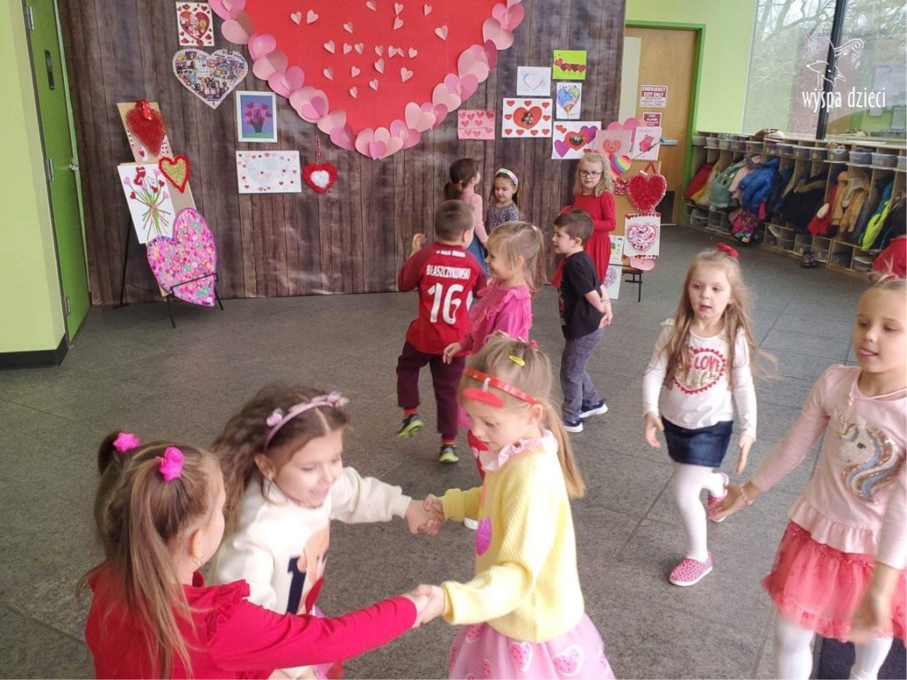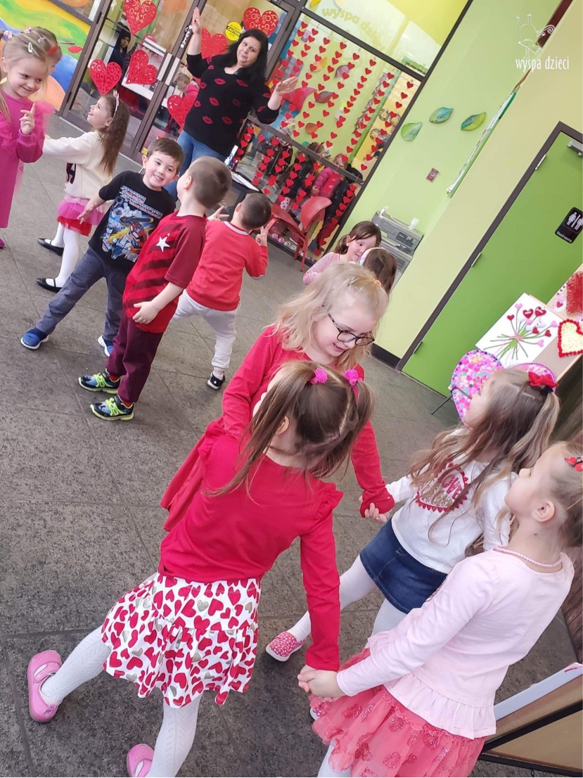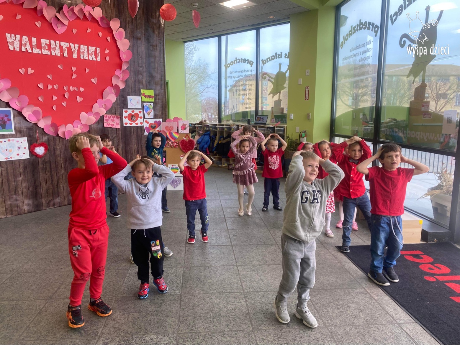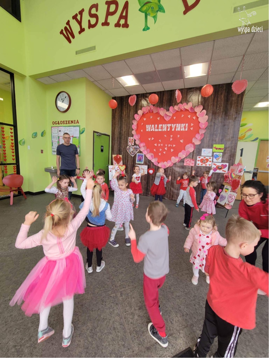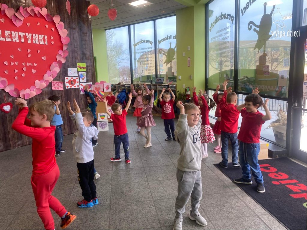 Na 14 lutego nasi milusińscy czekali z niecierpliwością. Jak co roku w ten dzień  wszyscy przyszli  ubrani w kolorach czerwonych lub różowych z usmiechami na twarzy.Każda  grupa bawiła  sie pod okiem swoich nauczycieli. Przedszkolaki zapoznały się z historią św. Walentego i rozwiązywały zagadki. Ponadto na uczestników zabawy czekało mnóstwo atrakcji m.in. tańce z balonem, zabawy muzyczno – ruchowe, konkursy, tor przeszkód . Wszyscy bawili się doskonale 🙂 Następnie w klasach dzieci przekazały swoim kolegom i koleżankom upominki Walentyntynkowe, które przygotowali w domu.