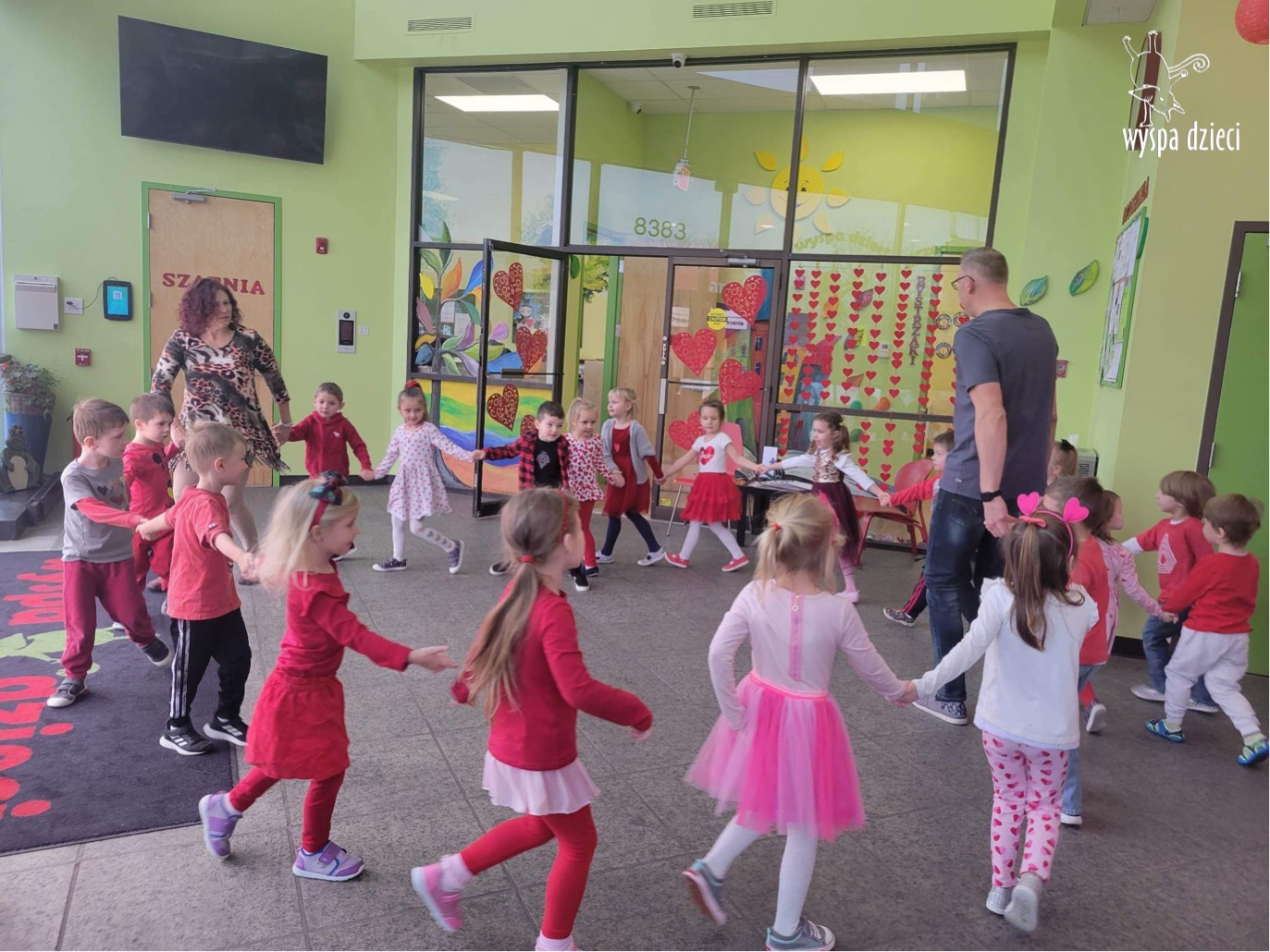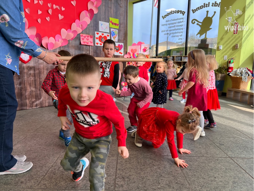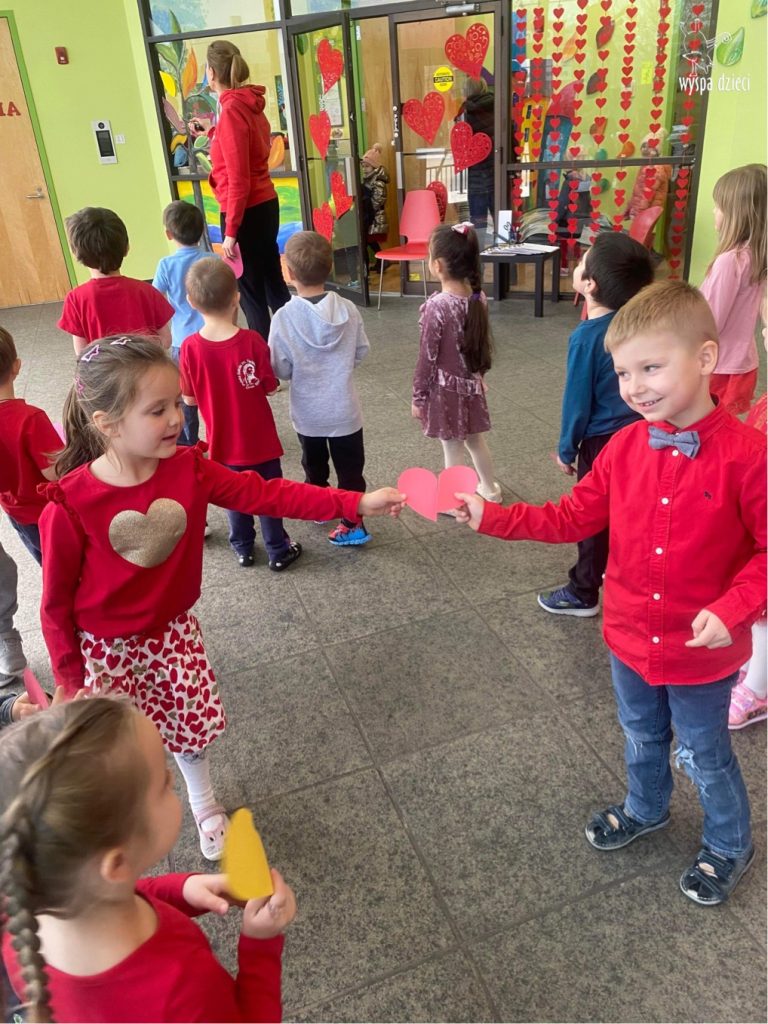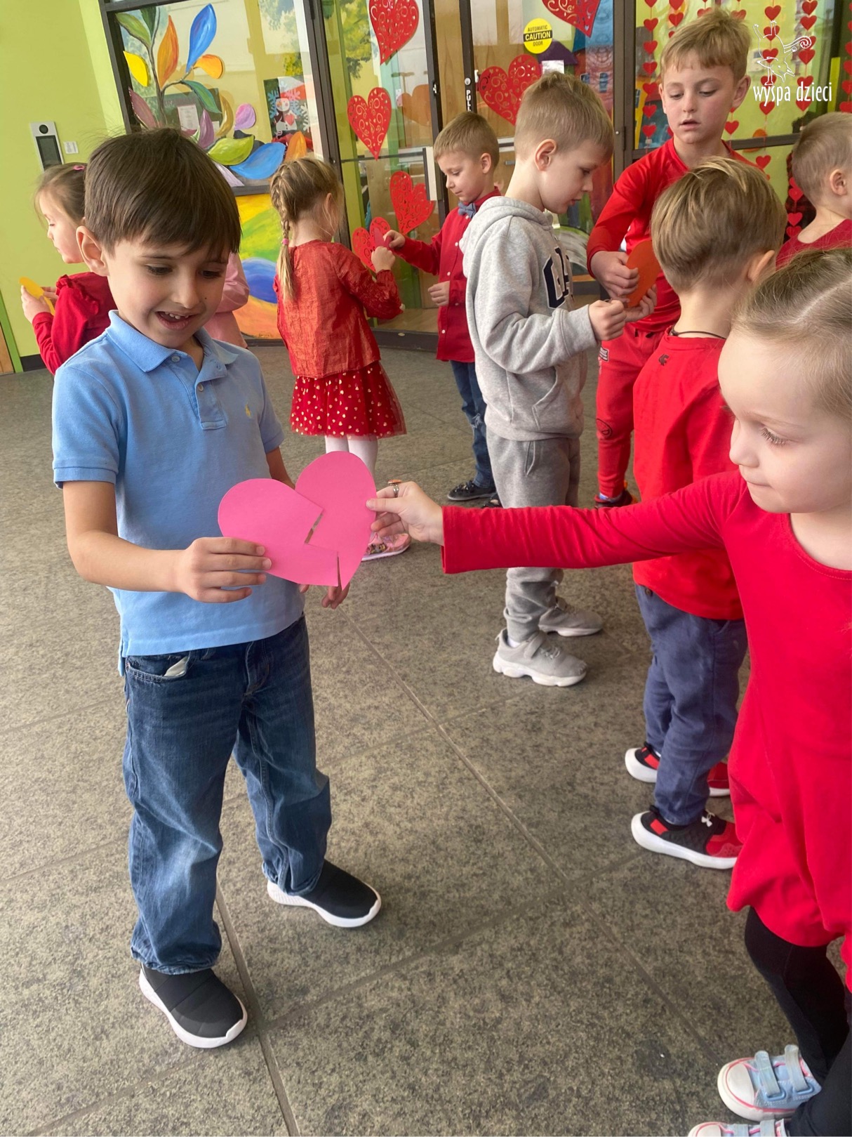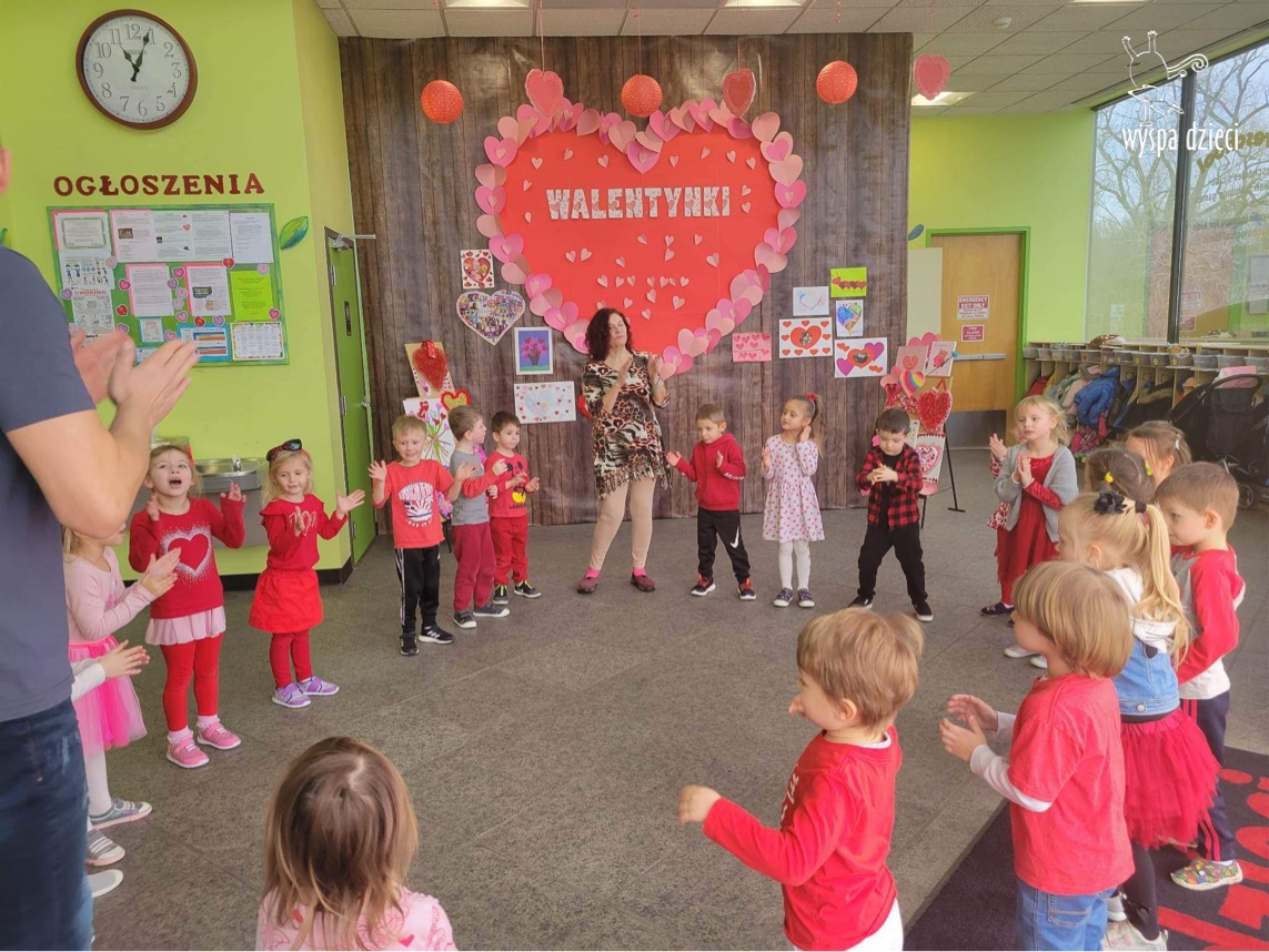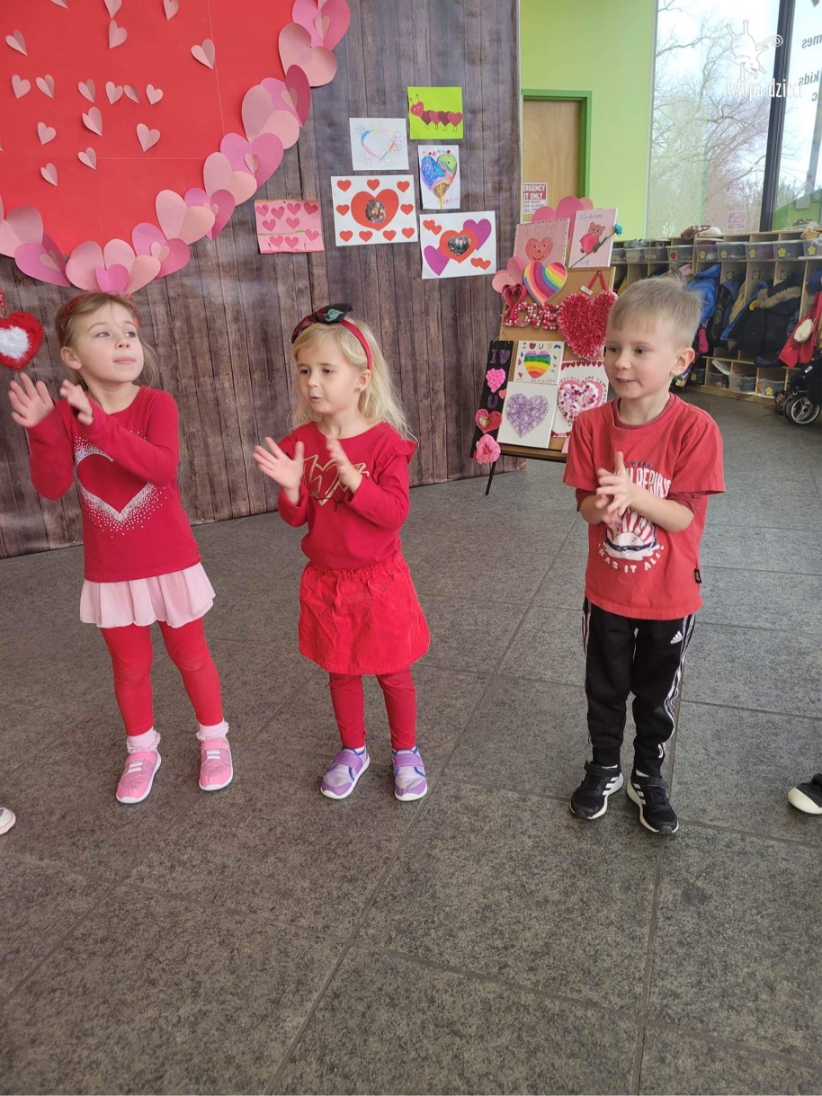 Na 14 lutego nasi milusińscy czekali z niecierpliwością. Jak co roku w ten dzień  wszyscy przyszli  ubrani w kolorach czerwonych lub różowych z usmiechami na twarzy.Każda  grupa bawiła  sie pod okiem swoich nauczycieli. Przedszkolaki zapoznały się z historią św. Walentego i rozwiązywały zagadki. Ponadto na uczestników zabawy czekało mnóstwo atrakcji m.in. tańce z balonem, zabawy muzyczno – ruchowe, konkursy, tor przeszkód . Wszyscy bawili się doskonale 🙂 Następnie w klasach dzieci przekazały swoim kolegom i koleżankom upominki Walentyntynkowe, które przygotowali w domu.