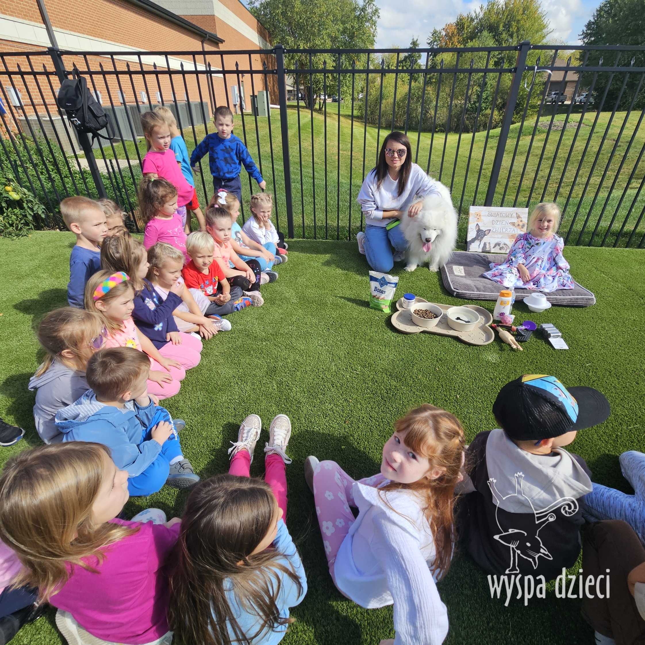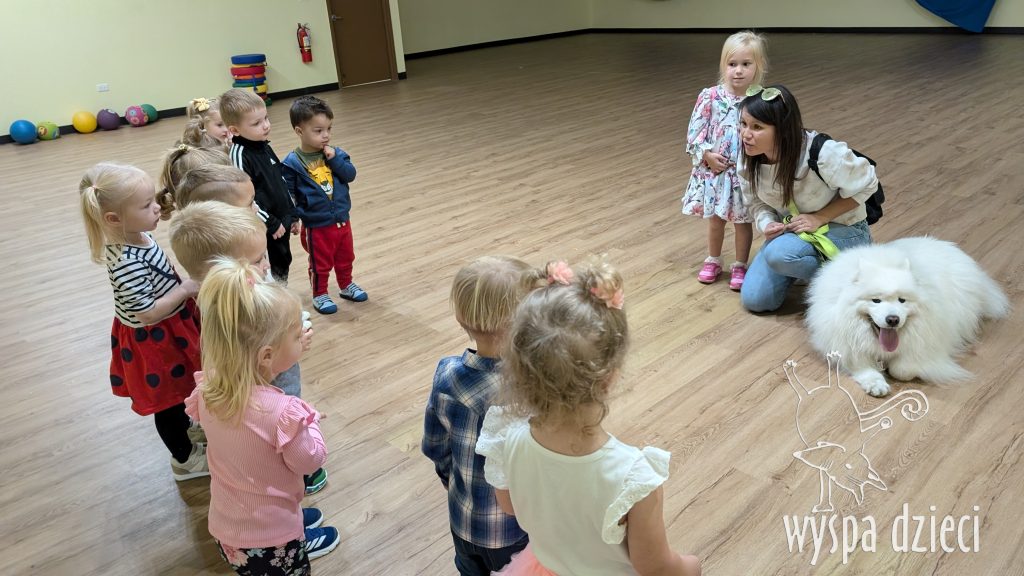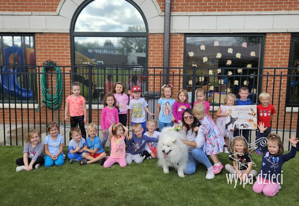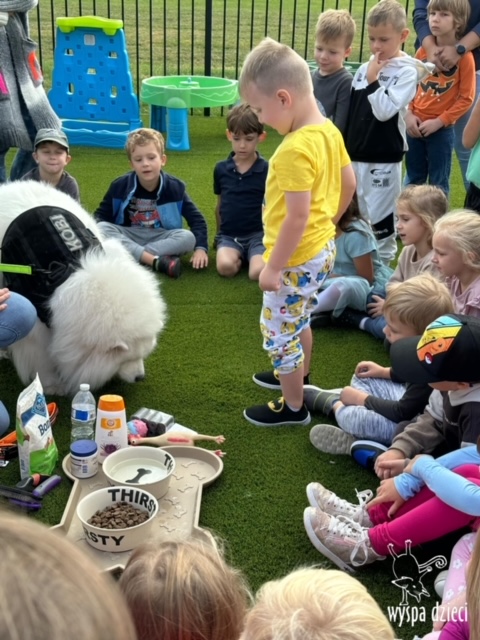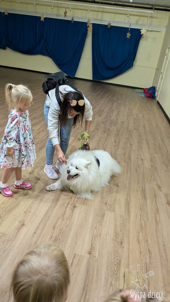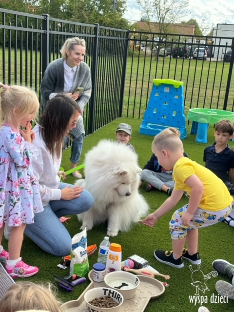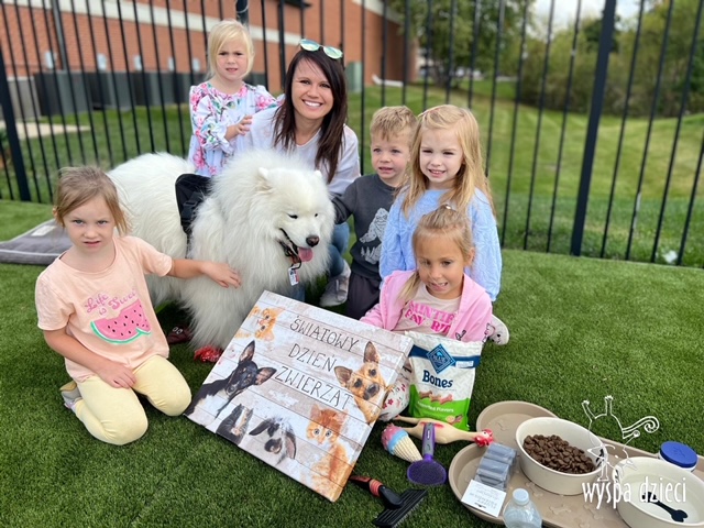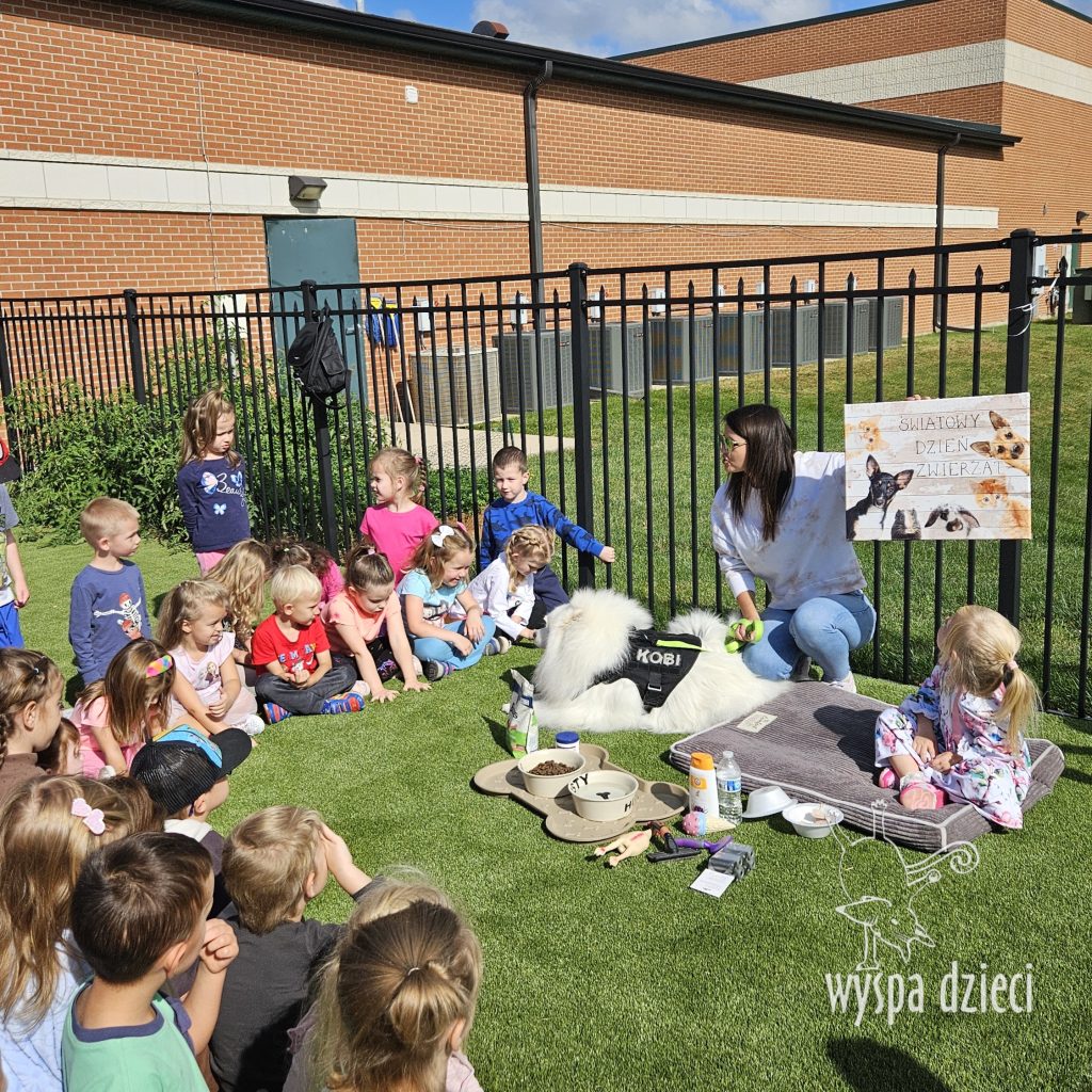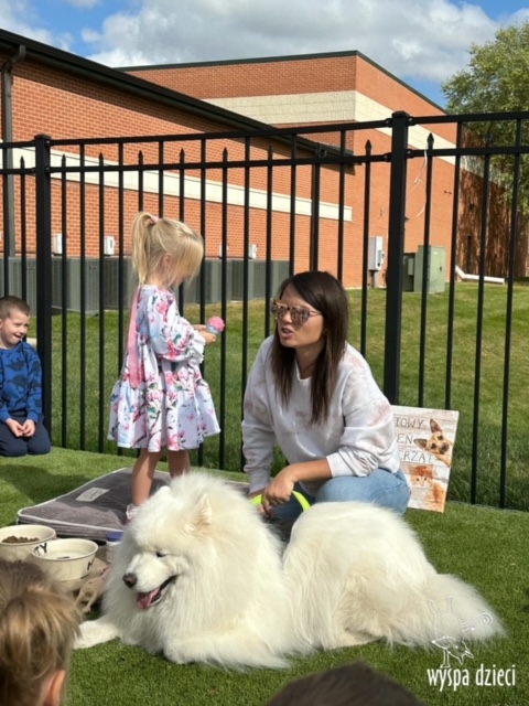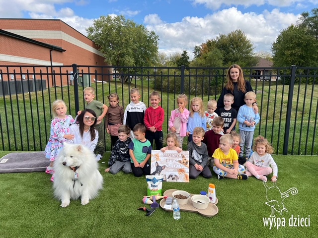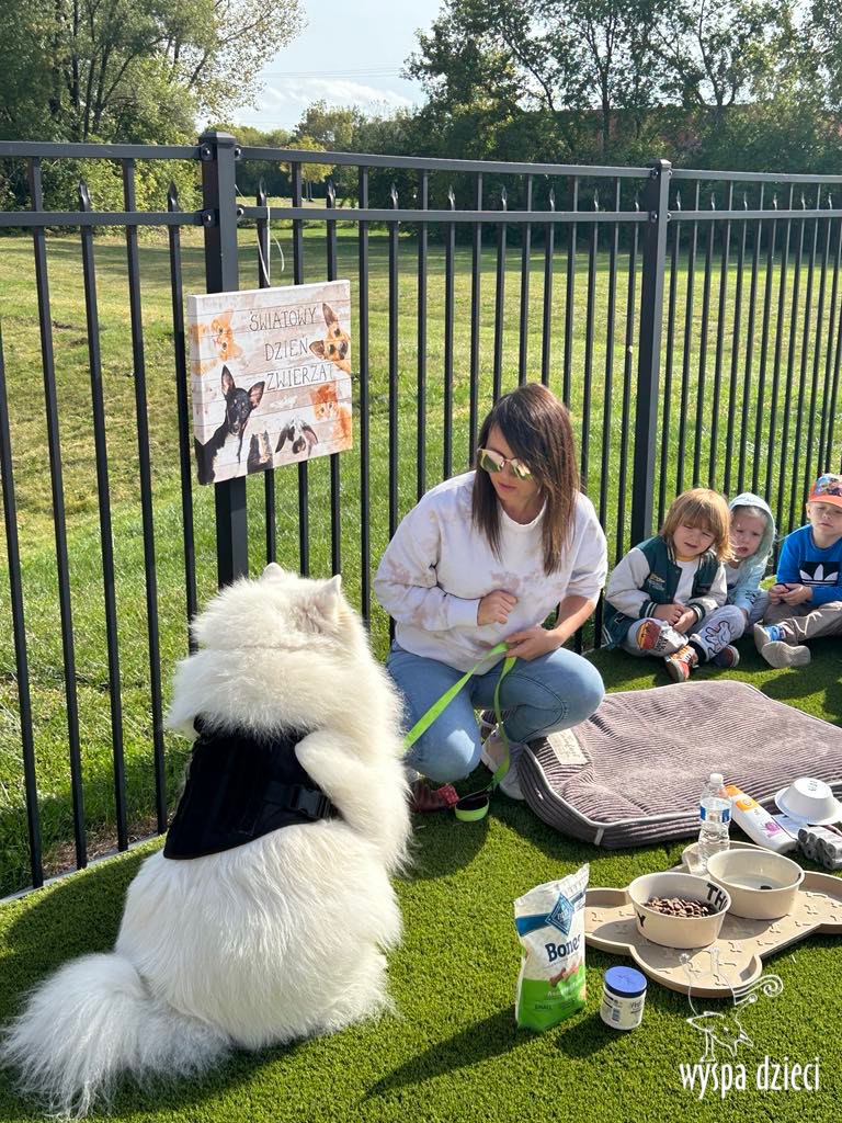 4 października na całym świecie obchodzony jest Światowy Dzień Zwierząt. Obchody tego dnia mają na celu zmienić zachowanie ludzi do zwierząt i uświadamianie im, że zwierzę to istota żywa, a nie rzecz i ma swoje prawa. W naszym przedszkolu uświadamiamy to maluchom od najmłodszych lat. Z okazji tego wyjątkowego dnia przedszkolaków odwiedził piesek jednej z nauczycielek, a był to samoyed – Kobi. Dzieci dowiedziały się jak powinno opiekować się pieskiem, jak o niego dbać. Maluchy miały okazję zobaczyć jakie akcesoria potrzebne są gdy posiadamy pieska, a także poznały jego zwyczaje żywieniowe. Dzieci dowiedziały się, że posiadanie czworonoga to nie tylko przyjemność, ale też duża odpowiedzialność. Piesek Kobi pokazał też dla maluchów kilka sztuczek: siadaj, daj łapę, daj piątkę, daj głos. Dzieci miały okazję poczesać Kobiego, a także dać mu pyszne kostki.