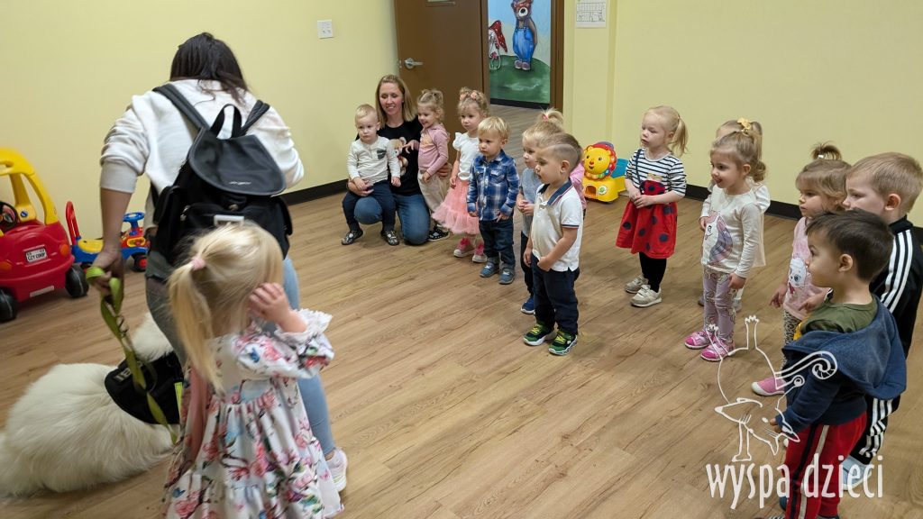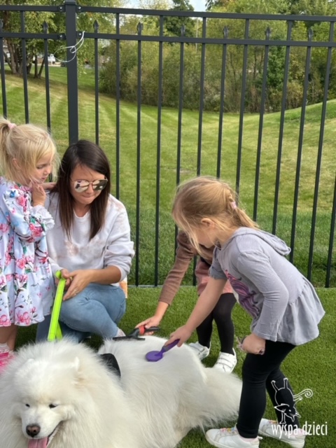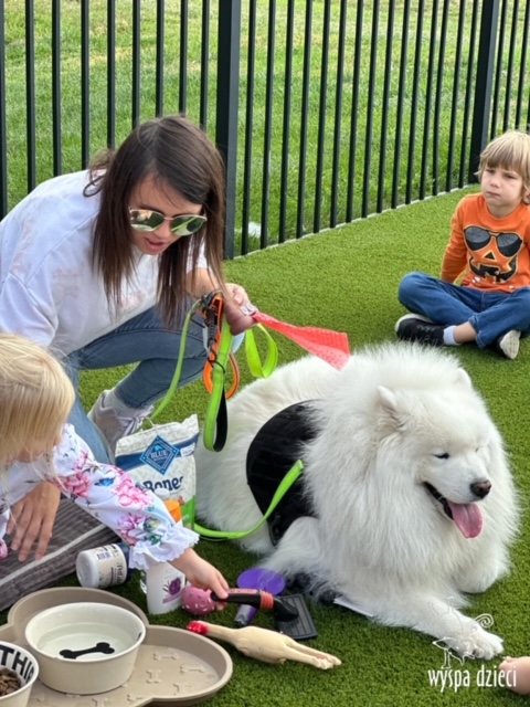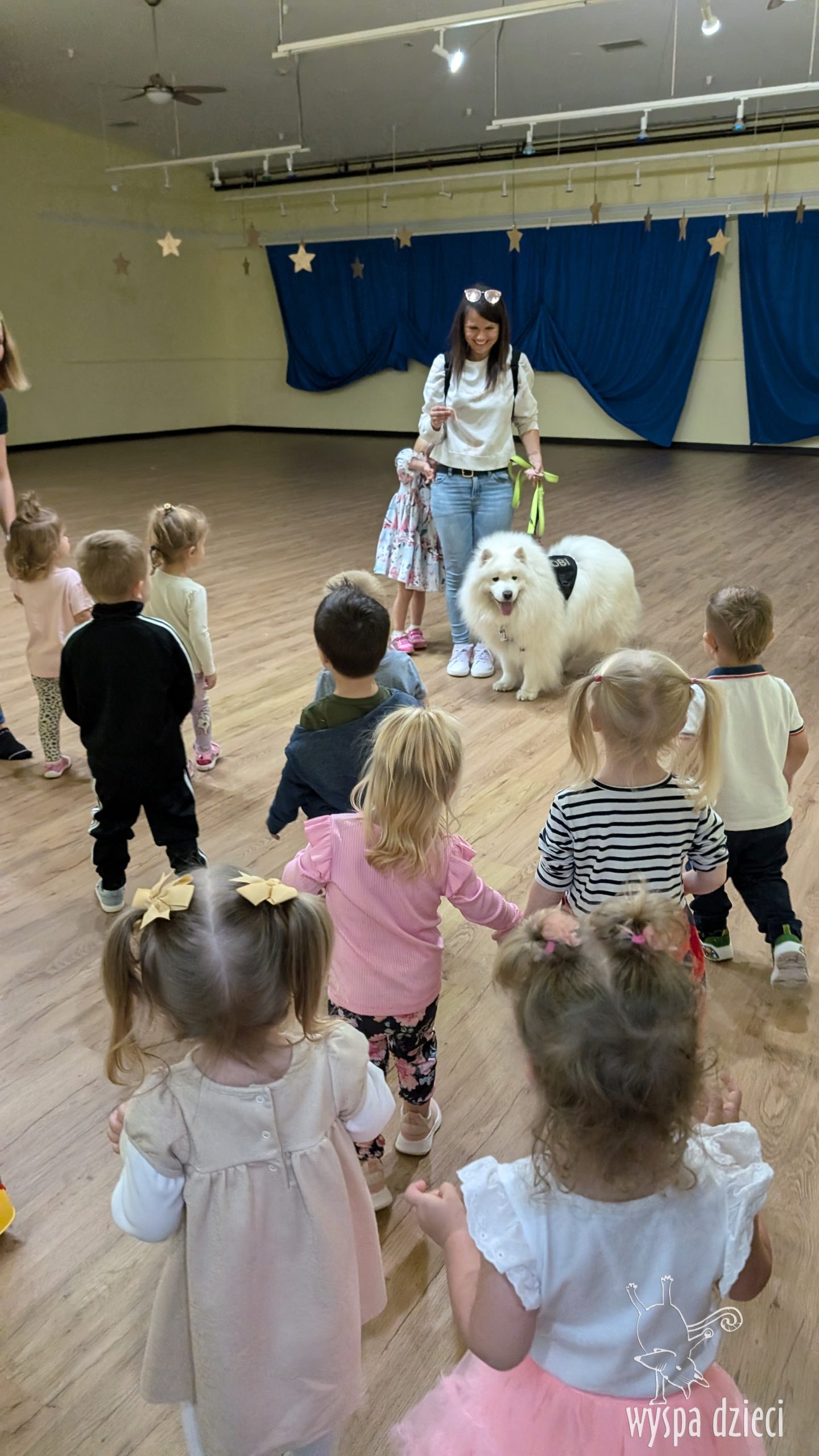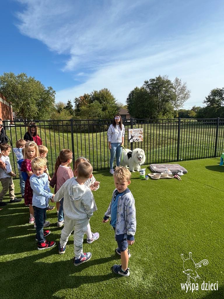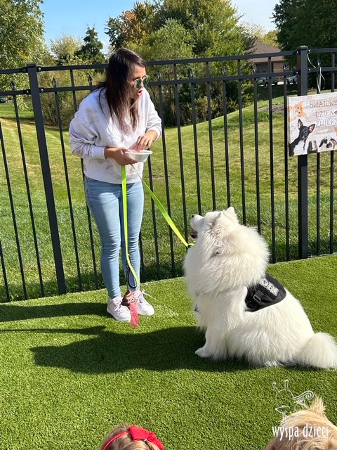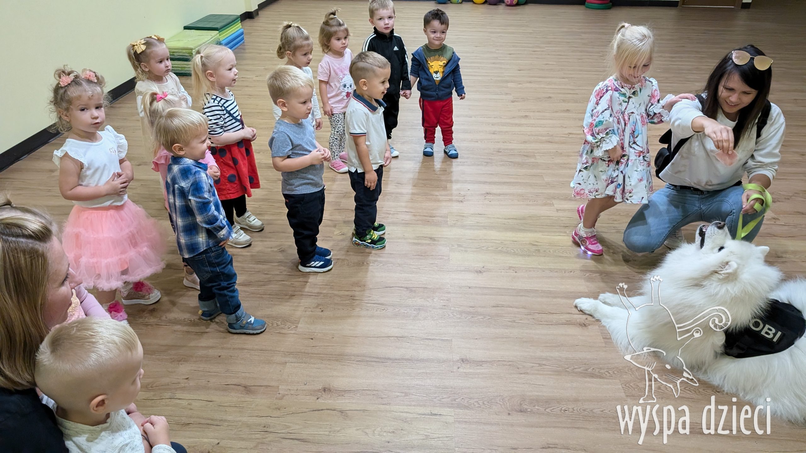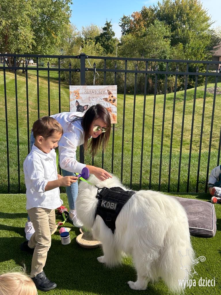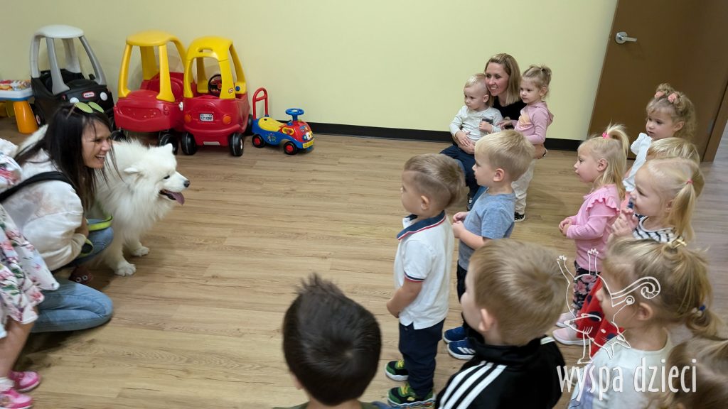 4 października na całym świecie obchodzony jest Światowy Dzień Zwierząt. Obchody tego dnia mają na celu zmienić zachowanie ludzi do zwierząt i uświadamianie im, że zwierzę to istota żywa, a nie rzecz i ma swoje prawa. W naszym przedszkolu uświadamiamy to maluchom od najmłodszych lat. Z okazji tego wyjątkowego dnia przedszkolaków odwiedził piesek jednej z nauczycielek, a był to samoyed – Kobi. Dzieci dowiedziały się jak powinno opiekować się pieskiem, jak o niego dbać. Maluchy miały okazję zobaczyć jakie akcesoria potrzebne są gdy posiadamy pieska, a także poznały jego zwyczaje żywieniowe. Dzieci dowiedziały się, że posiadanie czworonoga to nie tylko przyjemność, ale też duża odpowiedzialność. Piesek Kobi pokazał też dla maluchów kilka sztuczek: siadaj, daj łapę, daj piątkę, daj głos. Dzieci miały okazję poczesać Kobiego, a także dać mu pyszne kostki.