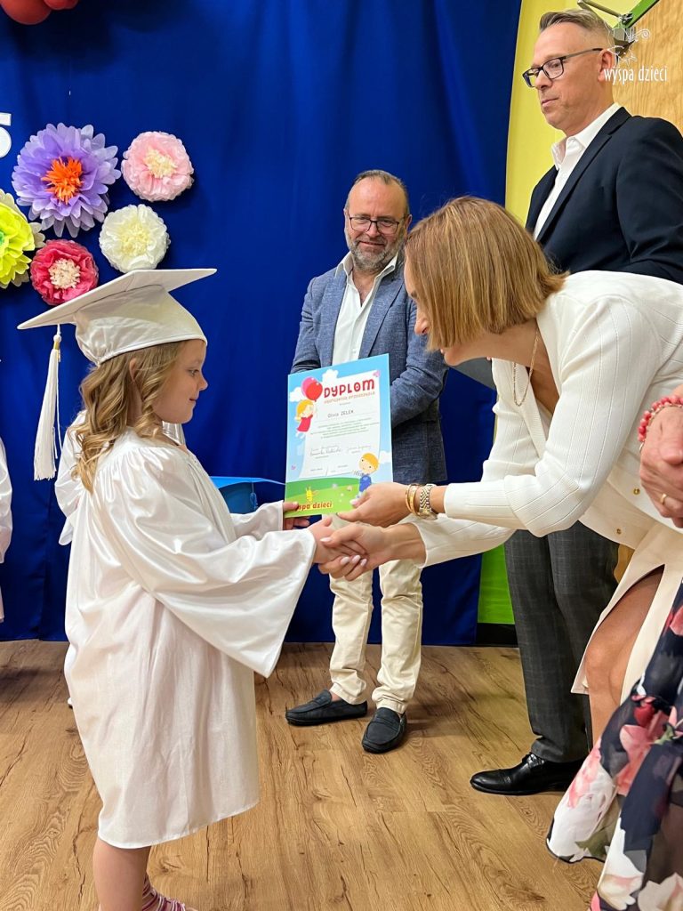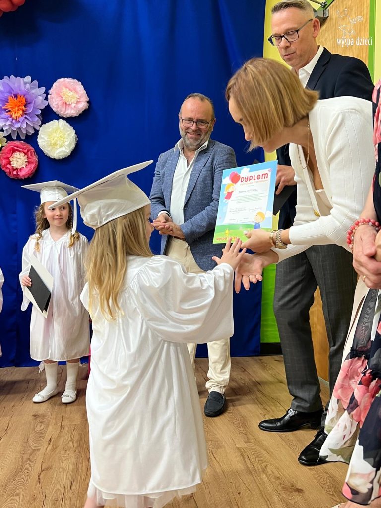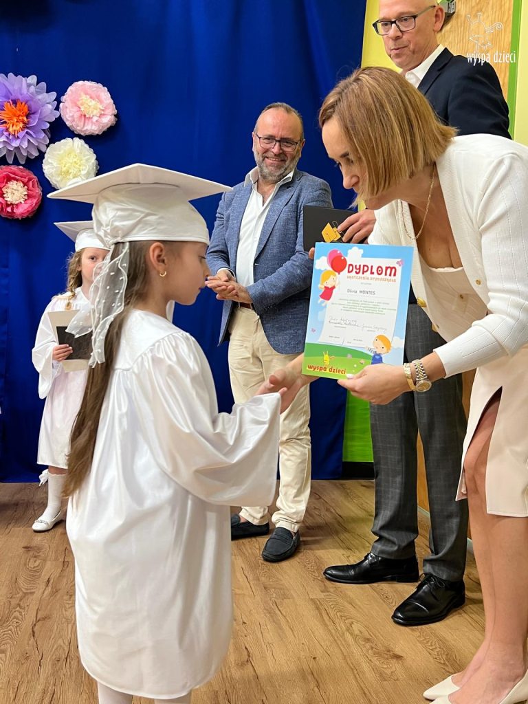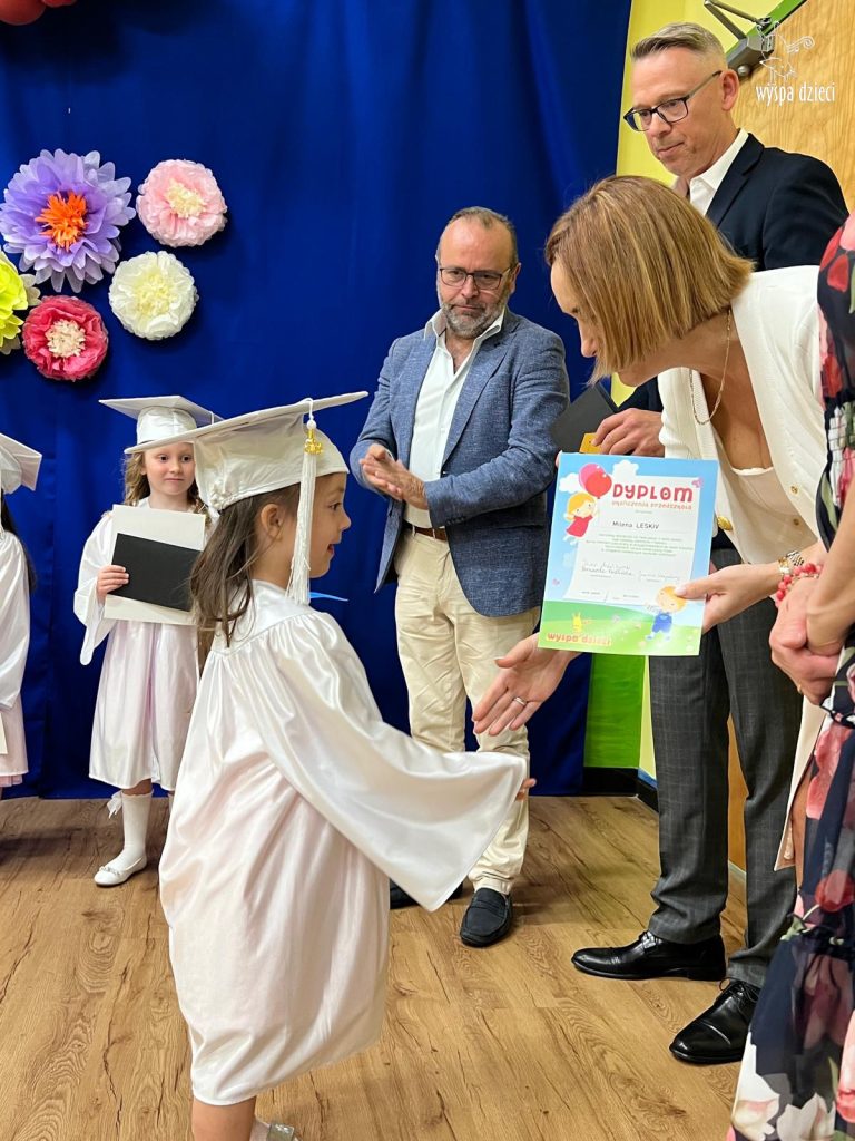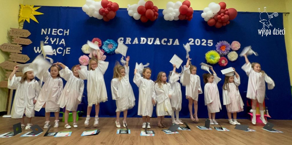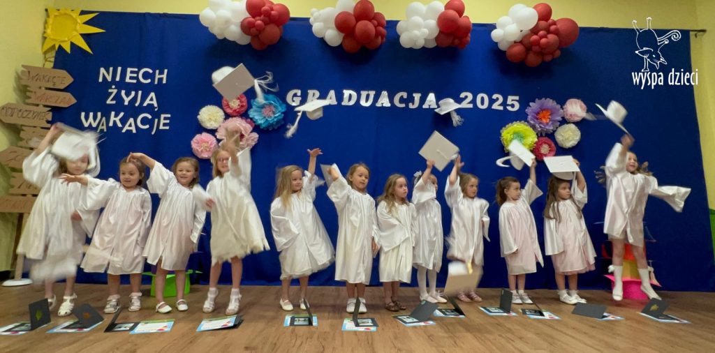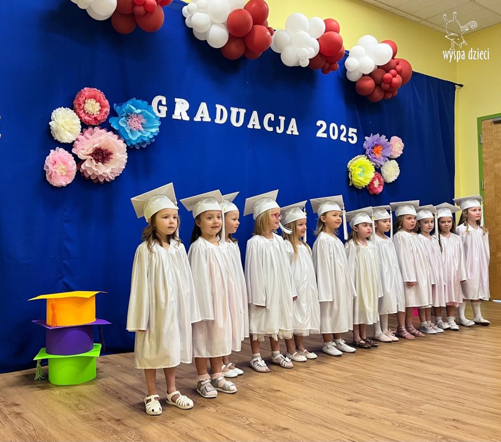 The children looked wonderful as they presented a special program created by Mr. Piotr and Ms. Beni for the occasion. After the performances, each Bystrzak received a diploma and a commemorative photo. After the entire ceremony, treats prepared by the parents awaited the children. Now, summer vacation awaits them, and from September, the next stage – Kindergarten class.
