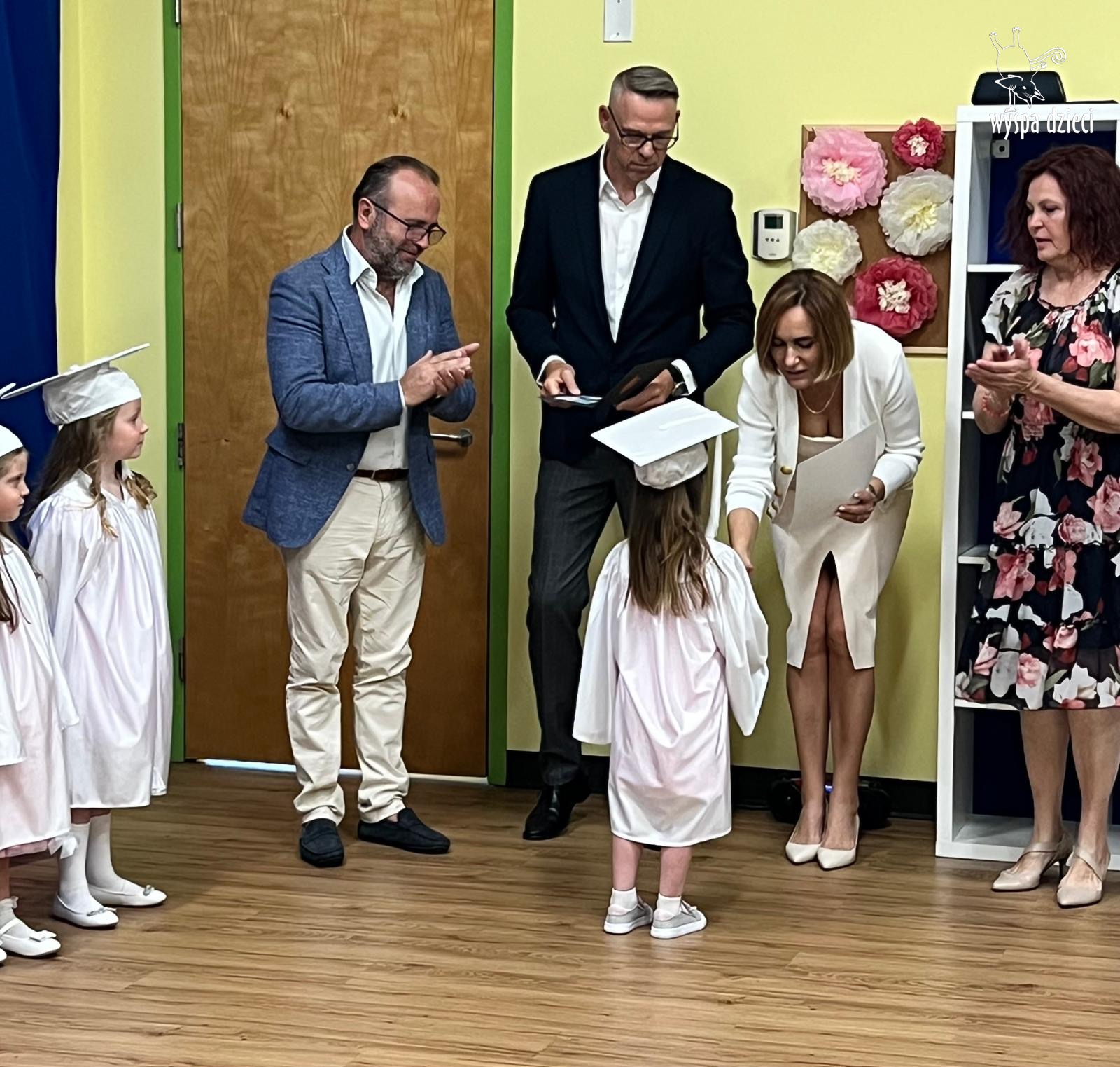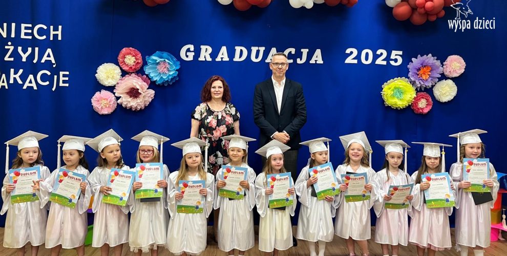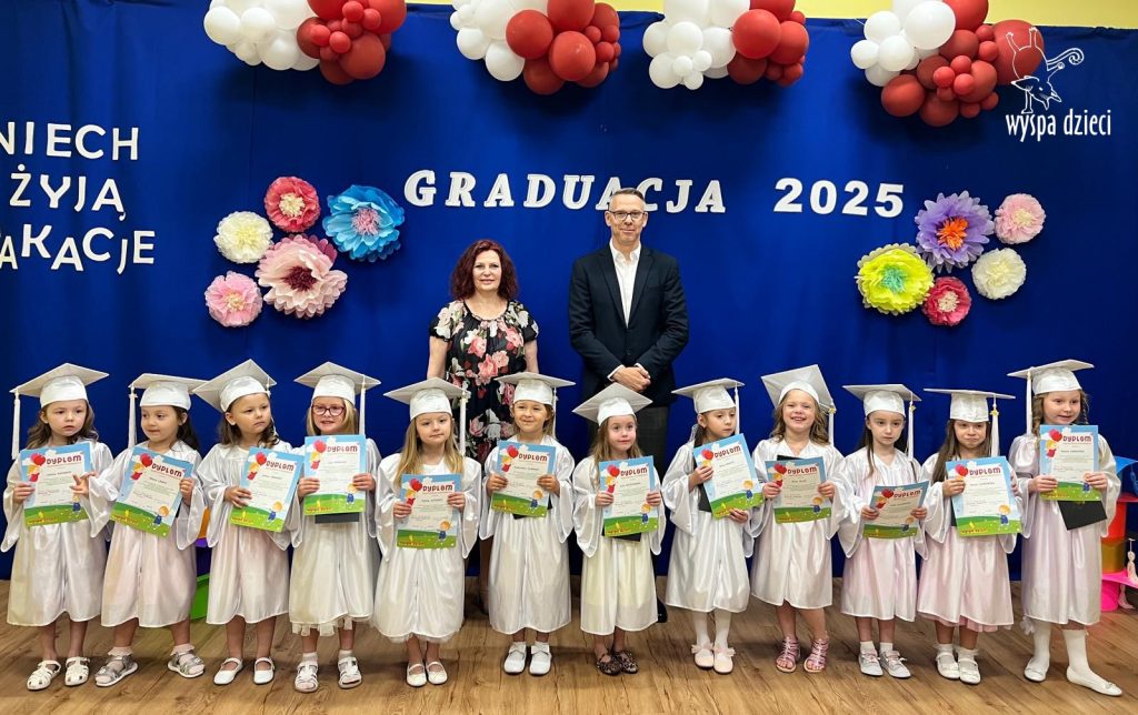 On June 12, 2025, at 10:00 AM, the graduation ceremony for the Polish-speaking Pre-K group BYSTRZAKI from Wyspa Dzieci in River Grove took place. The teachers for this group are Ms. Bernarda Redlinska and Mr. Piotr Aniołkowski.