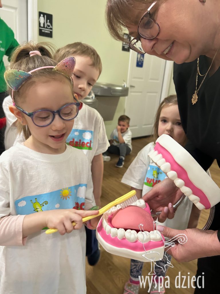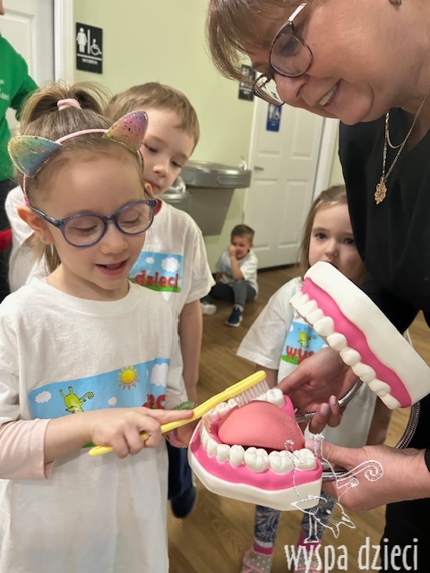 “To have healthy teeth, you just need to want them” – preschoolers in Algonquin learned how to care for their teeth so they are healthy and shiny like little stars. Our little ones were visited by a dentist from Hart Dental – Ms. Iwona Iwaszczyszyn and her assistant, who taught the children how to properly care for their teeth. Every child received a gift from Hart Dental – a dental care kit! We sincerely thank them for this very interesting and useful lesson for the children!