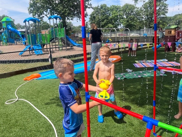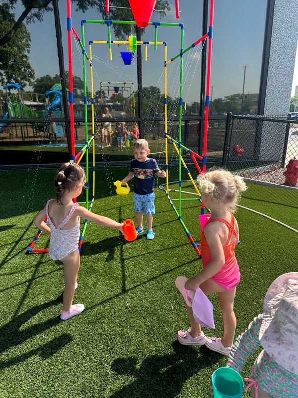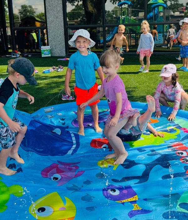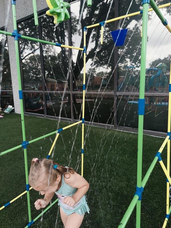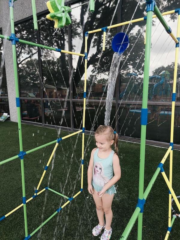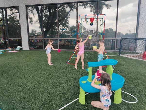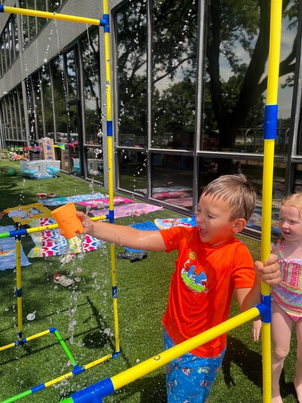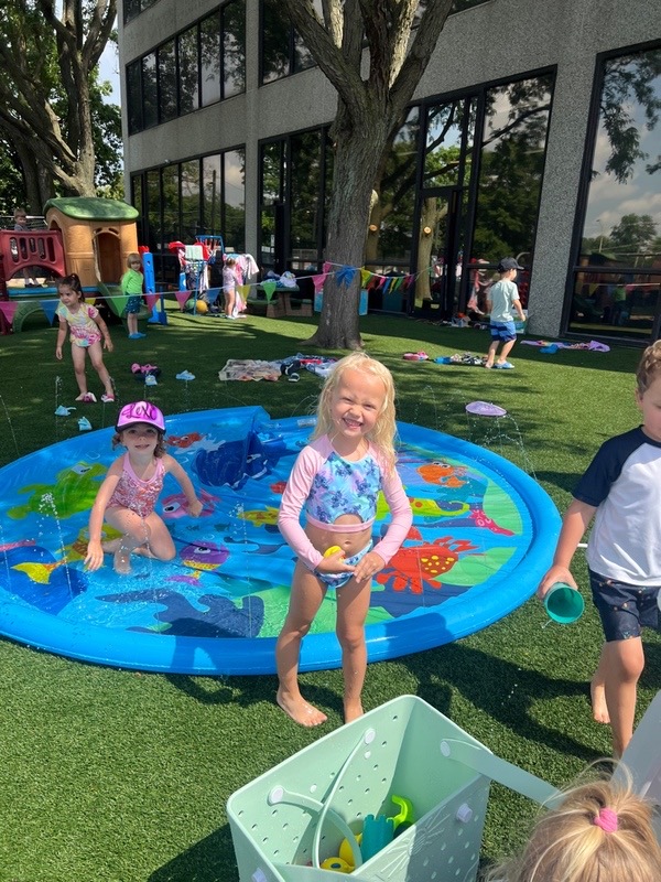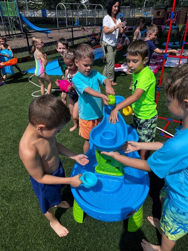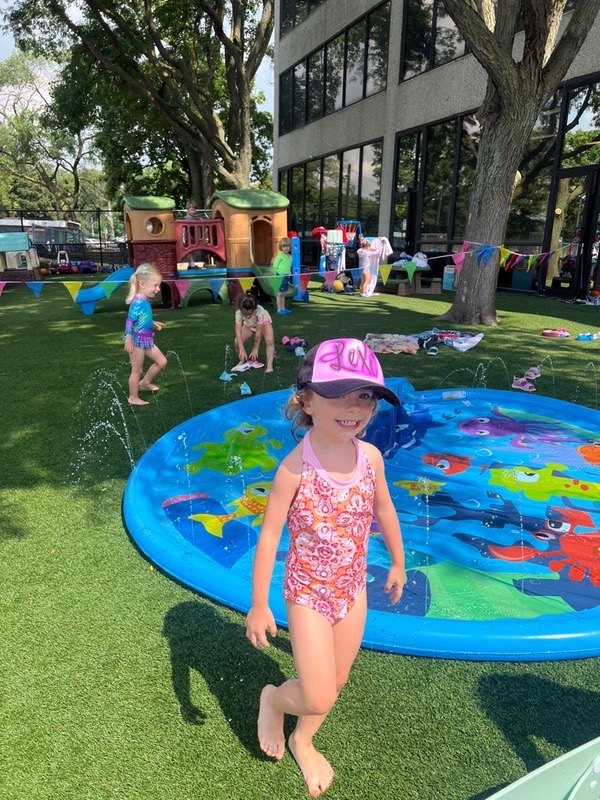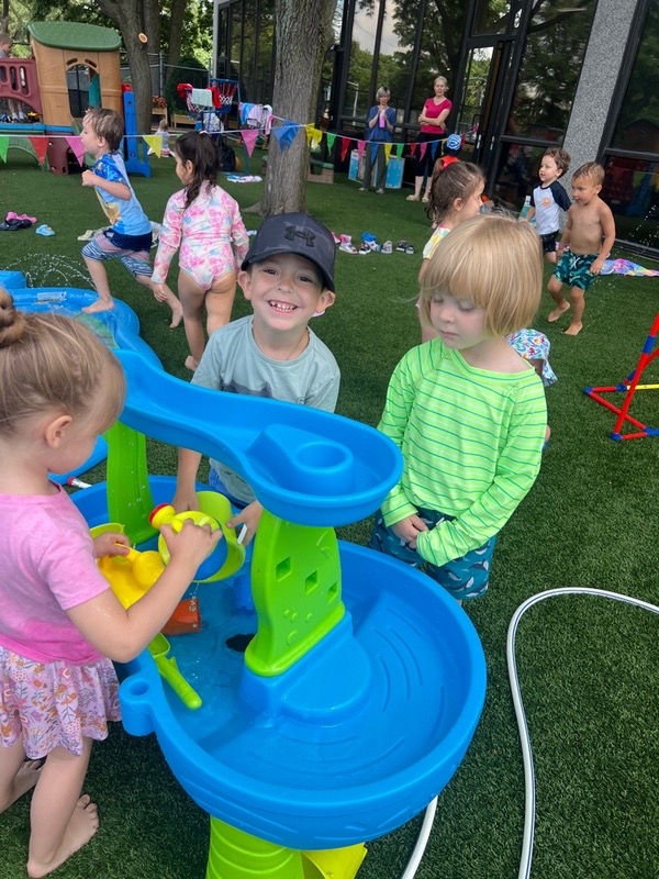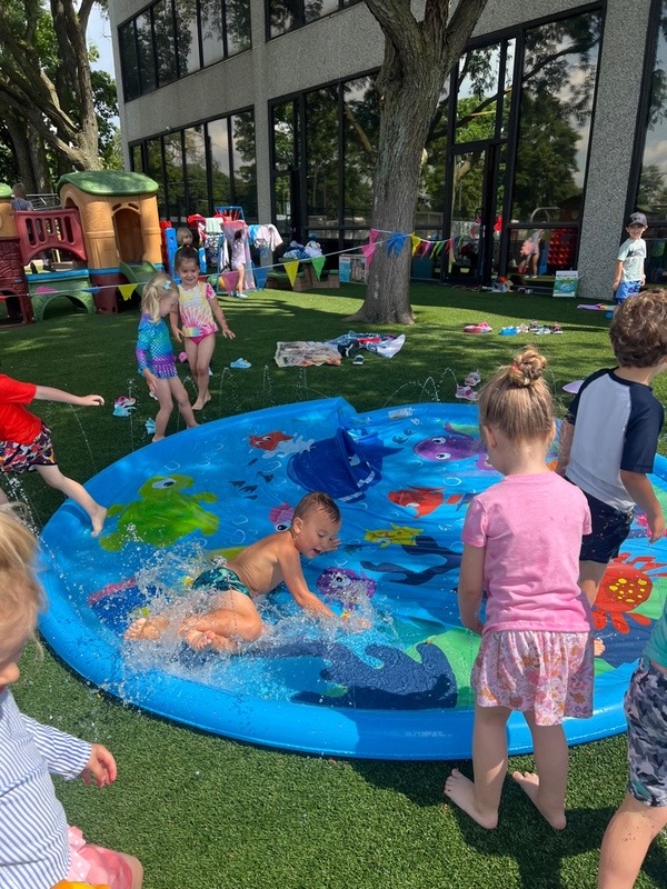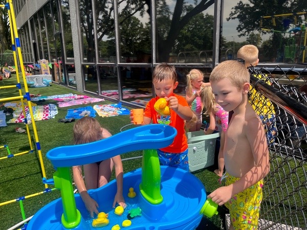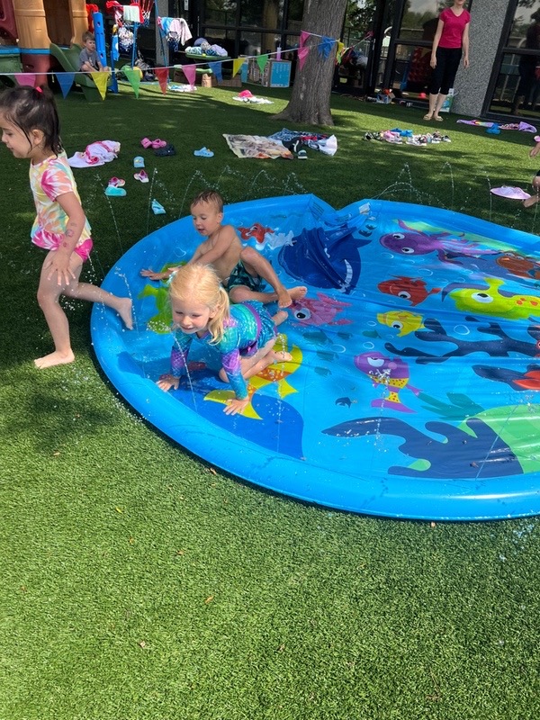 Like every year, water fun is one of the summer attractions at River Grove Children’s Island. Twice a week, each group gets to enjoy the ‘splash’ feature set up on our playground. Meanwhile, the oldest summer group – the Explorers – goes to Hawatha Park on Tuesdays and Thursdays. There’s no need to persuade anyone to join the fun – children run around the colorful sprinkler, splash in the water, and jump through streams of water. The cool water brings a lot of joy to the children, and as you can see in our photos, it doesn’t necessarily have to be a swimming pool 😊