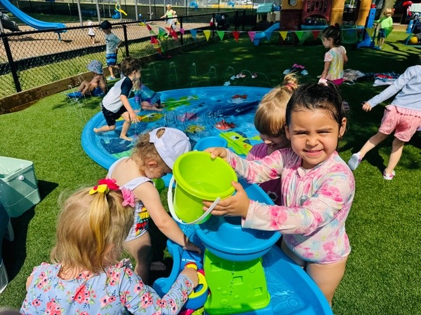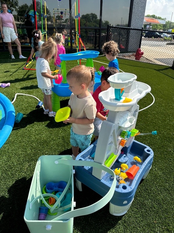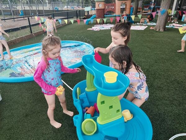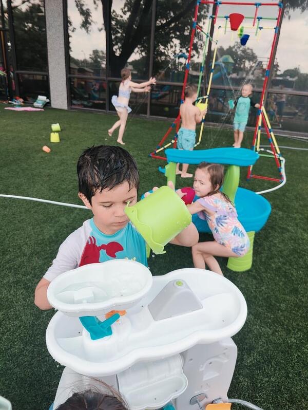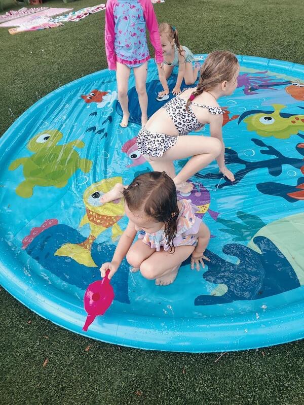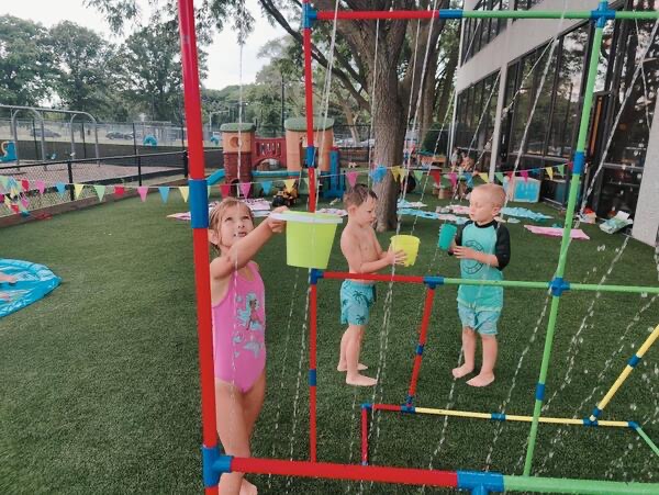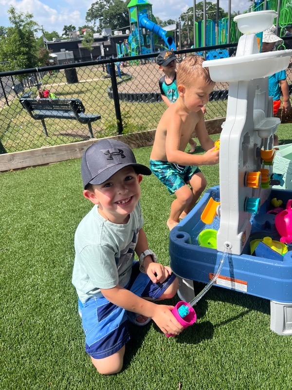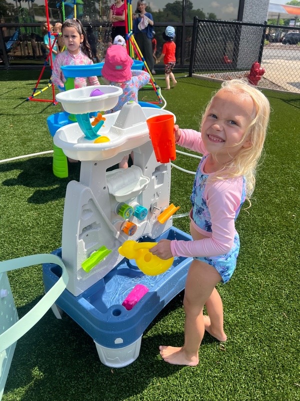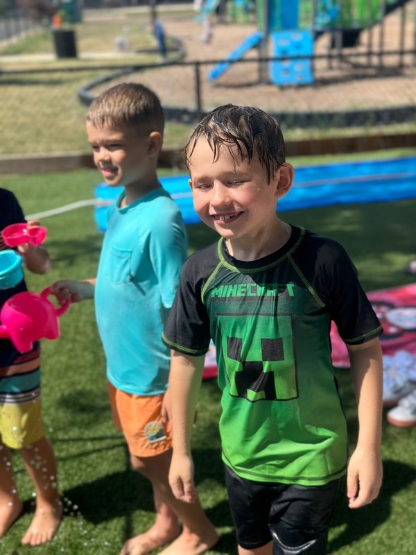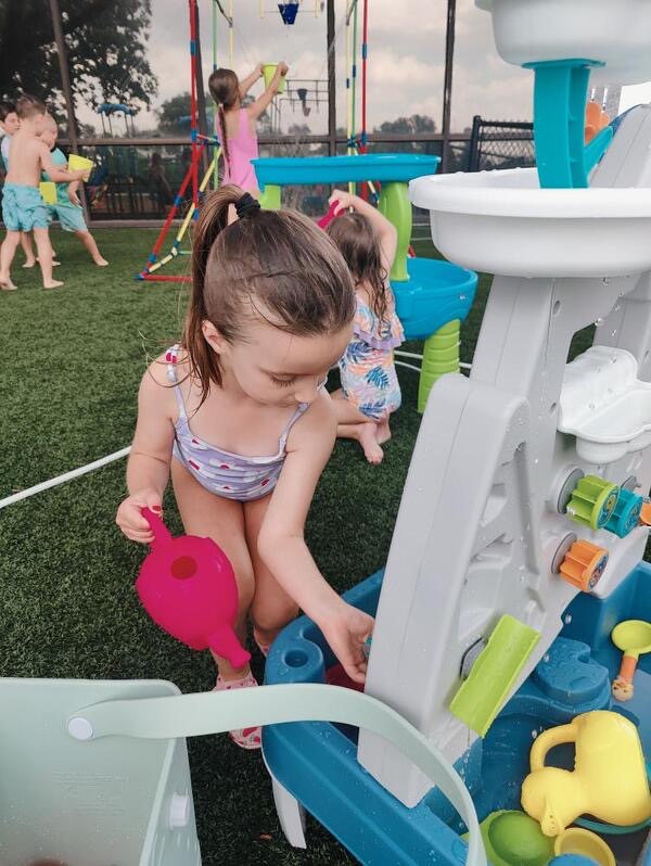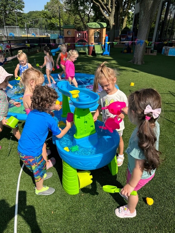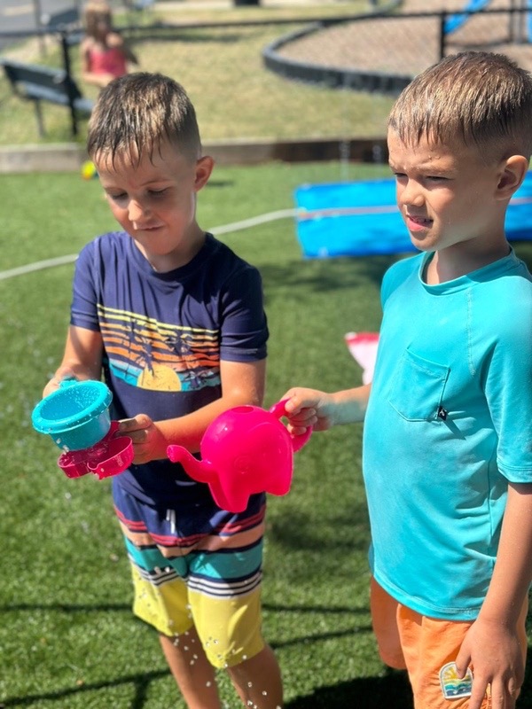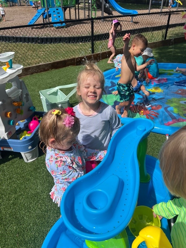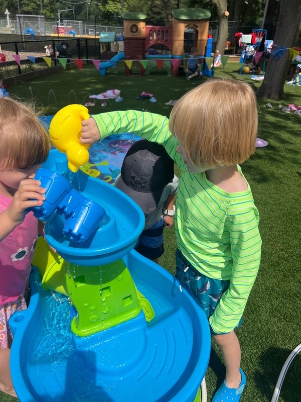 Like every year, water fun is one of the summer attractions at River Grove Children’s Island. Twice a week, each group gets to enjoy the ‘splash’ feature set up on our playground. Meanwhile, the oldest summer group – the Explorers – goes to Hawatha Park on Tuesdays and Thursdays. There’s no need to persuade anyone to join the fun – children run around the colorful sprinkler, splash in the water, and jump through streams of water. The cool water brings a lot of joy to the children, and as you can see in our photos, it doesn’t necessarily have to be a swimming pool 😊