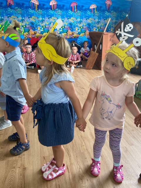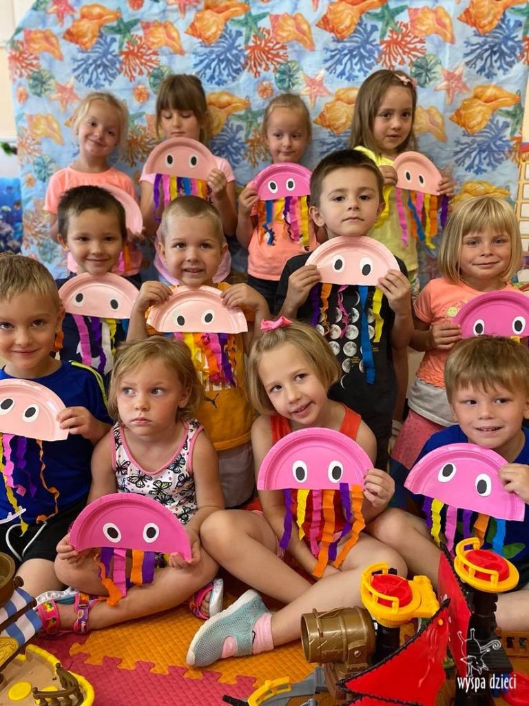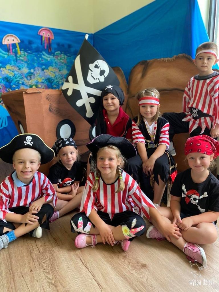 Wakacyjny czas to czas pełen przygód. Nasze przedszkolaki korzystają każdego dnia z przepięknych wakacyjnych dni. Maluchy miały już okazje odwiedzić wspaniałą egzotyczną wyspę- Hawaje, teraz przenieśli się w głąb oceanu. Kraby, ośmiornice, rekiny, meduzy, kolorowe rybki- te i wiele innych zwierzątek mieli okazje zobaczyć w nurtach oceanu. Nasi milusińscy mieli nawet okazję nakarmić groźnego rekina!???? Atrakcji było co niemiara ! Maluchy szukały także skarbu z prawdziwymi piratami! „Hej, hej, heja ho jest nas tu piratów sto!” – podśpiewywali radośnie szukając zagubionego skarbu. To była niezwykła przygoda!