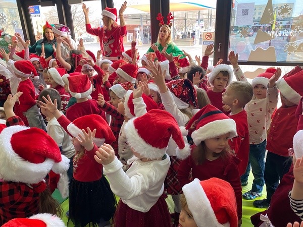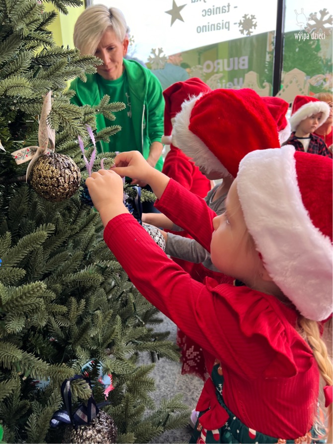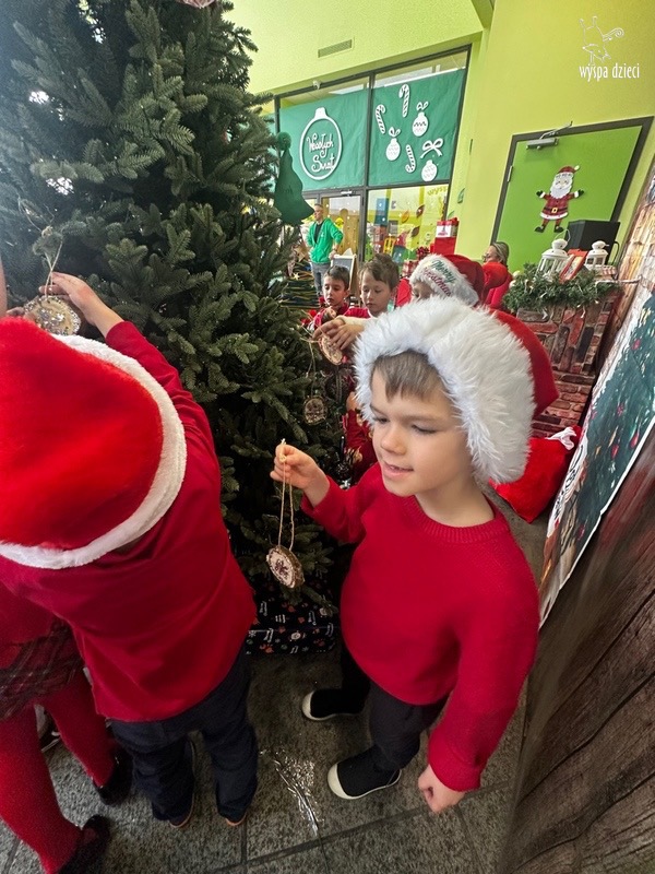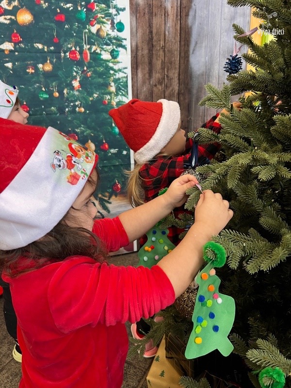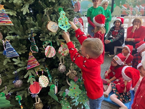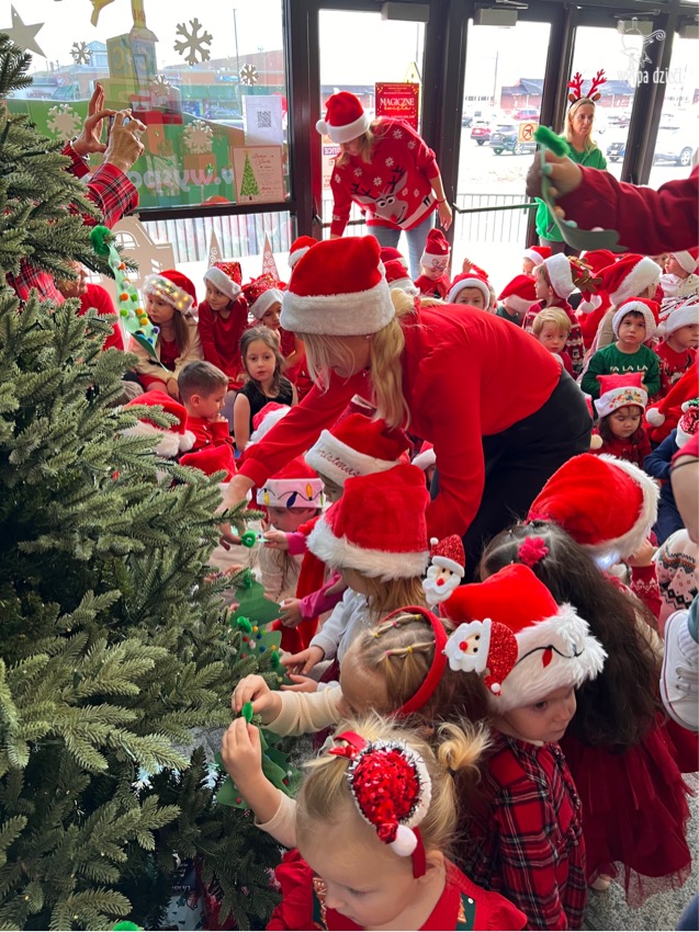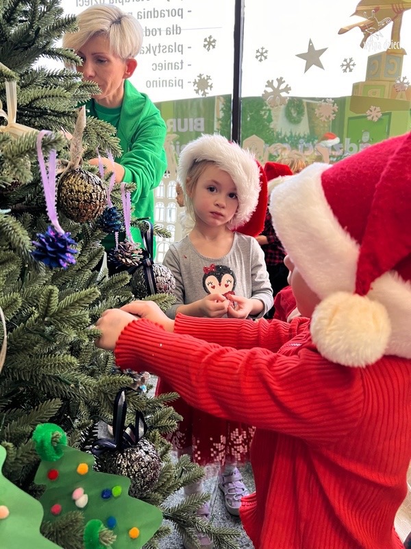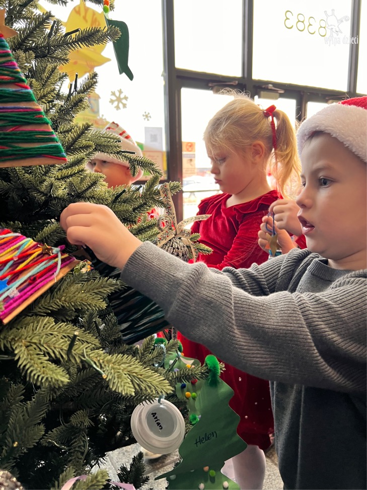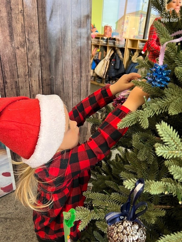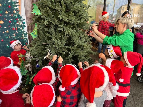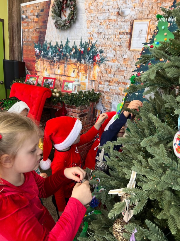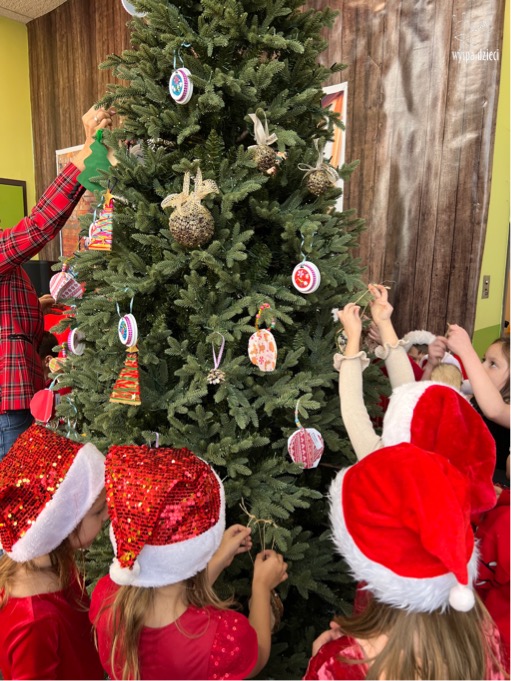 W piątek 6 grudnia zebraliśmy się wszyscy razem w głównym korytarzu przedszkola,gdzie rozbrzmiewały kolędy grane na pianinie przez Panią Joannę, a każda grupa, osobno podchodząc do naszej choinki wieszała ozdoby które dzieci przygotowywały w tym tygodniu. Nasza choinka z każdej sekundy wyglądała coraz piękniej. I nastąpił najważniejszy punkt kulminacyjny spotkania – zapalenie światełek na naszej choince. W tym roku światełka na naszej choince zapalił specjalny gość – nasz starszy kolega Maksymilian Brożek . Dzieci głośno odliczając czekały z niecierpliwością na ten moment … I oto zaświeciła się … Od tego momentu nasza choinka wygląda przepięknie … . Jest ona naprawdę wyjatkowa, bo wszystkie ozdoby są zrobione przez dzieci. Światełka zostaną zgaszone dopiero po okresie świątecznym … Przedszkolaki głośno podziękowały Maksiowi i podarowały mu laurkę. Wszyscy wspólnie zaśpiewaliśmy kolęde „Przybiezeli do Betlejem”