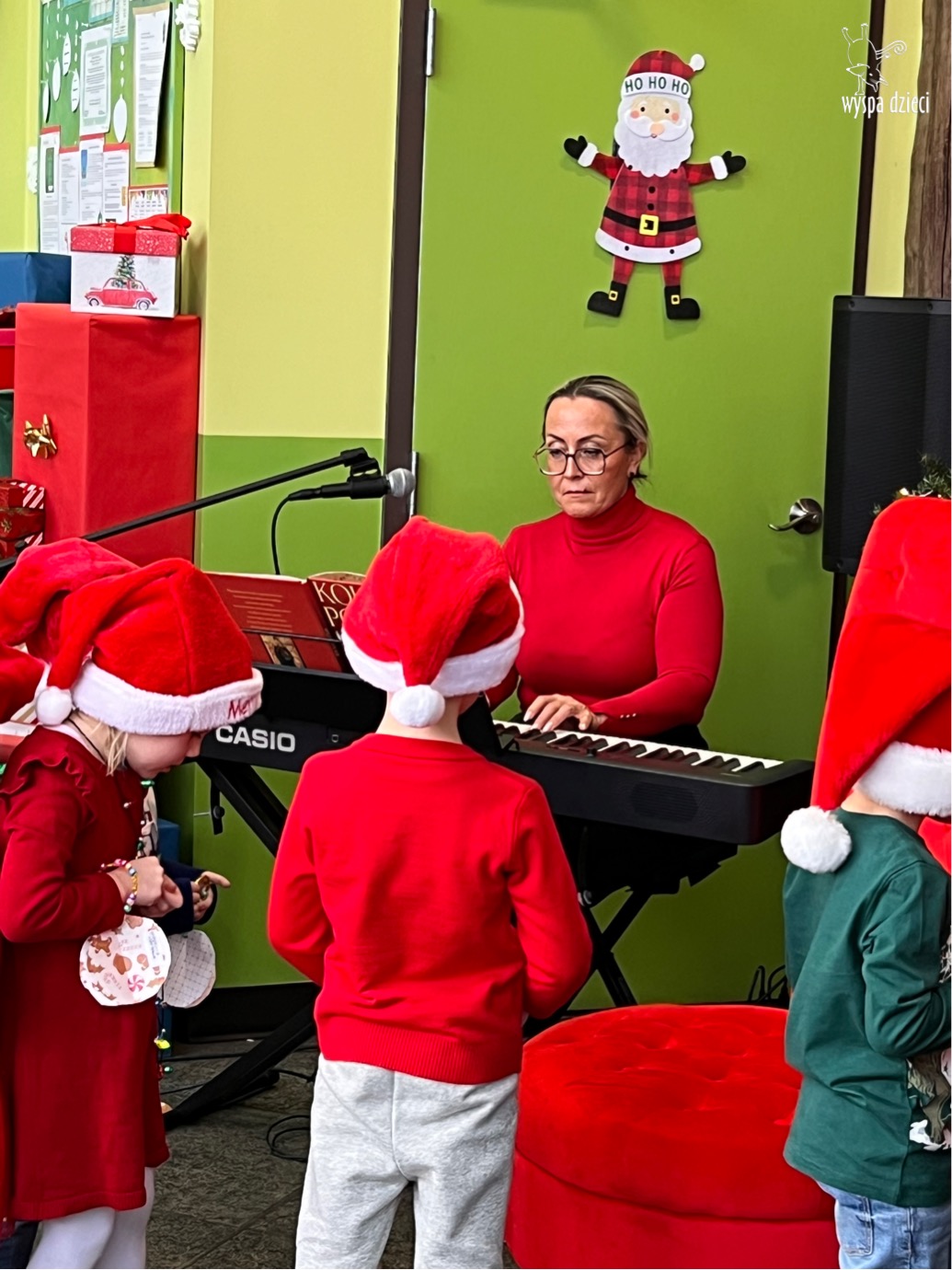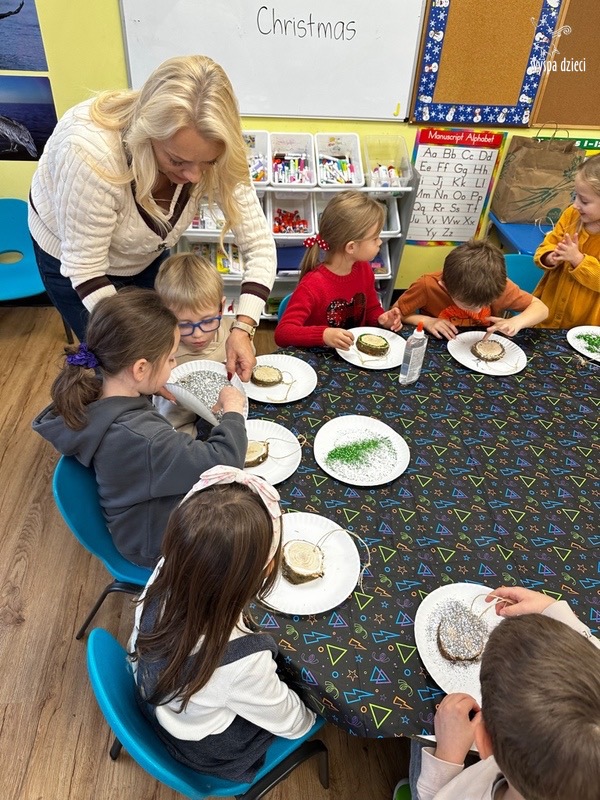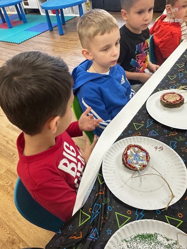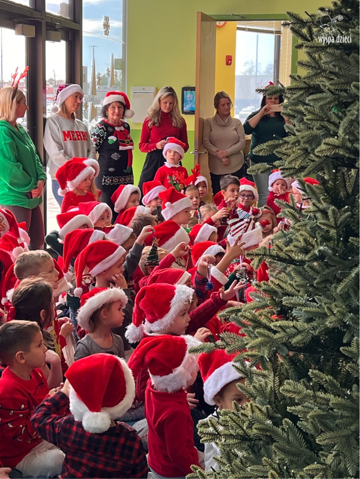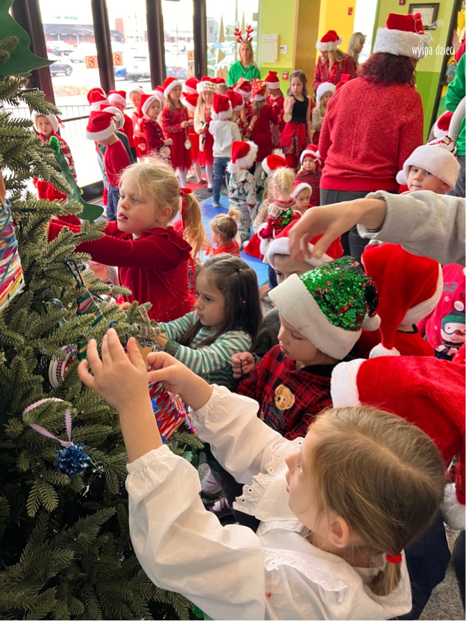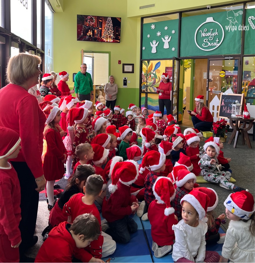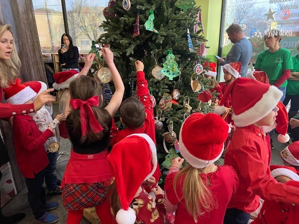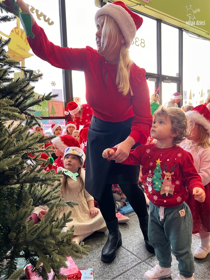 W piątek 6 grudnia zebraliśmy się wszyscy razem w głównym korytarzu przedszkola,gdzie rozbrzmiewały kolędy grane na pianinie przez Panią Joannę, a każda grupa, osobno podchodząc do naszej choinki wieszała ozdoby które dzieci przygotowywały w tym tygodniu. Nasza choinka z każdej sekundy wyglądała coraz piękniej. I nastąpił najważniejszy punkt kulminacyjny spotkania – zapalenie światełek na naszej choince. W tym roku światełka na naszej choince zapalił specjalny gość – nasz starszy kolega Maksymilian Brożek . Dzieci głośno odliczając czekały z niecierpliwością na ten moment … I oto zaświeciła się … Od tego momentu nasza choinka wygląda przepięknie … . Jest ona naprawdę wyjatkowa, bo wszystkie ozdoby są zrobione przez dzieci. Światełka zostaną zgaszone dopiero po okresie świątecznym … Przedszkolaki głośno podziękowały Maksiowi i podarowały mu laurkę. Wszyscy wspólnie zaśpiewaliśmy kolęde „Przybiezeli do Betlejem”